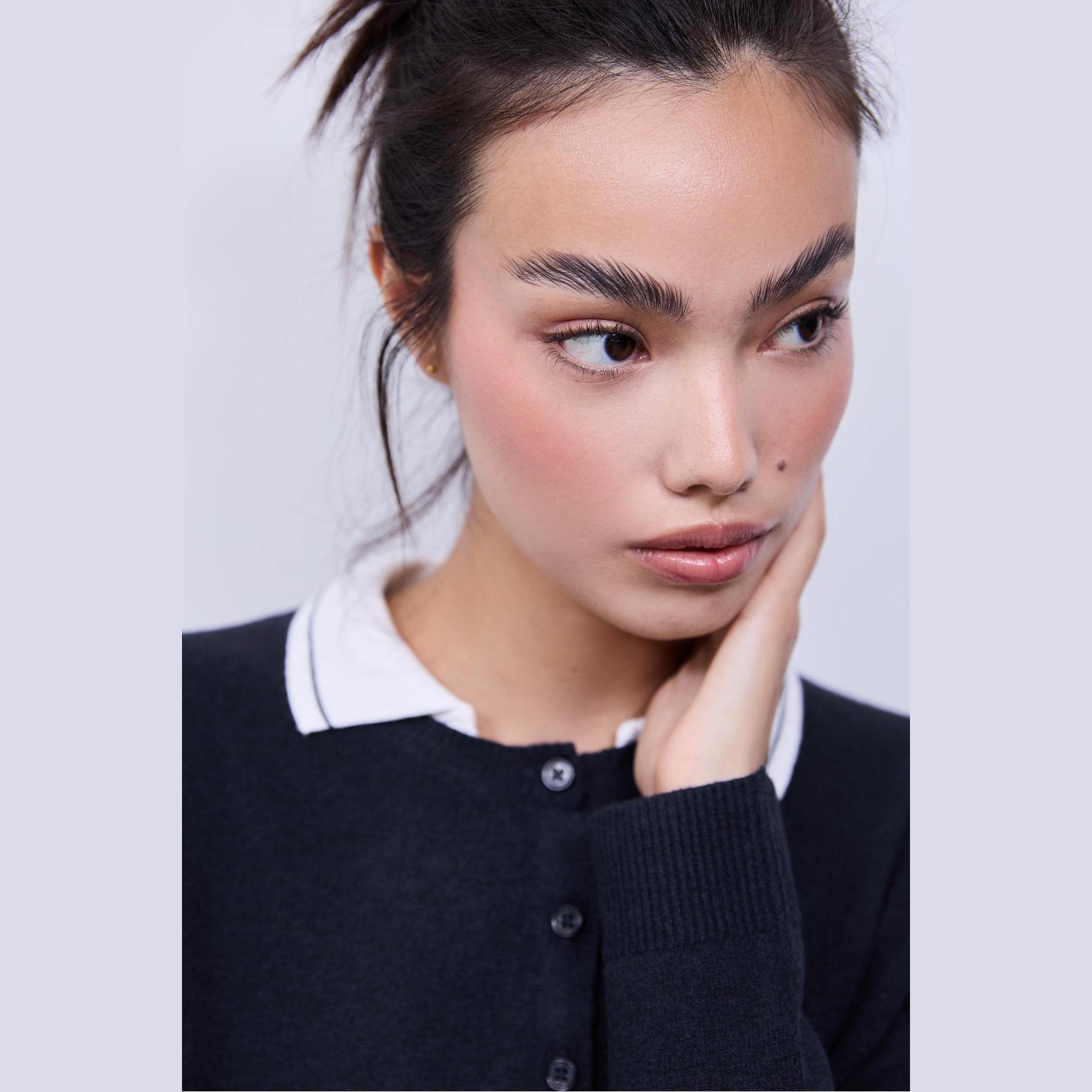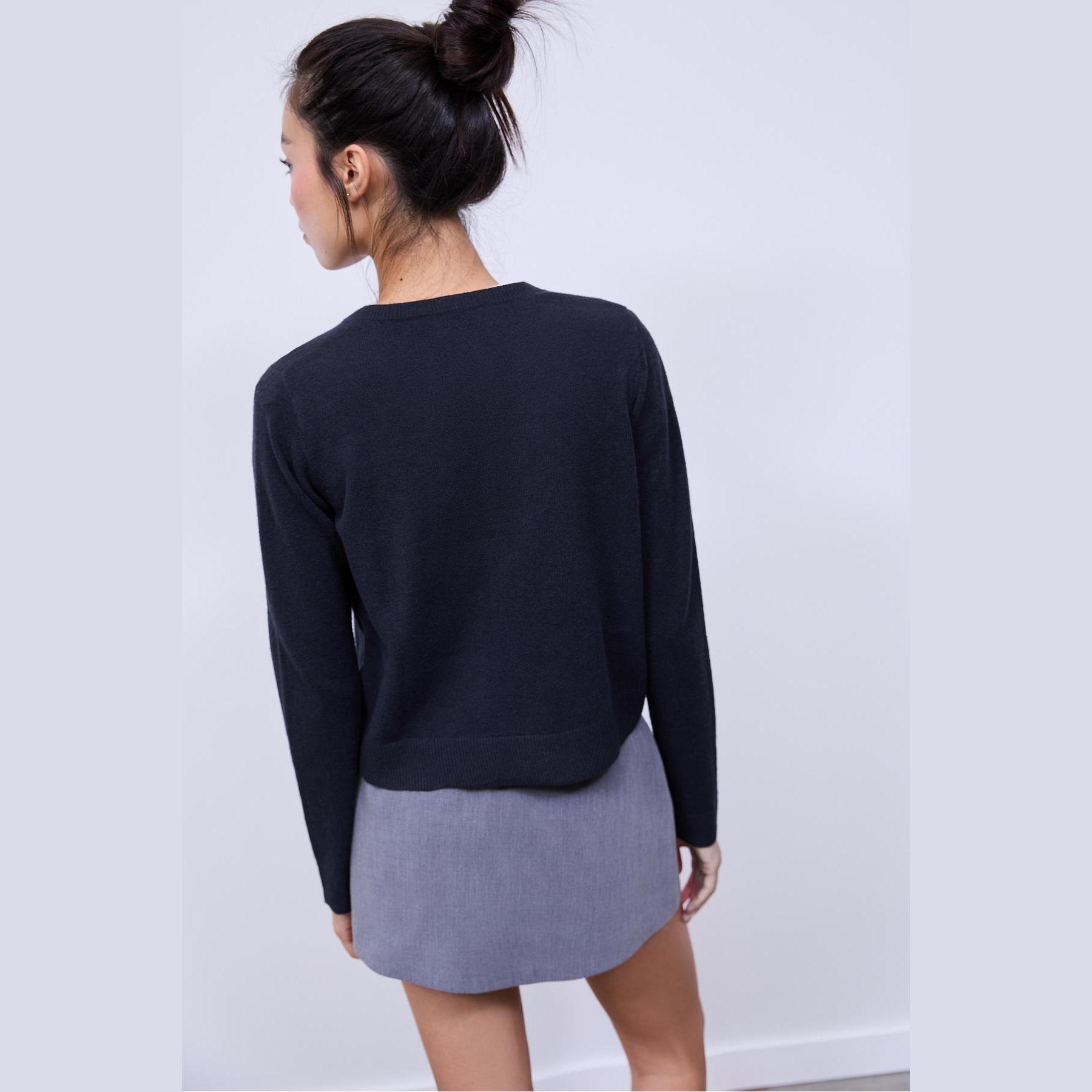 كارديغان تريكو ناعم بملمس يموش وأزرار – كحلي من Stradivarius