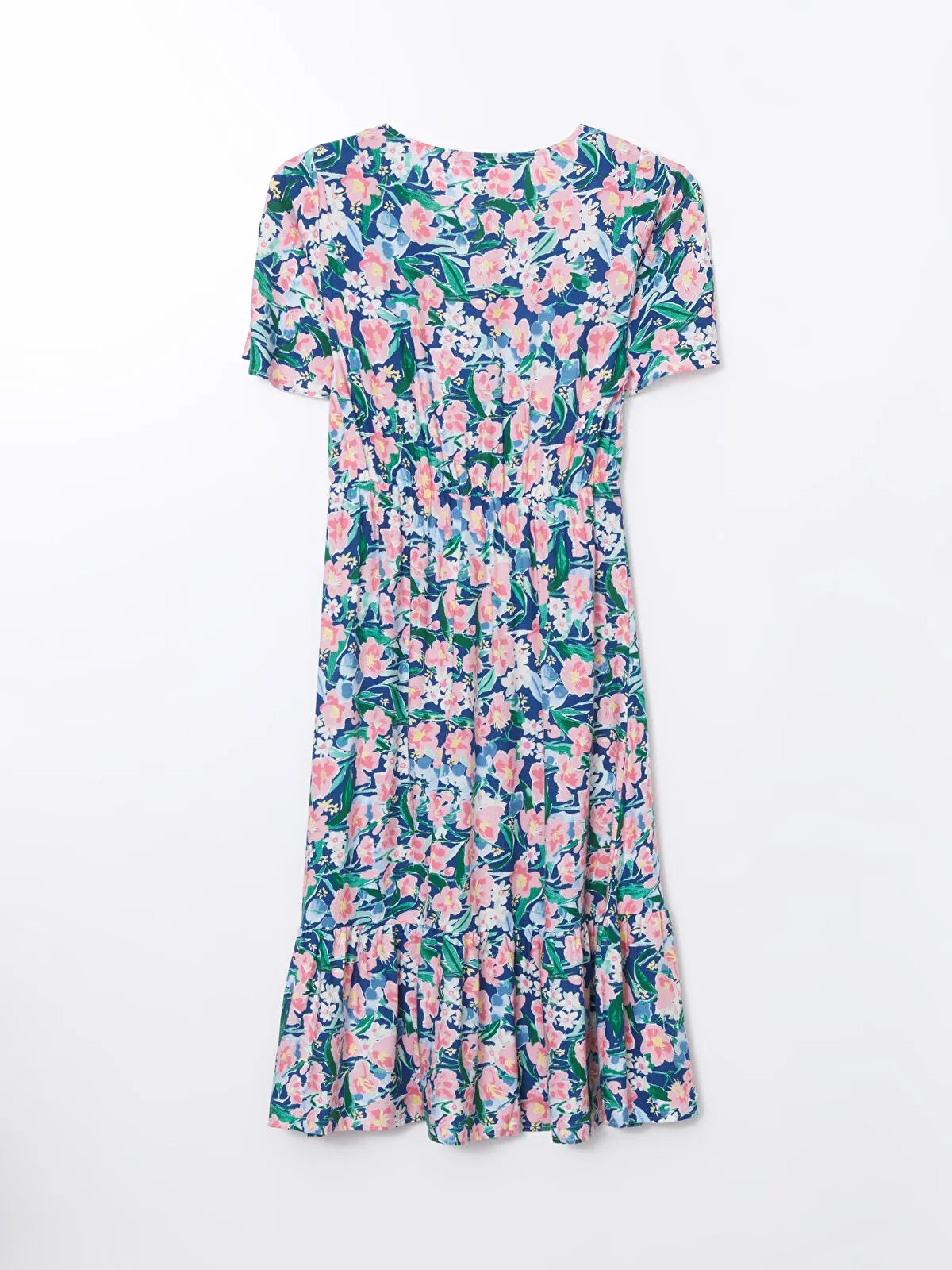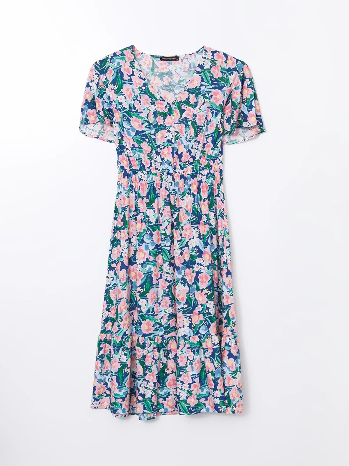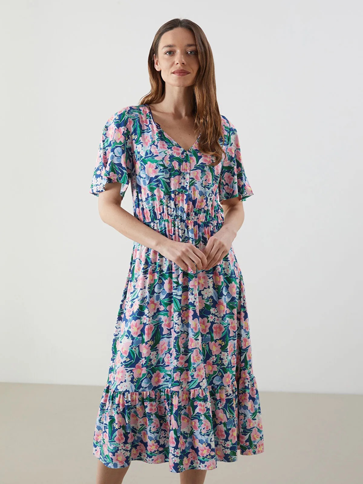 فستان زهري بطبعة زهرية مفعمة بالحيوية وتصميم بياقة V أنيق، يمنحك إطلالة نسائية راقية ومريحة تمامًا لأيام الصيف والمناسبات اليومية. القصة مريحة والتصميم عملي دون تكلف.