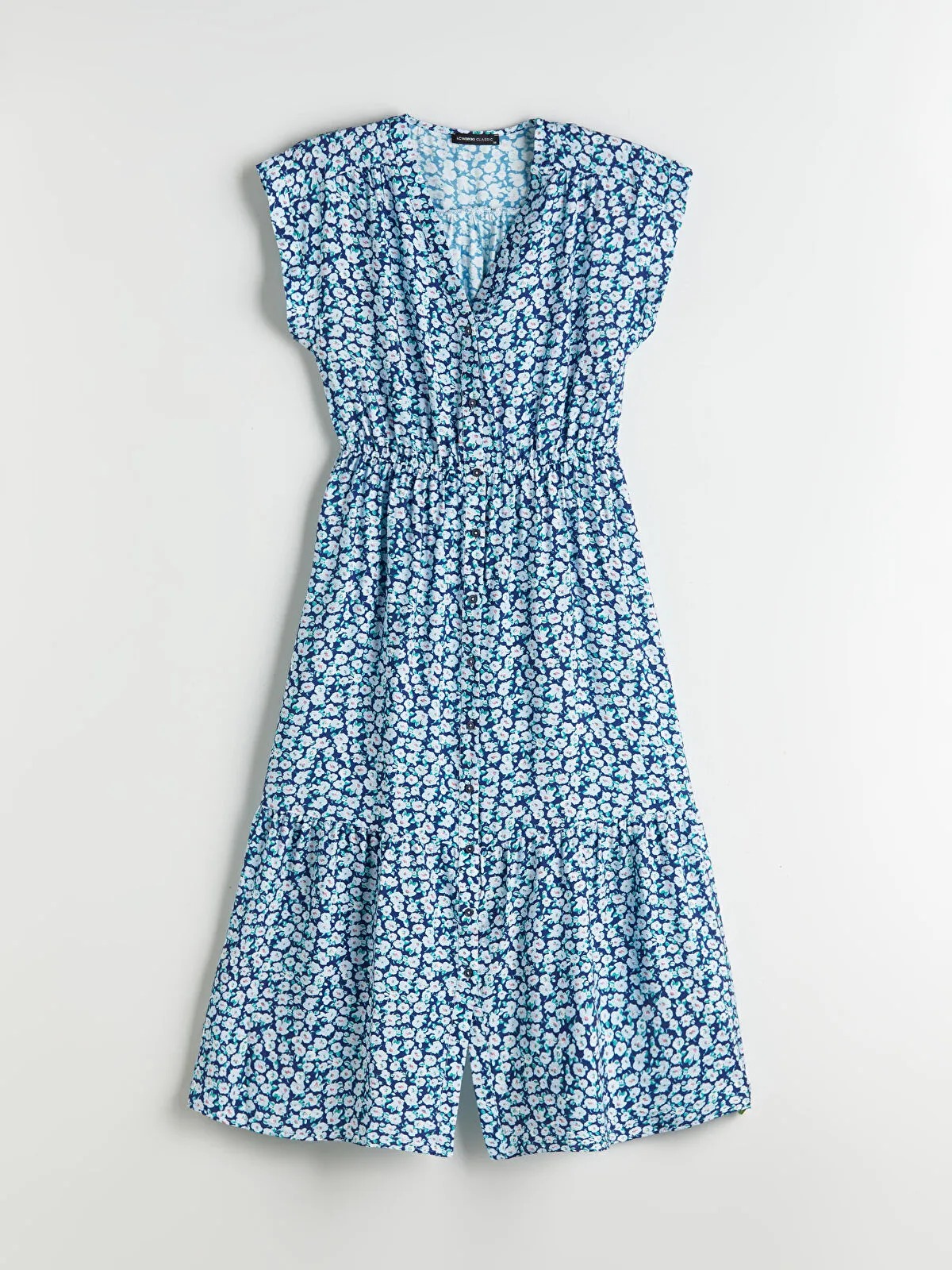 قصة عادية (Regular Fit) مع تحديد عند الخصر (Belden Oturtma)، تصميم أمامي مزود بزرّات وزهري ميدي طول ملائم ✓