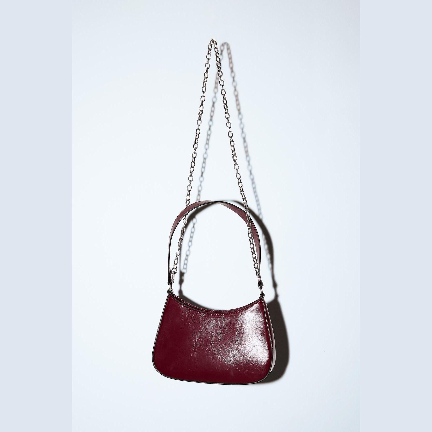 Bershka – شنطة ميني نصف دائرية بلون بوردو