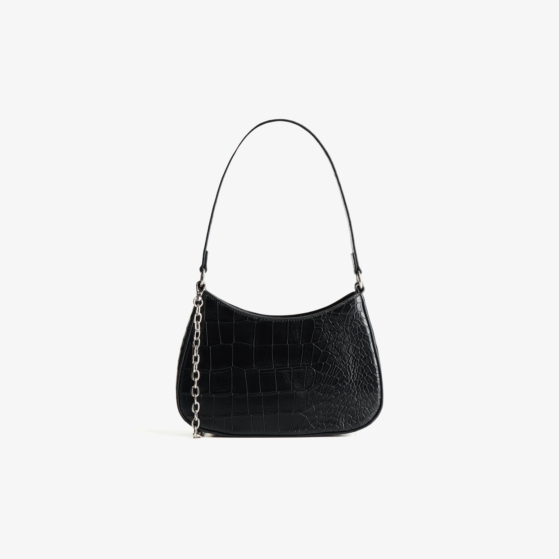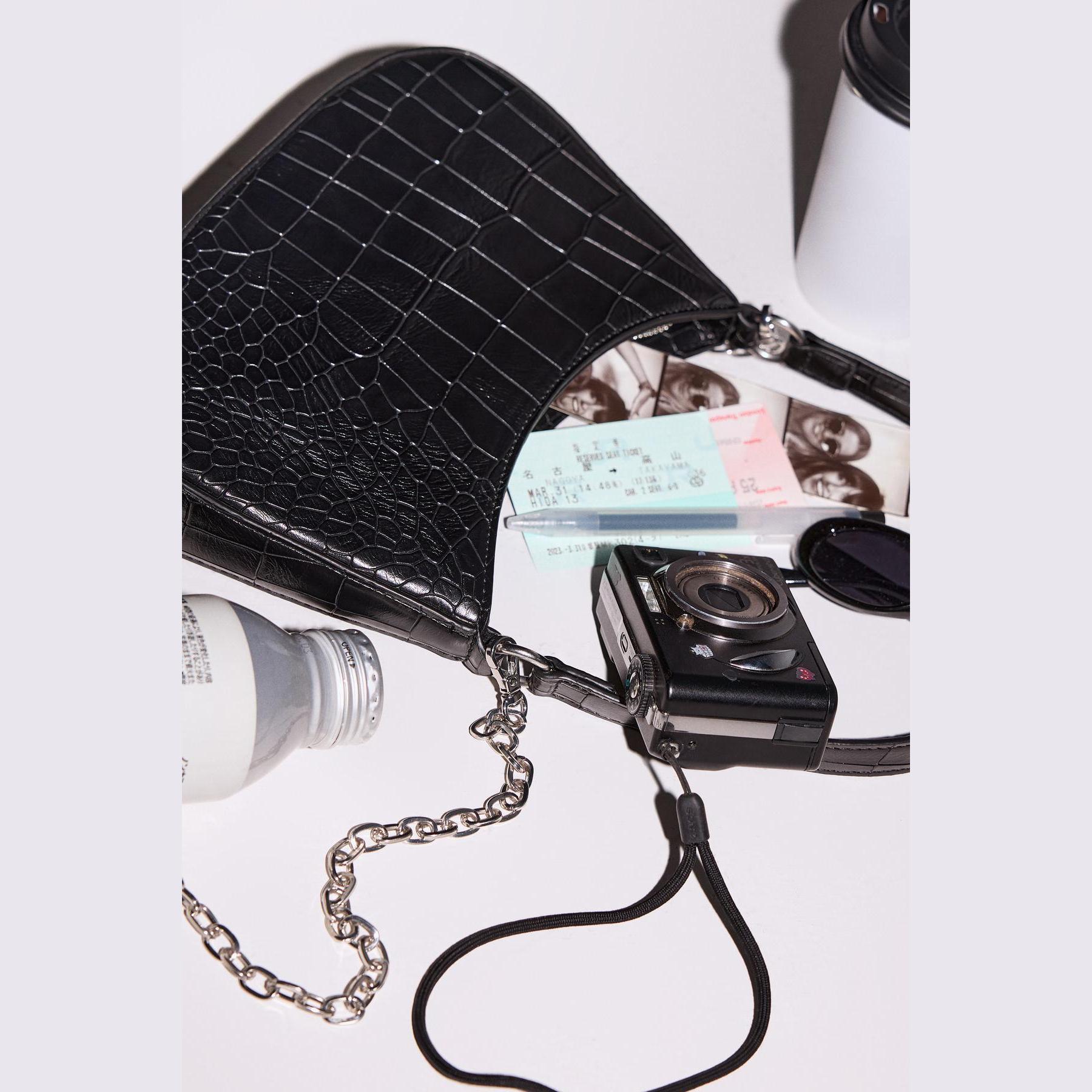 تميّزي بإطلالة أنيقة وعصرية مع هذه الشنطة الميني نصف الدائرية من Bershka. تصميمها المنحني يضفي لمسة ناعمة ومميزة، بينما يمنحك اللون الأسود حيادية مثالية تناسب جميع الإطلالات والمناسبات.