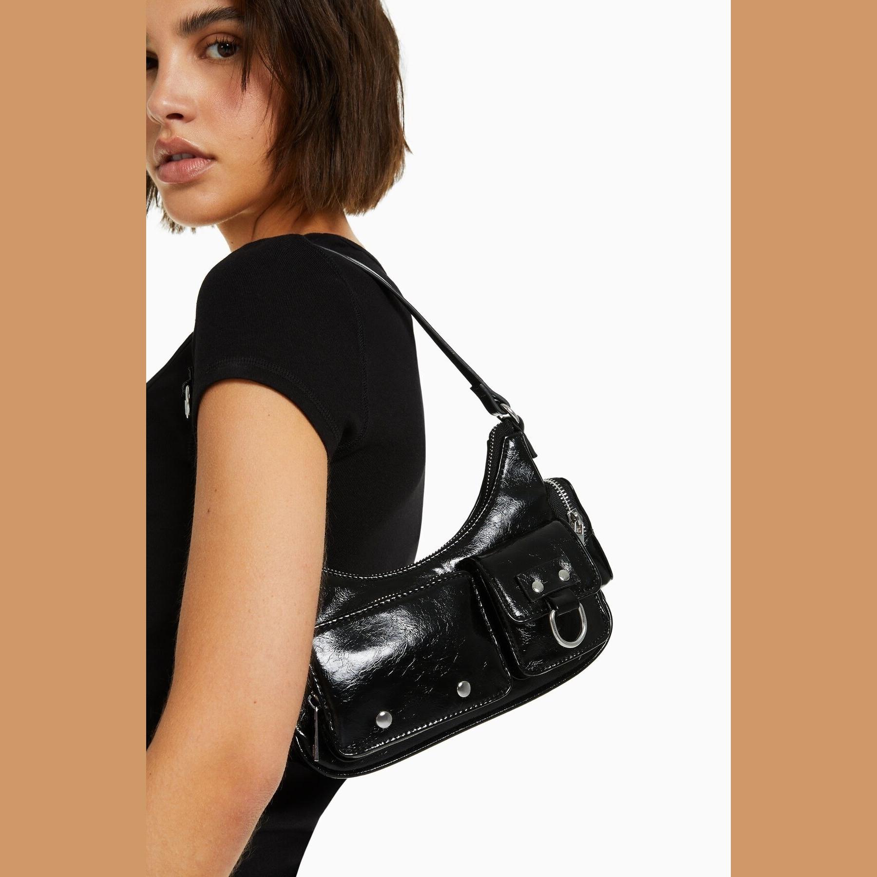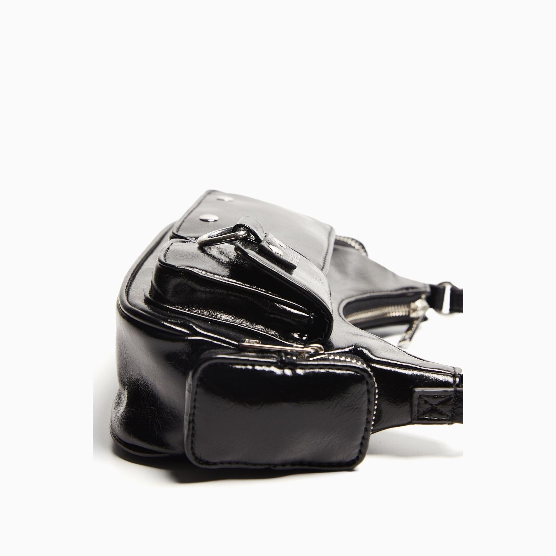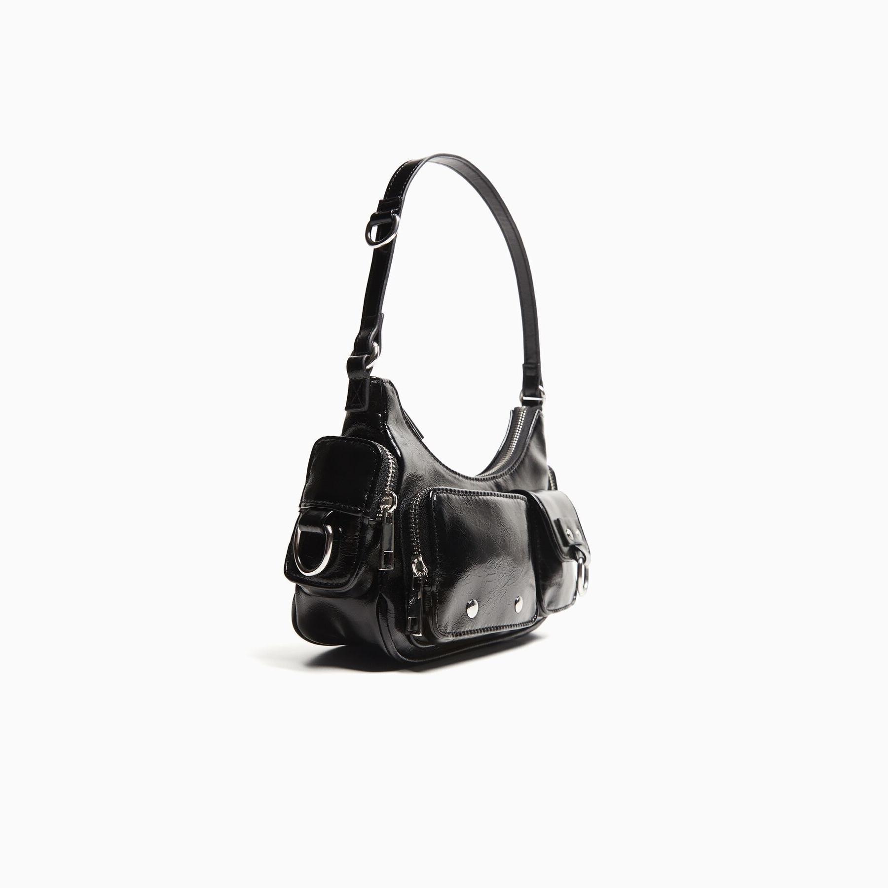 Bershka – شنطة كروس متعددة الجيوب بلون أسود