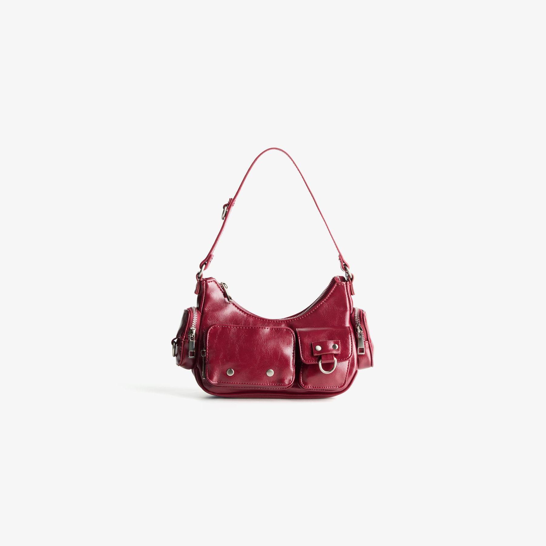 Bershka – شنطة كتف متعددة الجيوب بنقشة جلد التمساح بلون بوردو