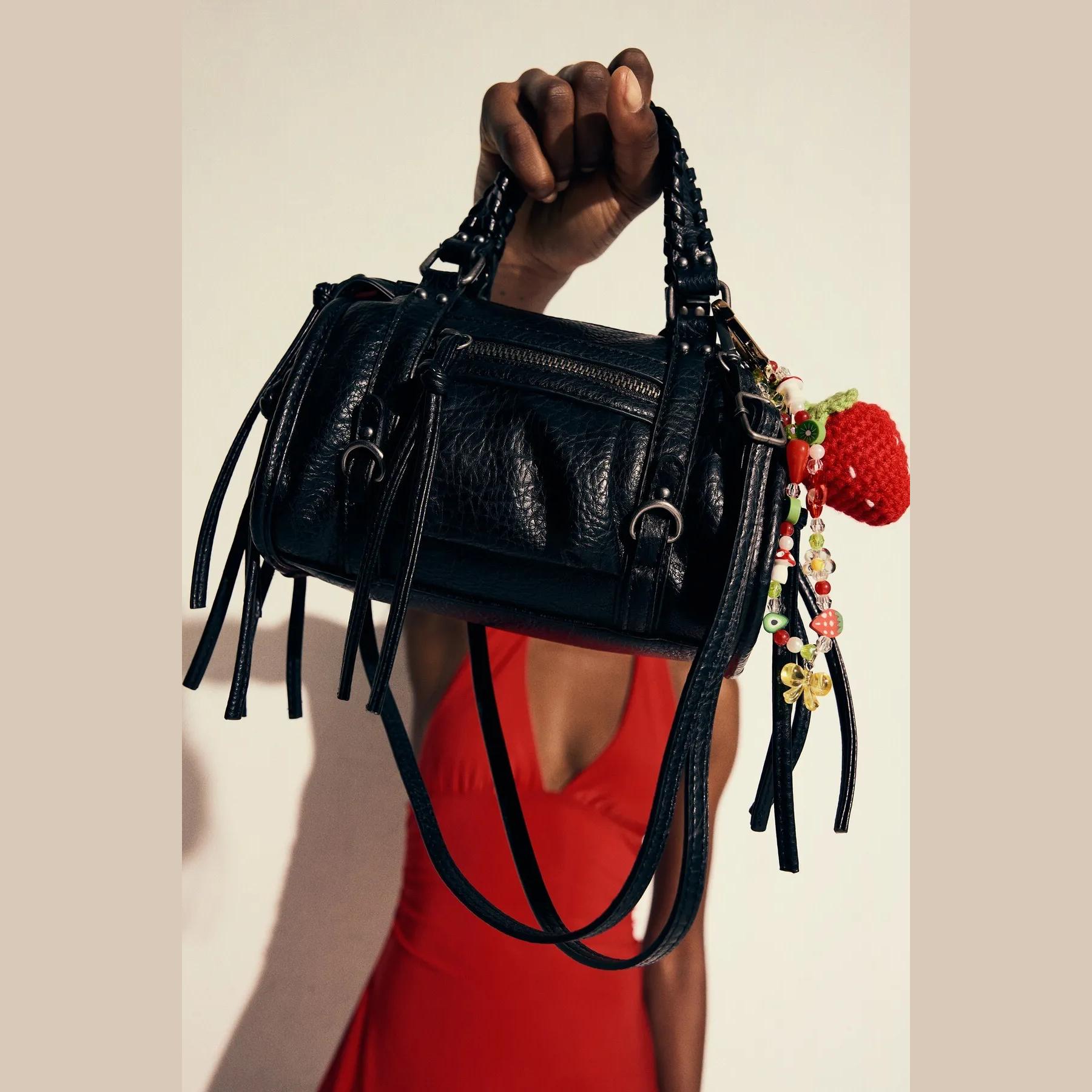 تميّزي بإطلالة أنيقة وعملية مع هذه الشنطة الميني من Bershka. تصميمها المستوحى من شكل شنطة البولينغ يمنحك مظهرًا منظمًا وعصريًا، بينما يضفي اللون الأسود حيادية مثالية تناسب جميع الإطلالات والمناسبات.