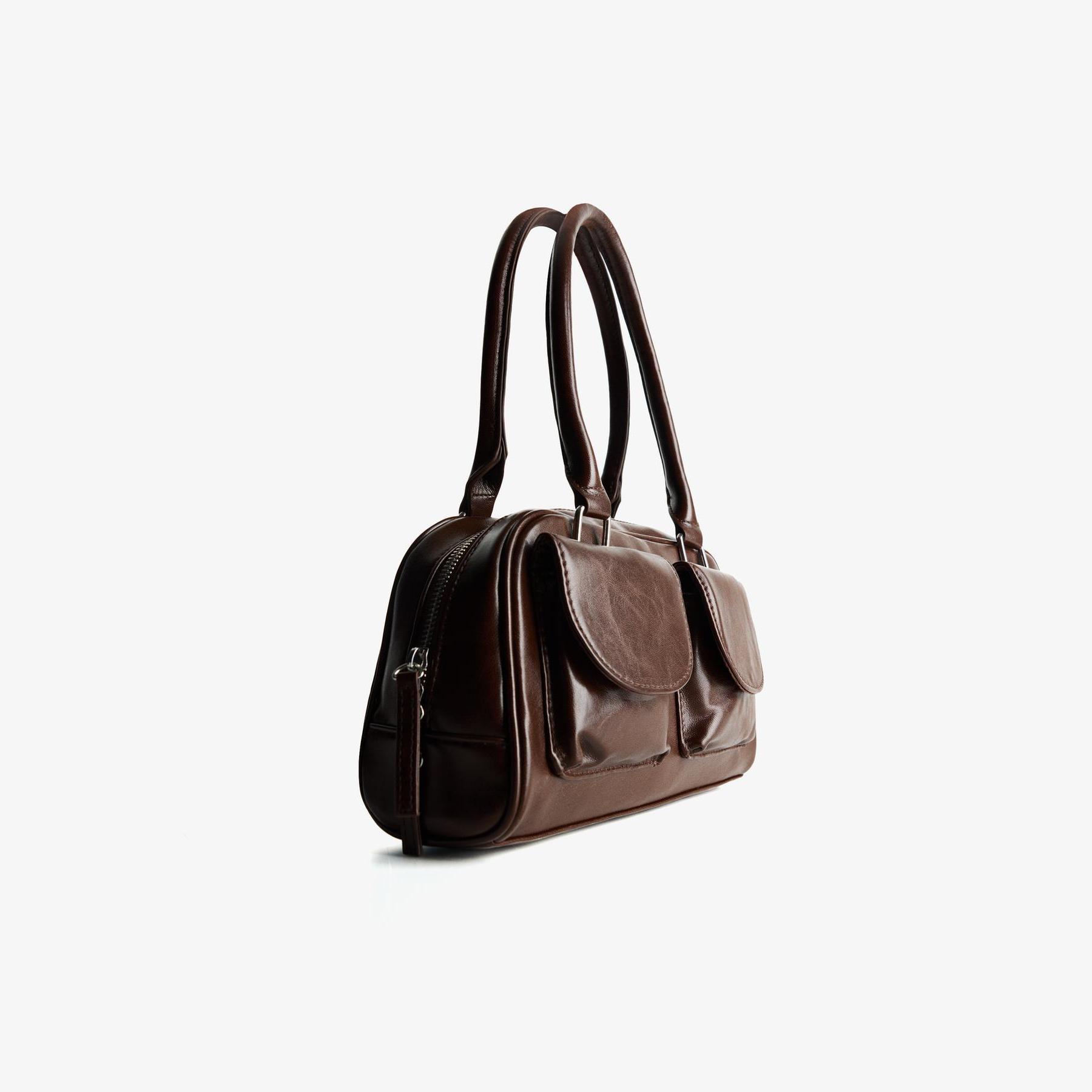 Bershka – شنطة بولينغ متوسطة الحجم بلون بني
