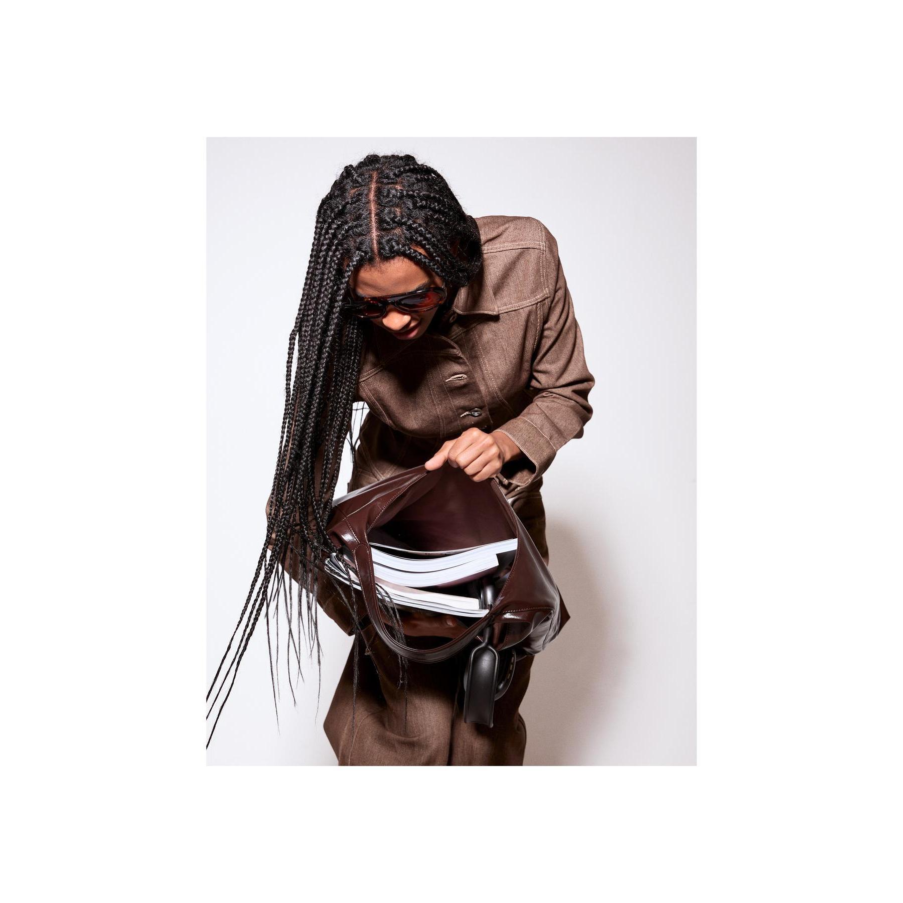 - التفاصيل: يد مزدوجة، بطانة داخلية، سطح لامع بتأثير Rugan، خياطة بارزة