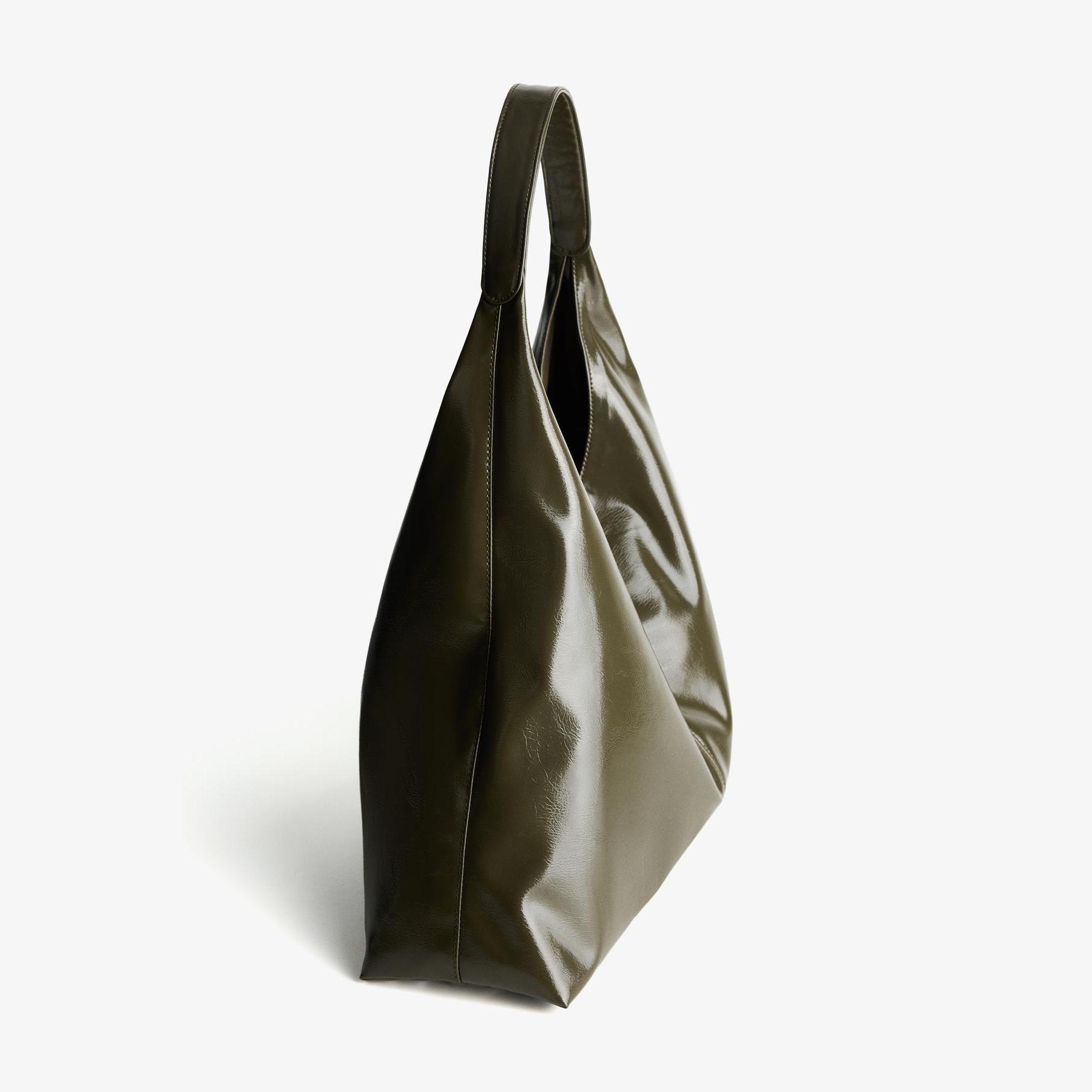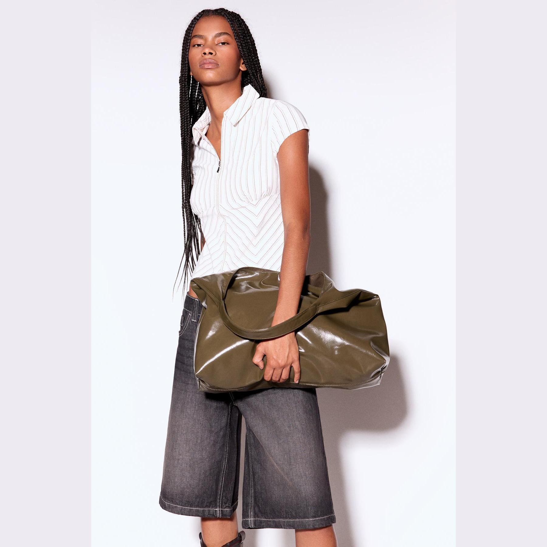 Bershka – شنطة بمظهر الجلد اللامع بنقشة جلد التمساح بلون زيتي