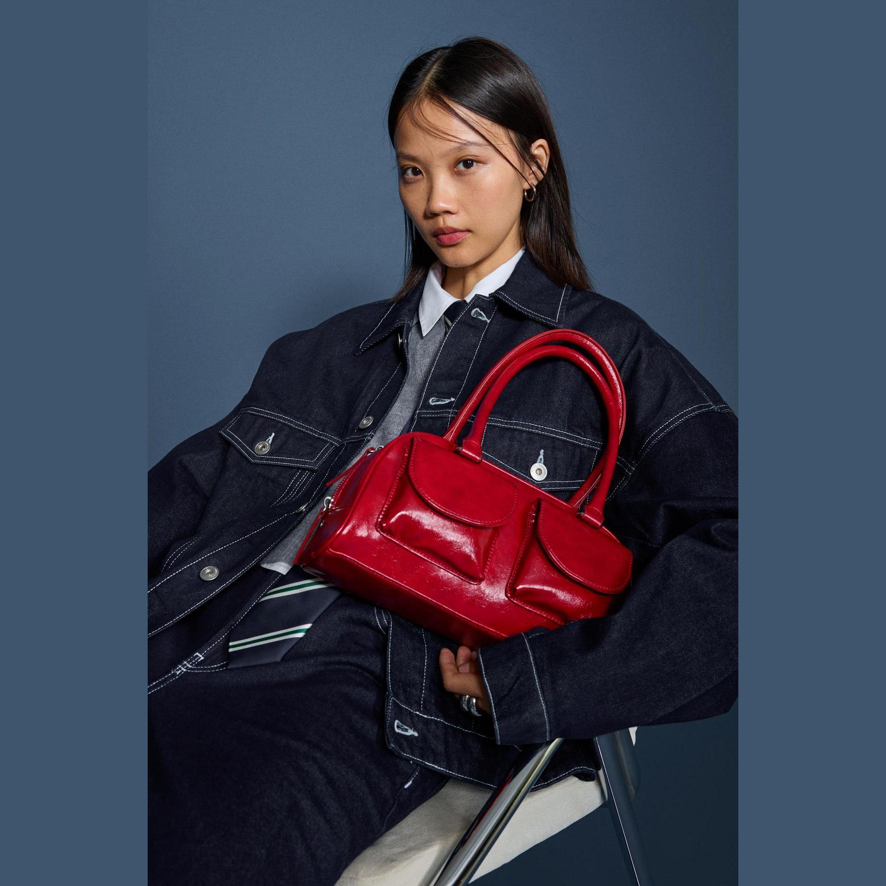 Bershka – شنطة بولينغ متوسطة الحجم بلون أحمر