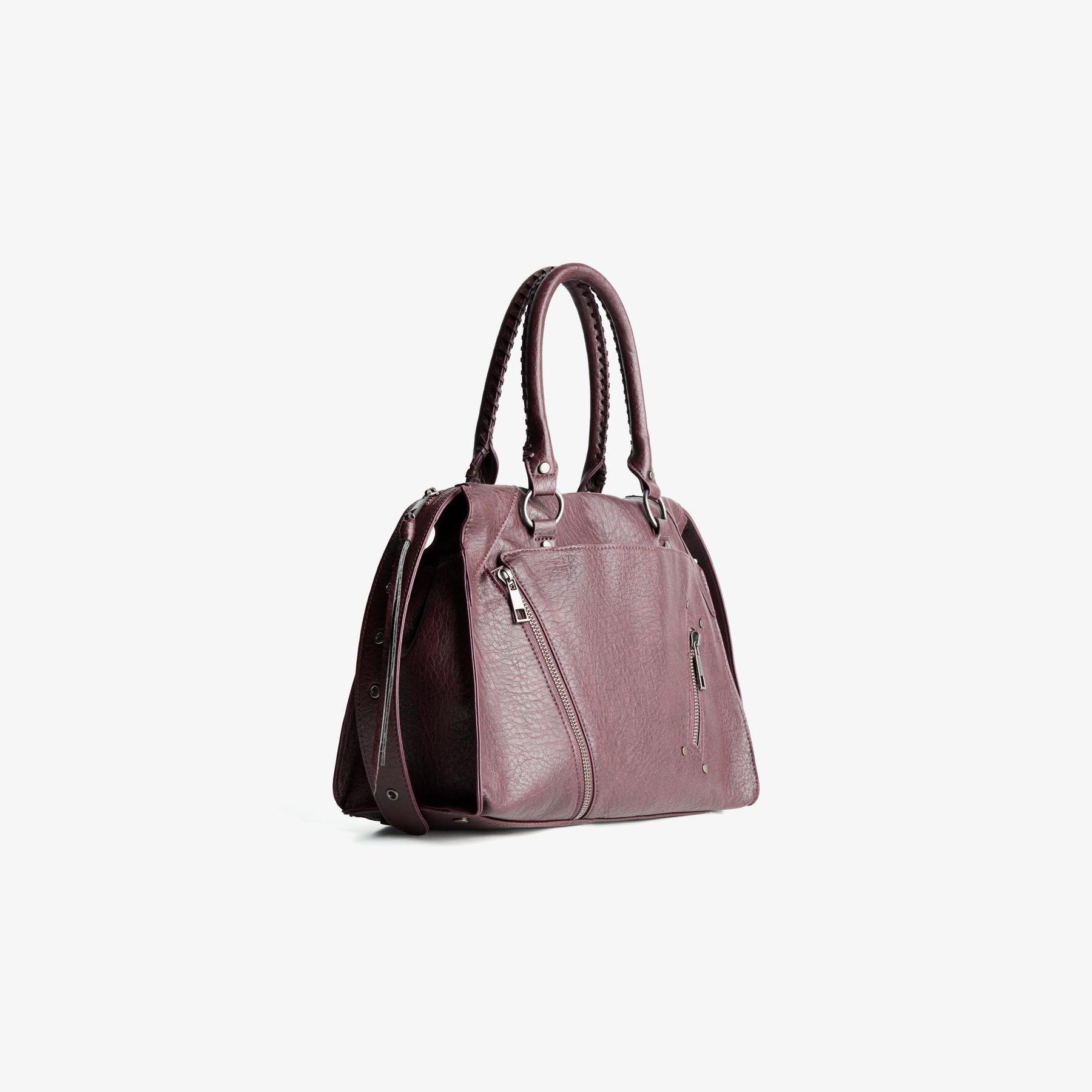 أضيفي لمسة فاخرة وعصرية إلى إطلالتك مع هذه الشنطة المتوسطة من Bershka. تصميمها بنقشة جلد صناعي مختلطة يمنحك مظهرًا مميزًا، بينما يضفي اللون البوردو دفئًا وأناقة تناسب الإطلالات اليومية والمناسبات الخاصة.