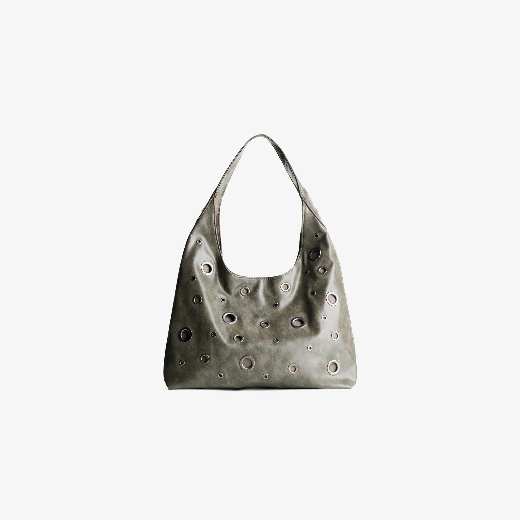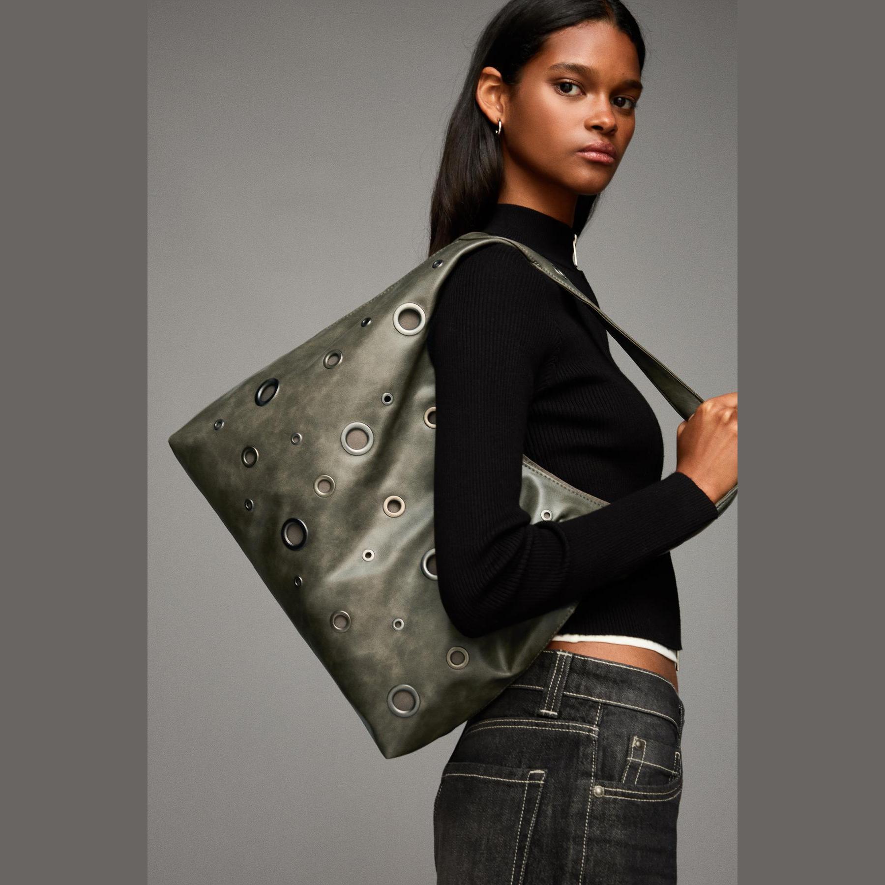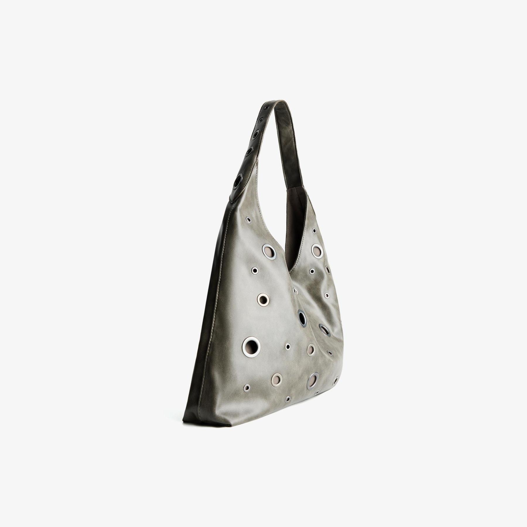 Bershka – شنطة بتصميم ثقوب مراقبة بلون رمادي بنقشة جلد صناعي Mix