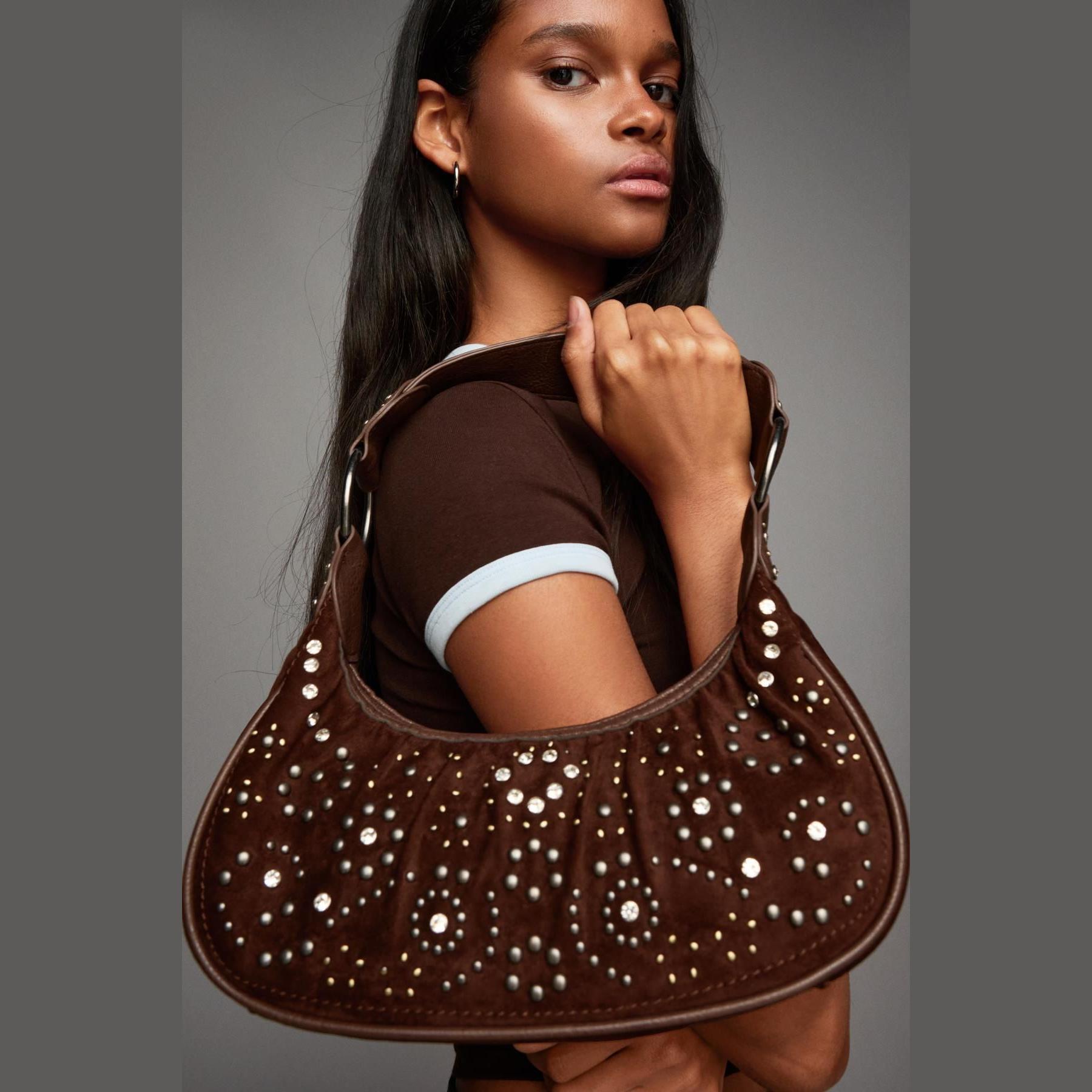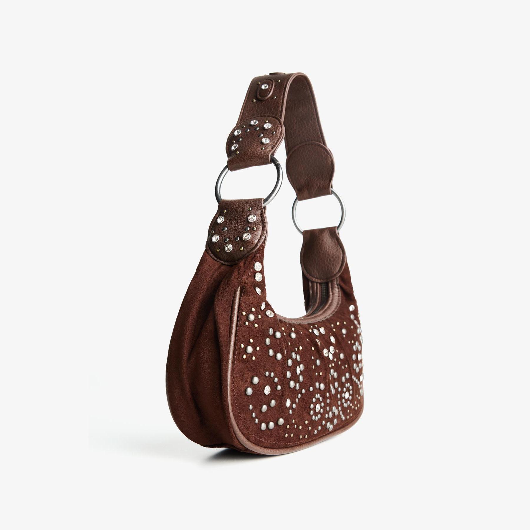 Bershka – شنطة مزينة بالمسامير بلون بني بنقشة Mix