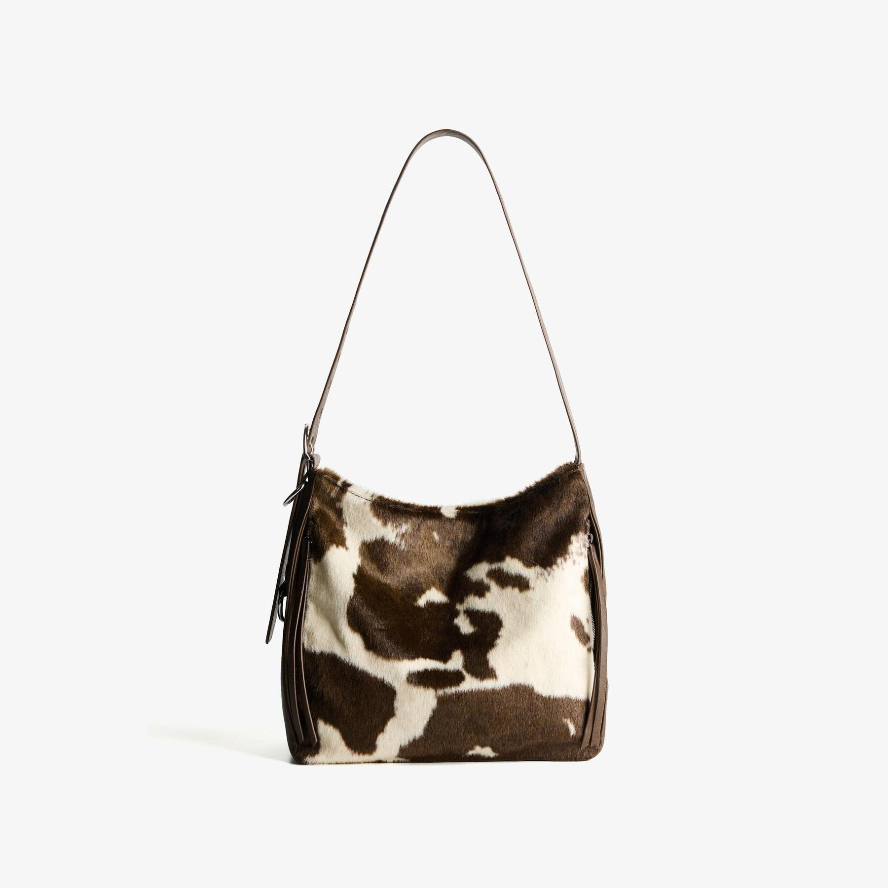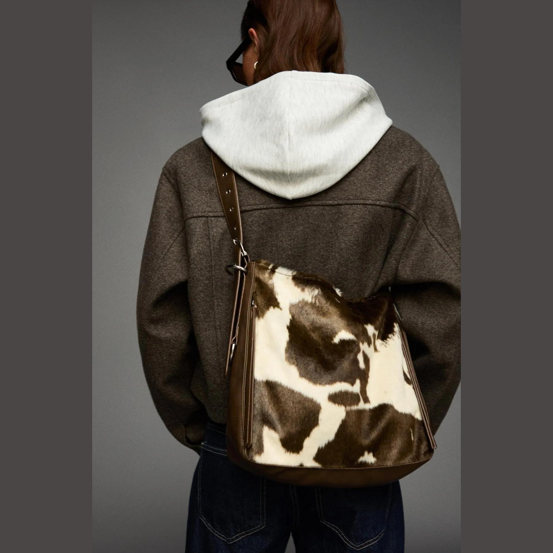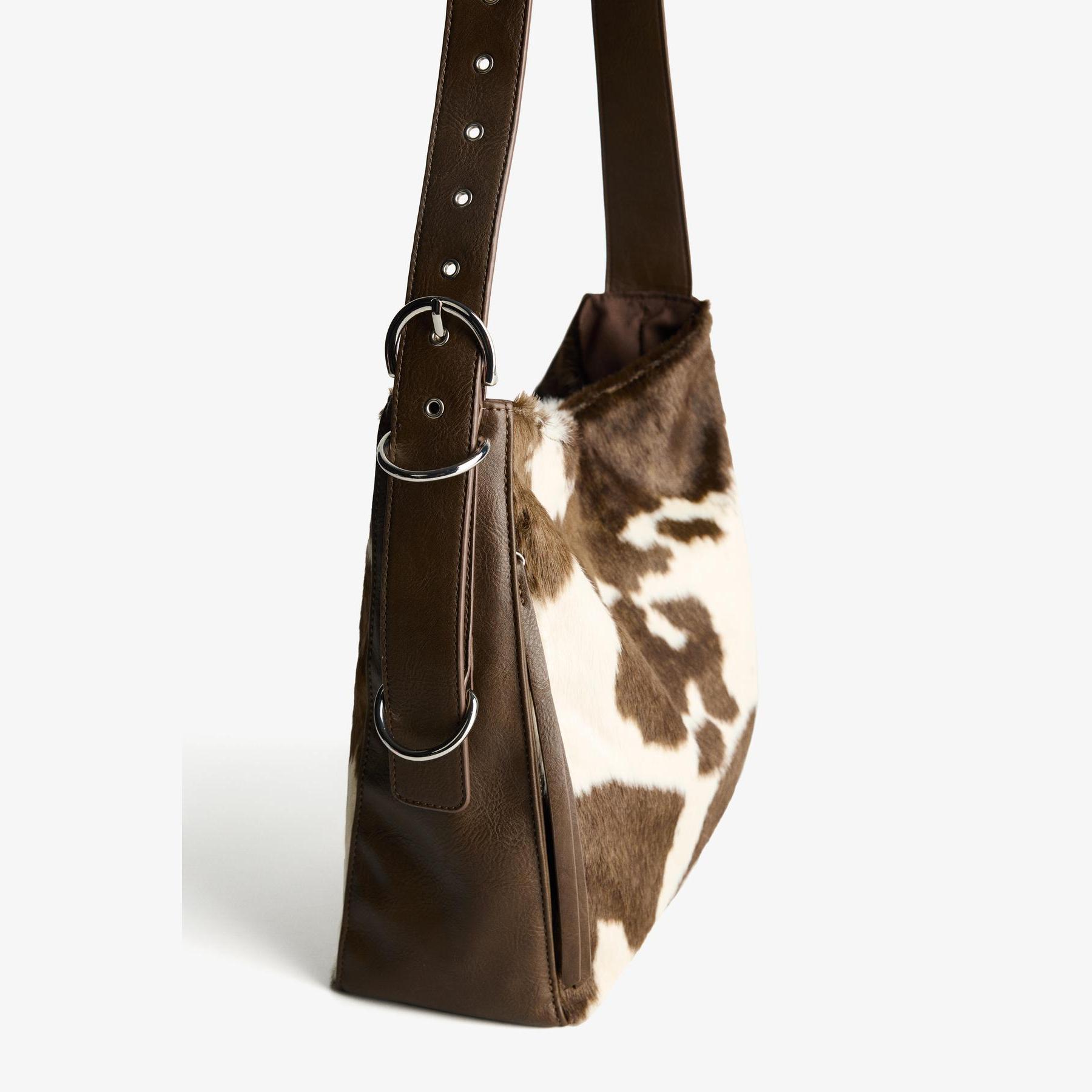 Bershka – شنطة جلد صناعي بنقشة Mix بلون بني