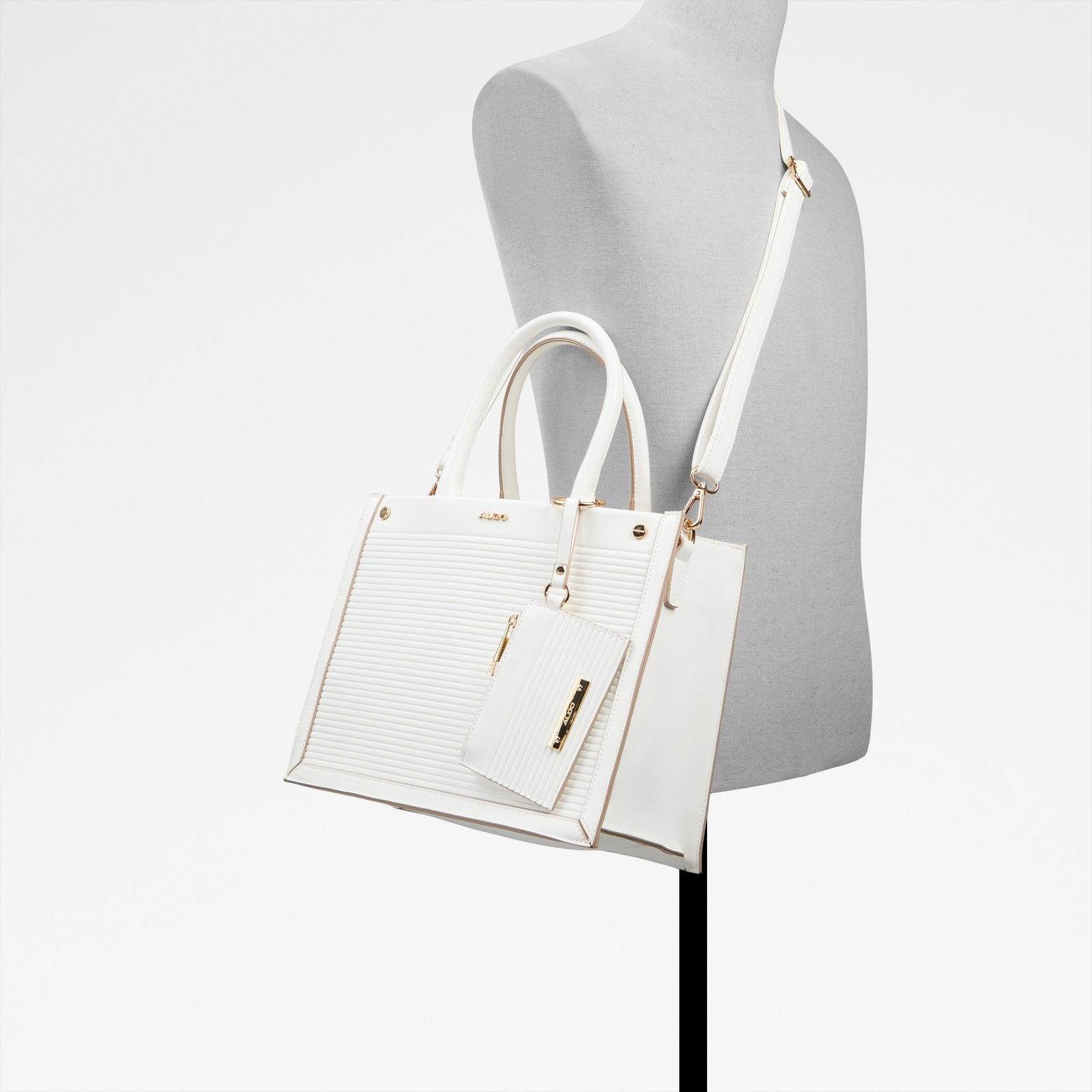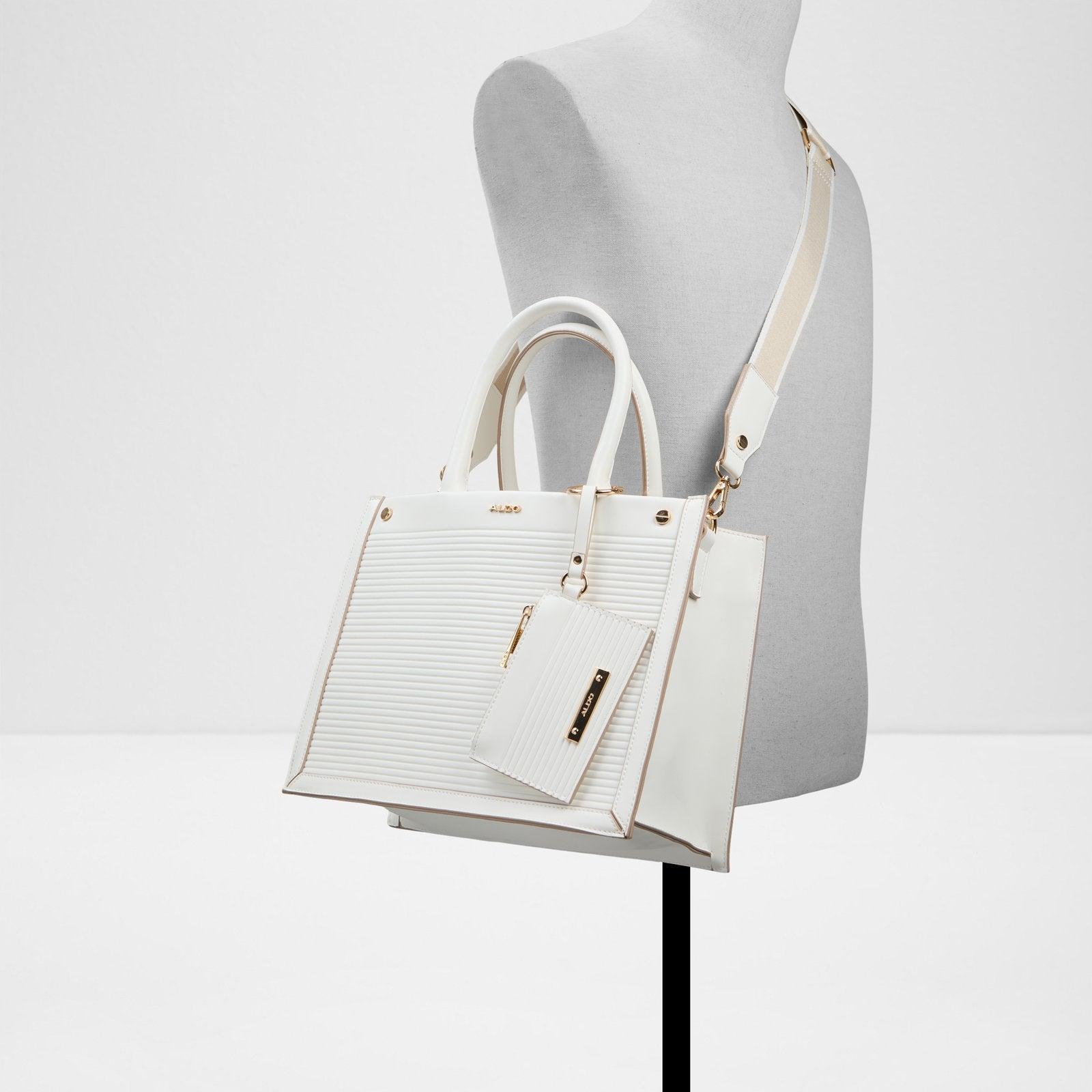 ALDO – شنطة DASPIAS نسائية بلون أبيض بسطح بارز وزينة زِمب