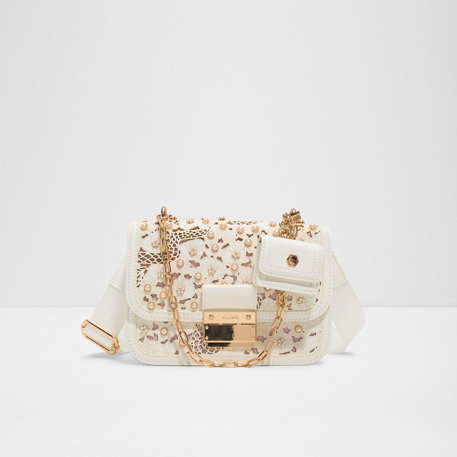 ALDO – شنطة KAILEIGH نسائية بلون أبيض بسلسلة كتف ومحفظة مرفقة