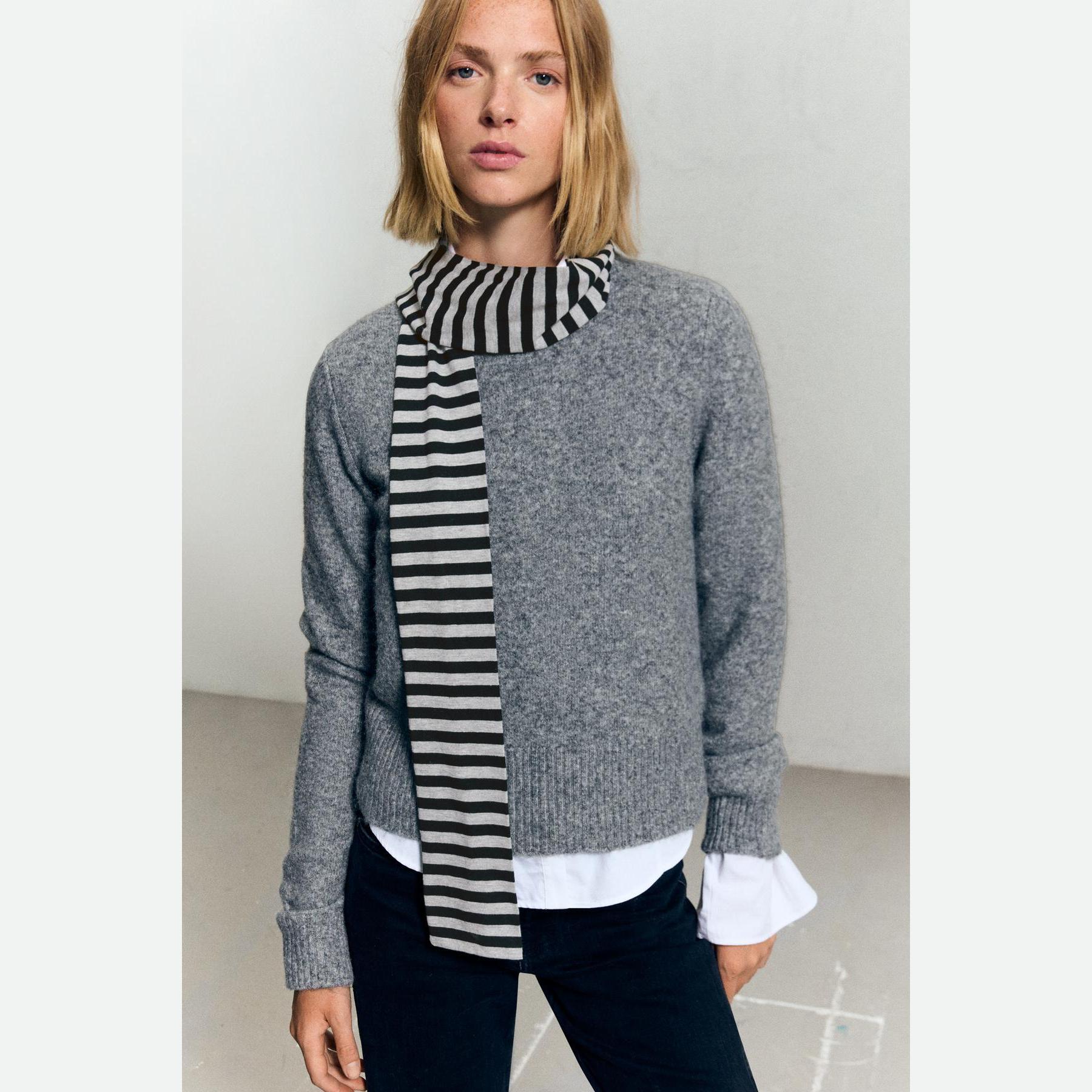 Bershka – فولار طويل جدًا بطبعة أنيقة بلون أسود