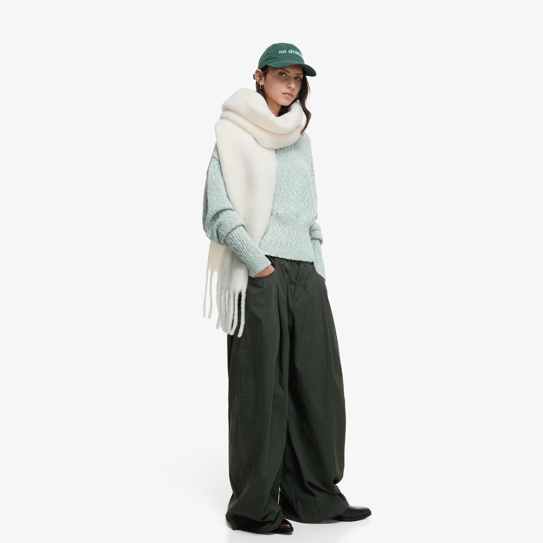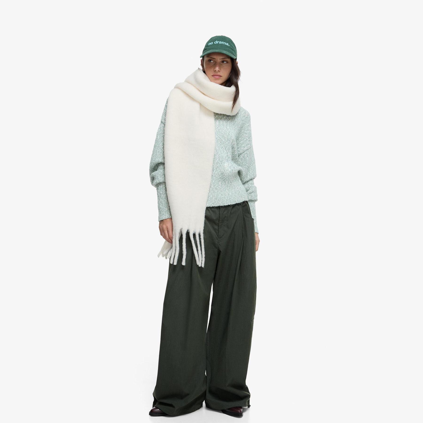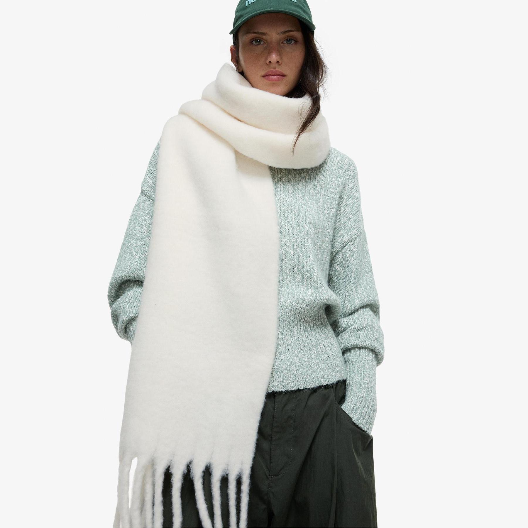 أضف لمسة دافئة إلى إطلالتك مع هذا الوشاح الطويل المصمم بلون كريمي حيادي. خامته الناعمة تجعله مثاليًا للاستخدام اليومي في الأجواء الباردة، بينما يمنحك التصميم السادة حرية التنسيق مع مختلف الملابس الكاجوال أو الكلاسيكية.
