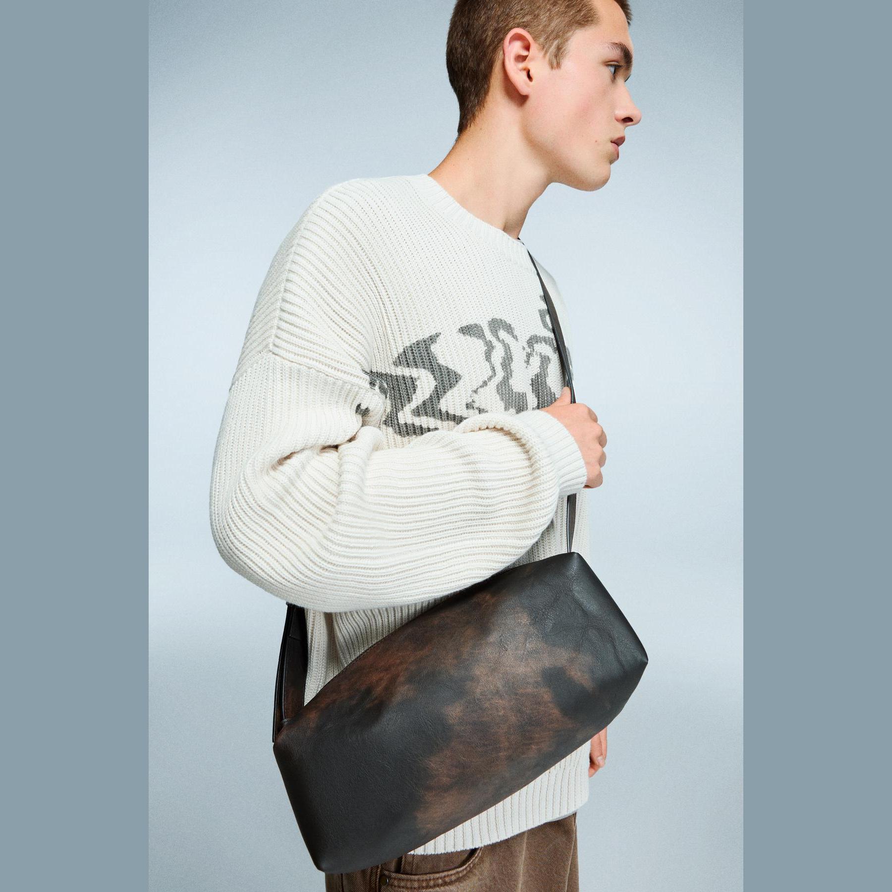 شنطة كروس رجالية بنقشة ميكس – بني من Bershka