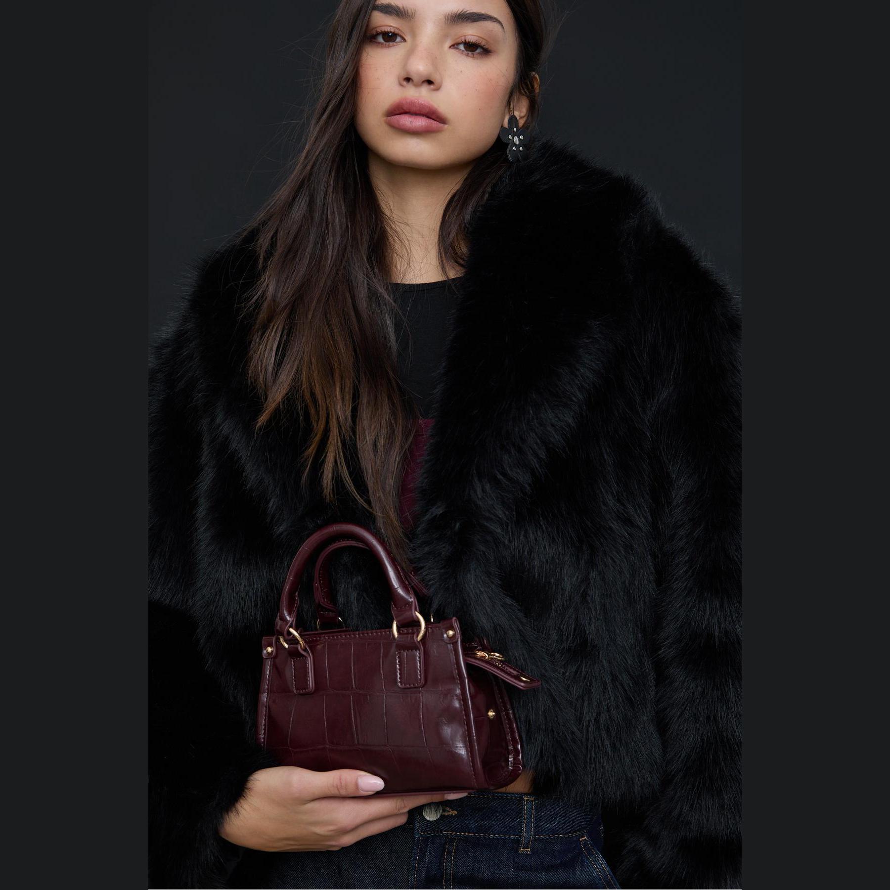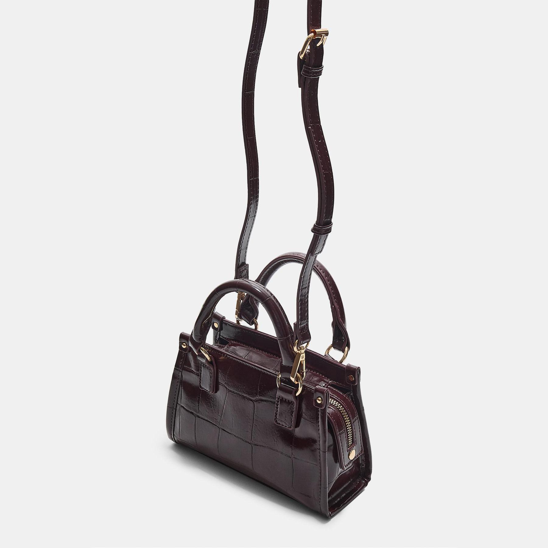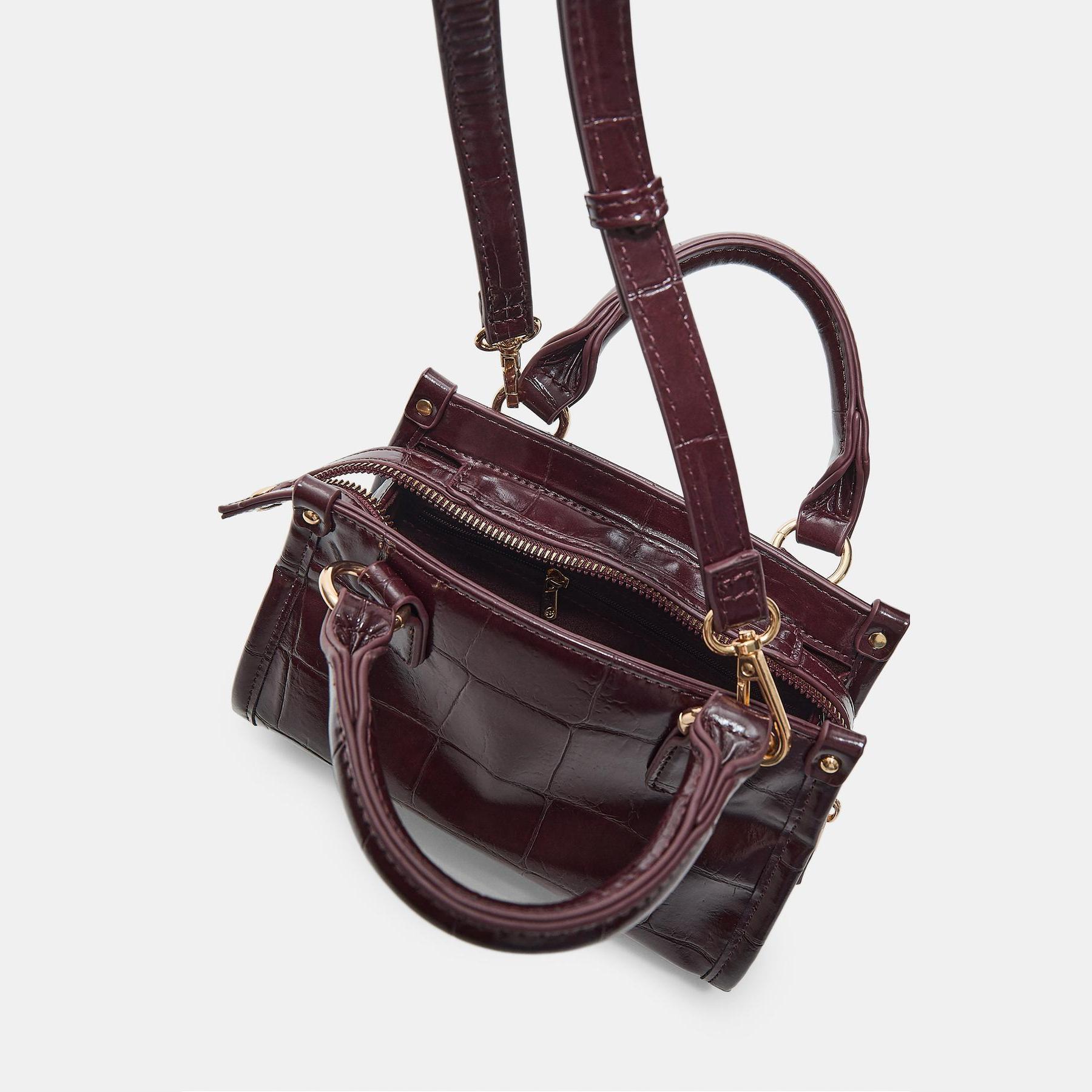 شنطة Mini Tote بنقشة جلد التمساح – بوردو من Stradivarius