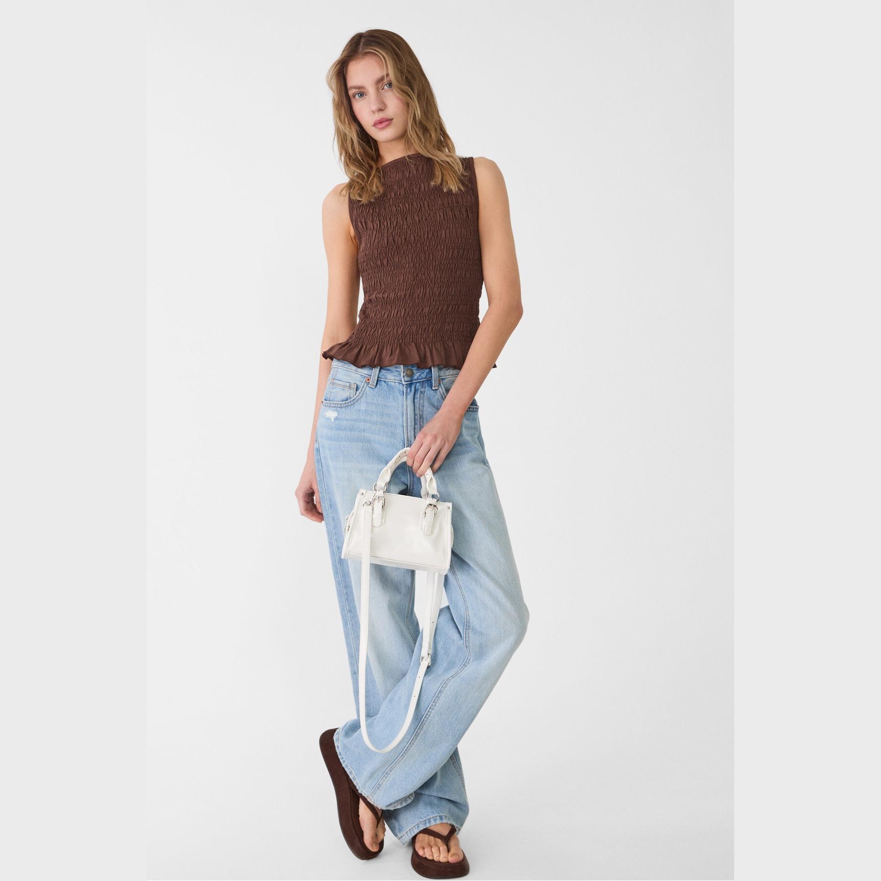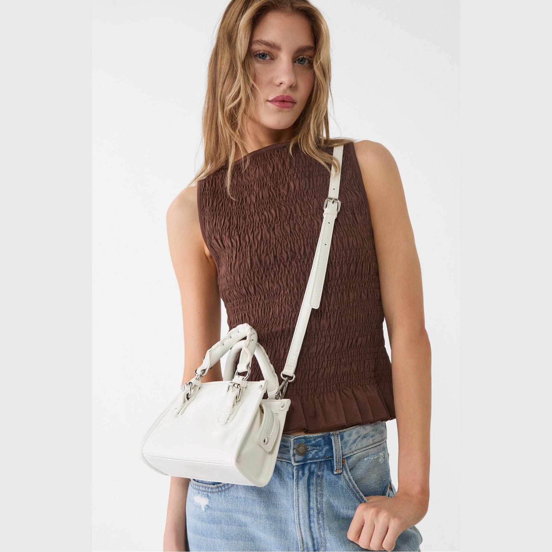 ارتقِ بإطلالتك اليومية مع هذه الشنطة العملية من Stradivarius المصممة بمقبض علوي مضفور وحزام كروس قابل للتعديل. خامتها الجلدية تضيف لمسة أنيقة وعصرية.