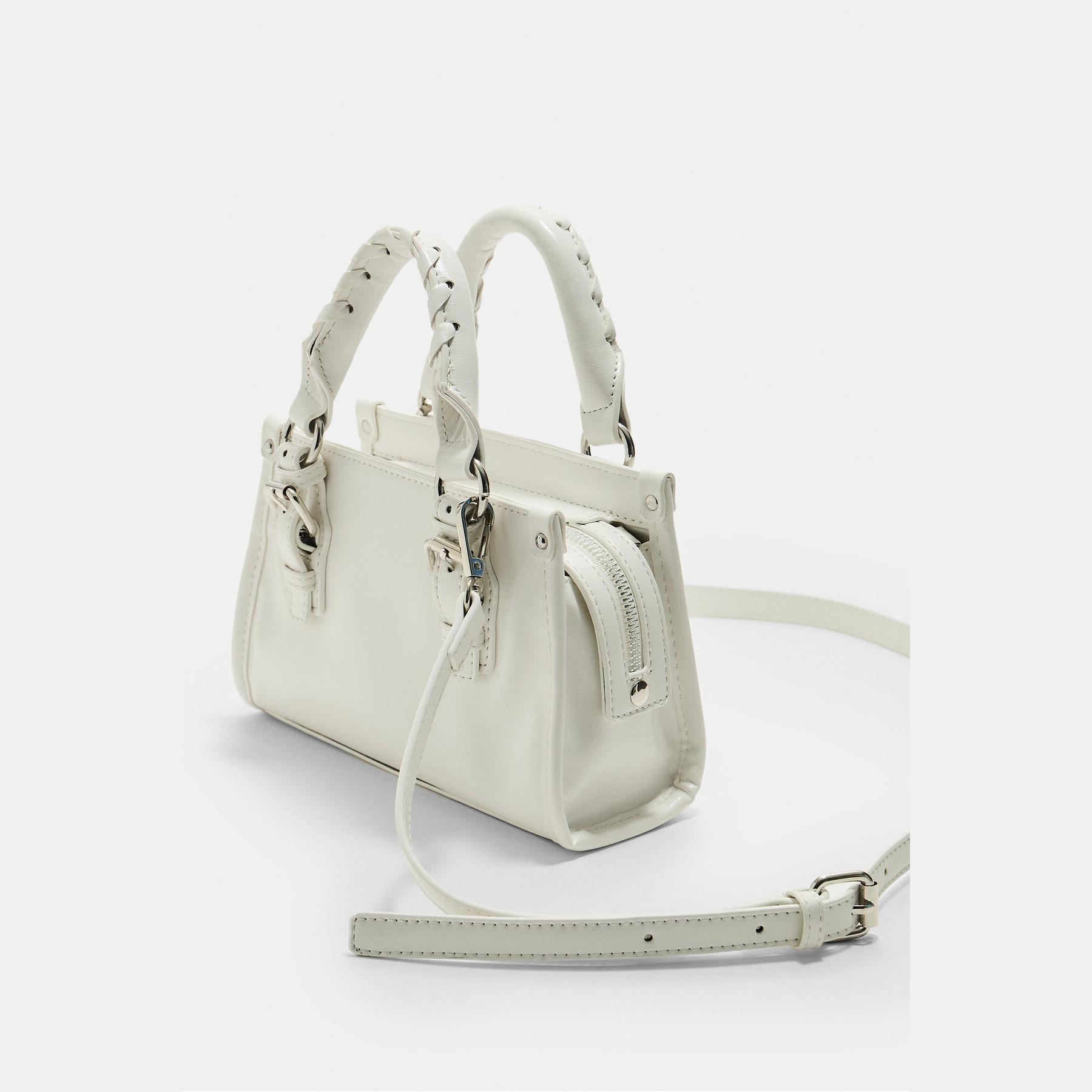 شنطة بوستاجي بمقبض مضفور – أبيض من Stradivarius