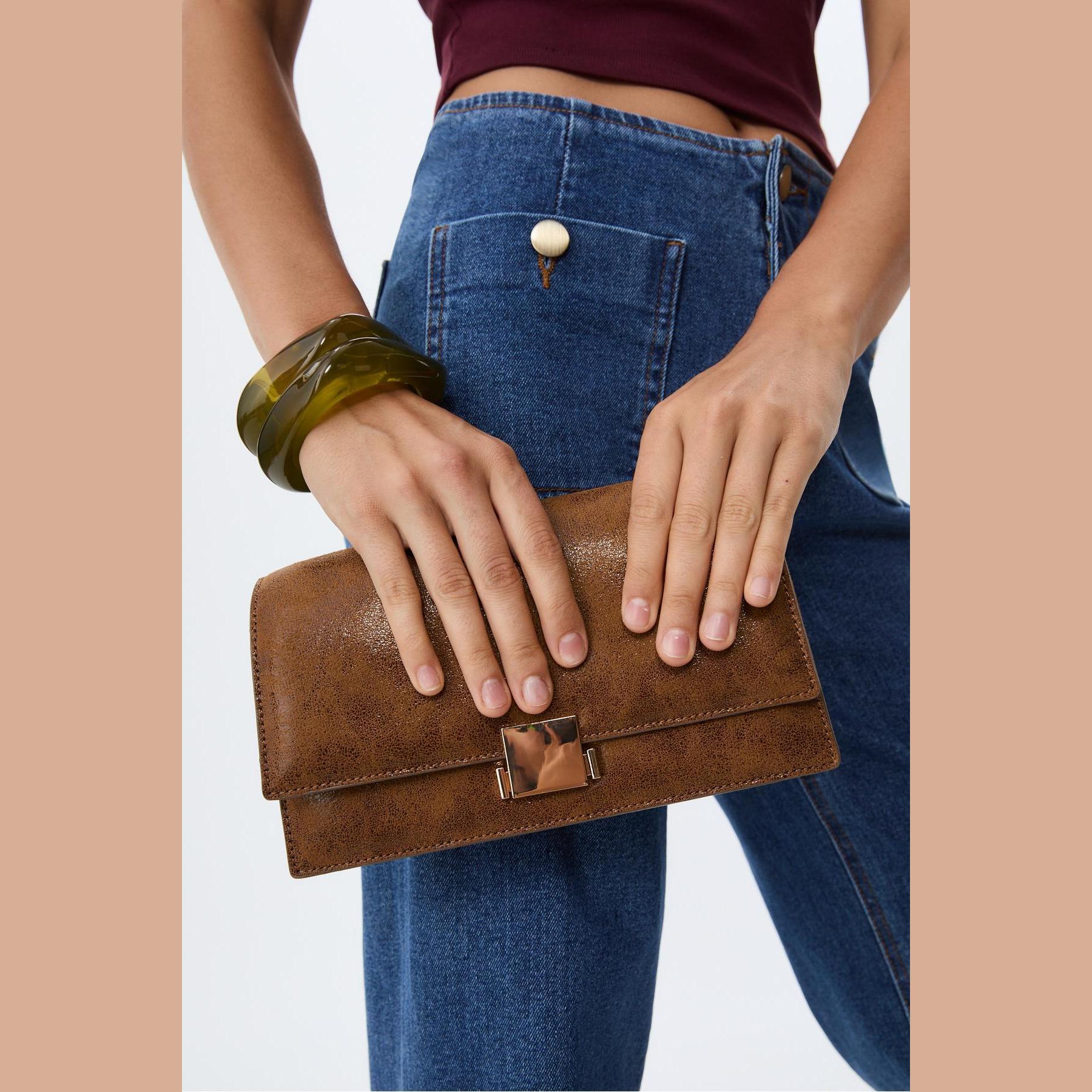 شنطة كروس بإغلاق معدني – بني من Stradivarius