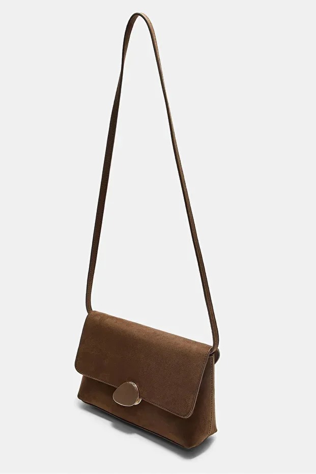 شنطة شامواه صناعي بإغلاق معدني غير متماثل – بني من Stradivarius