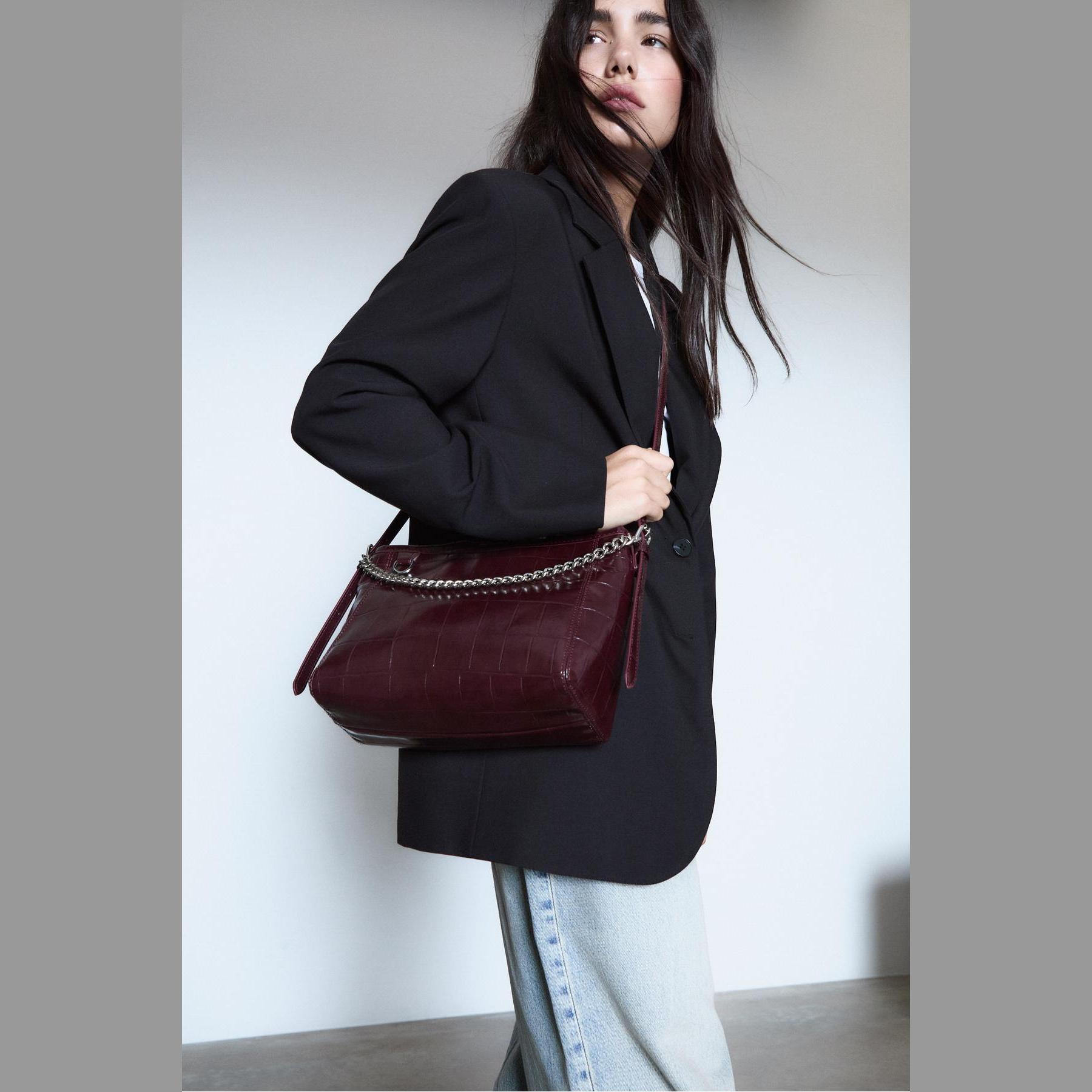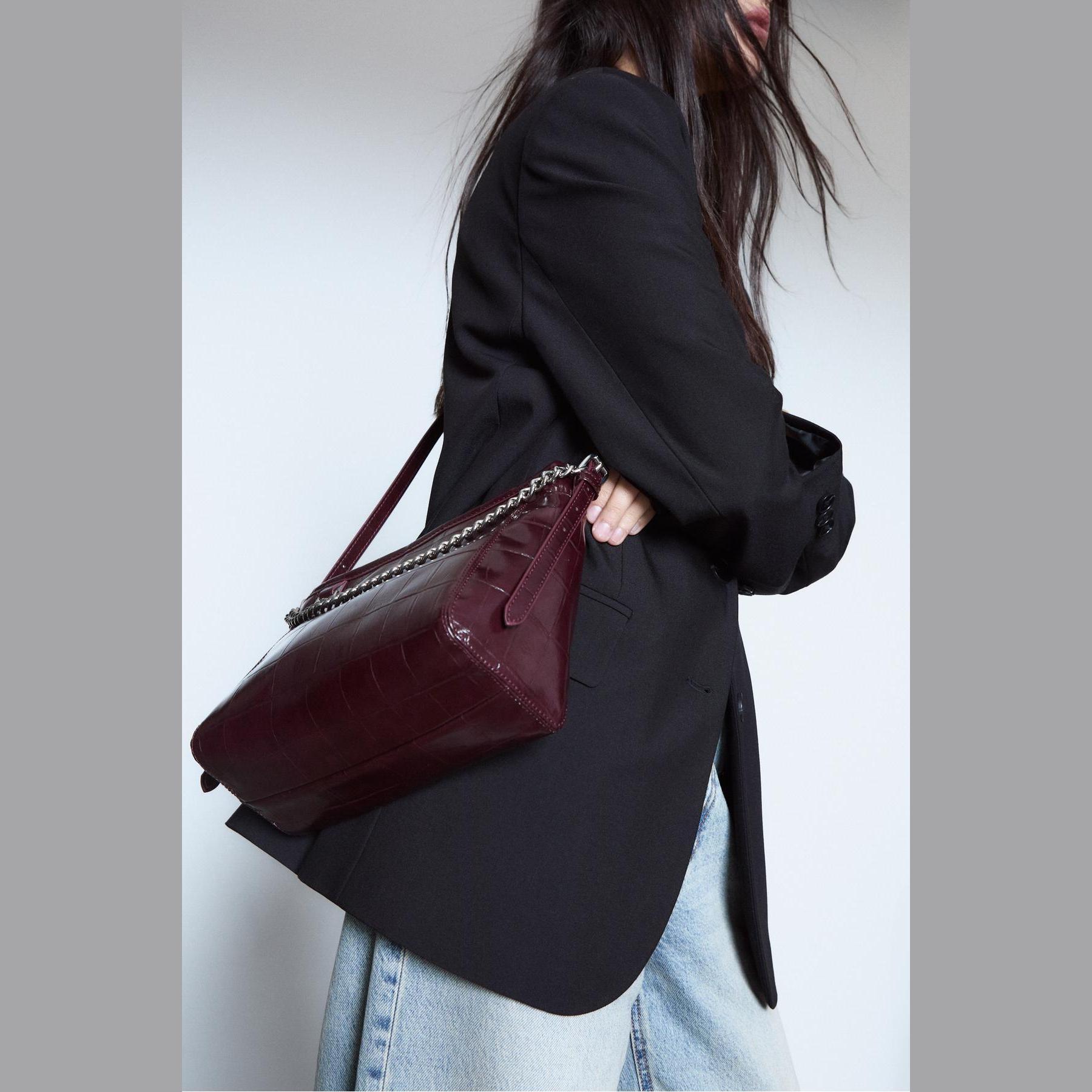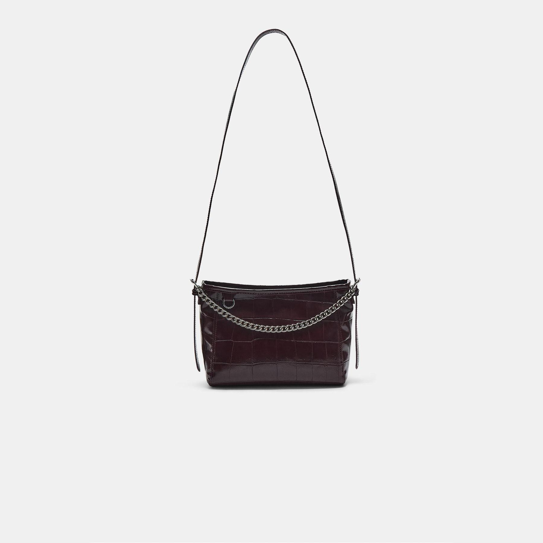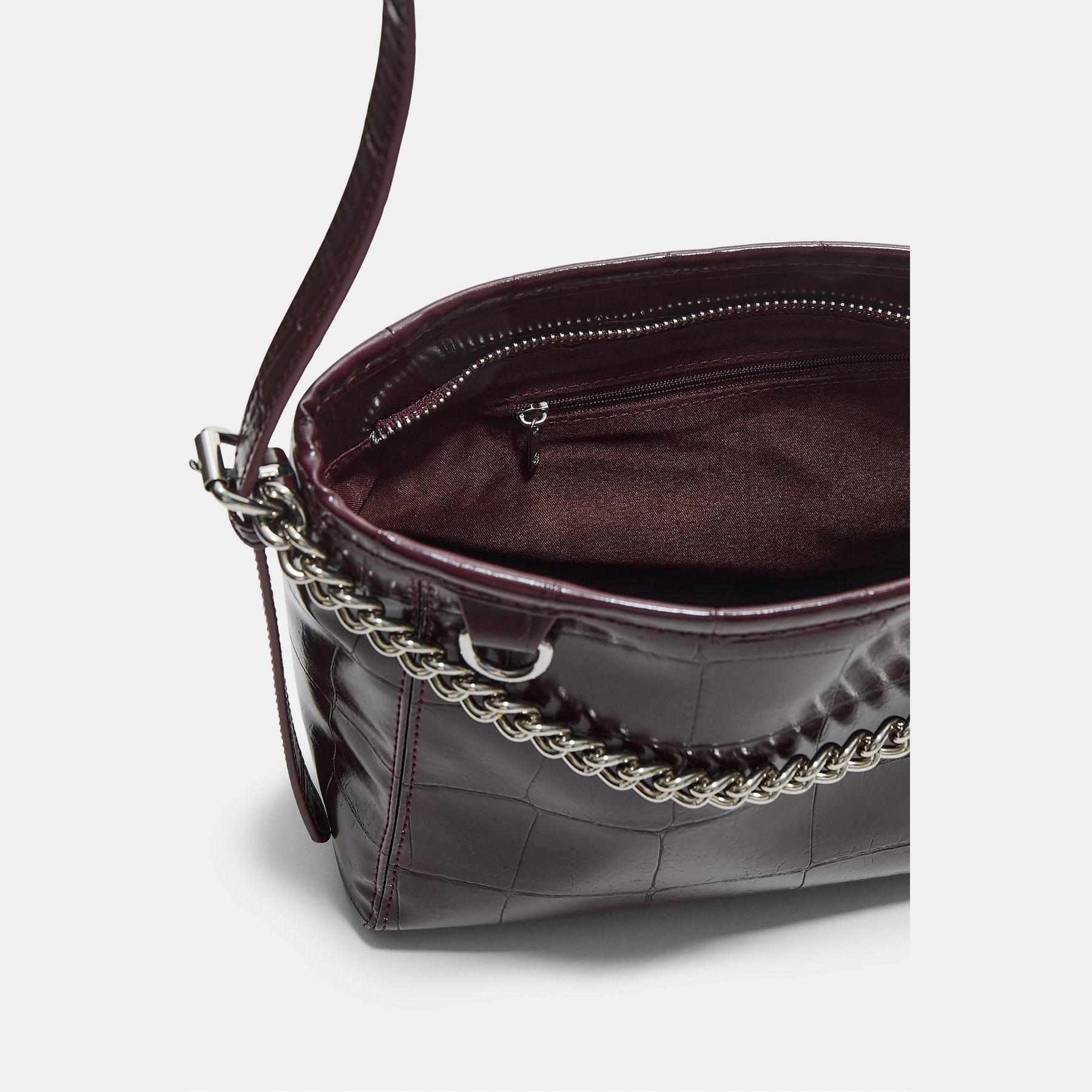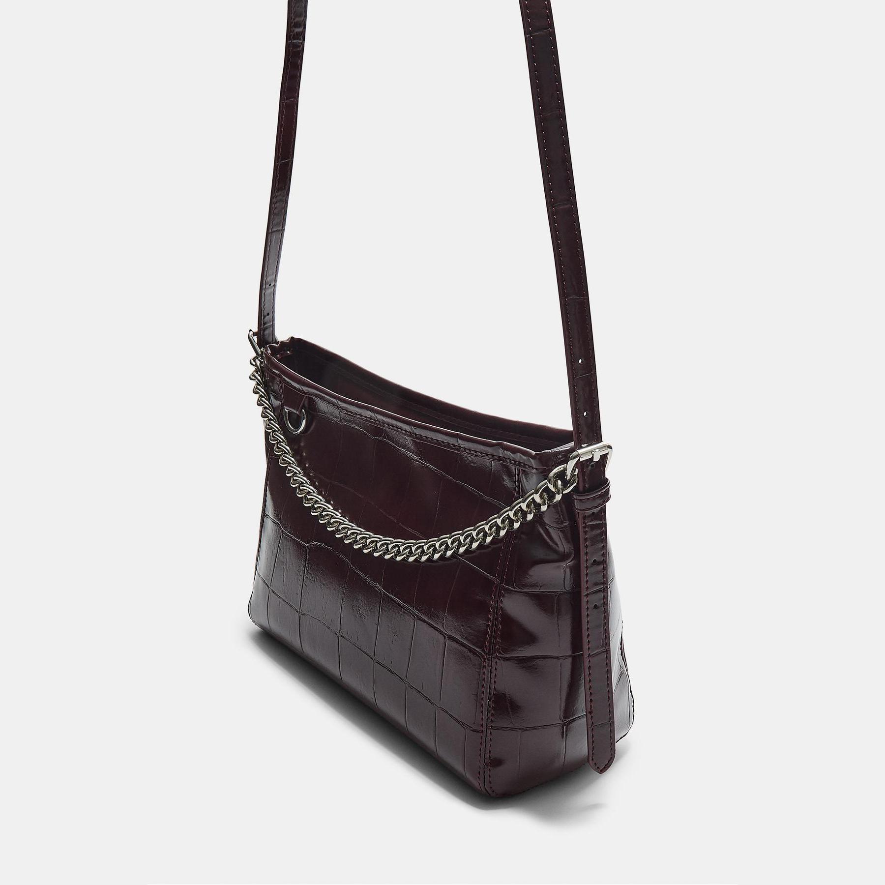 شنطة كروس بسلسلة ونقشة جلد تمساح – بوردو من Stradivarius