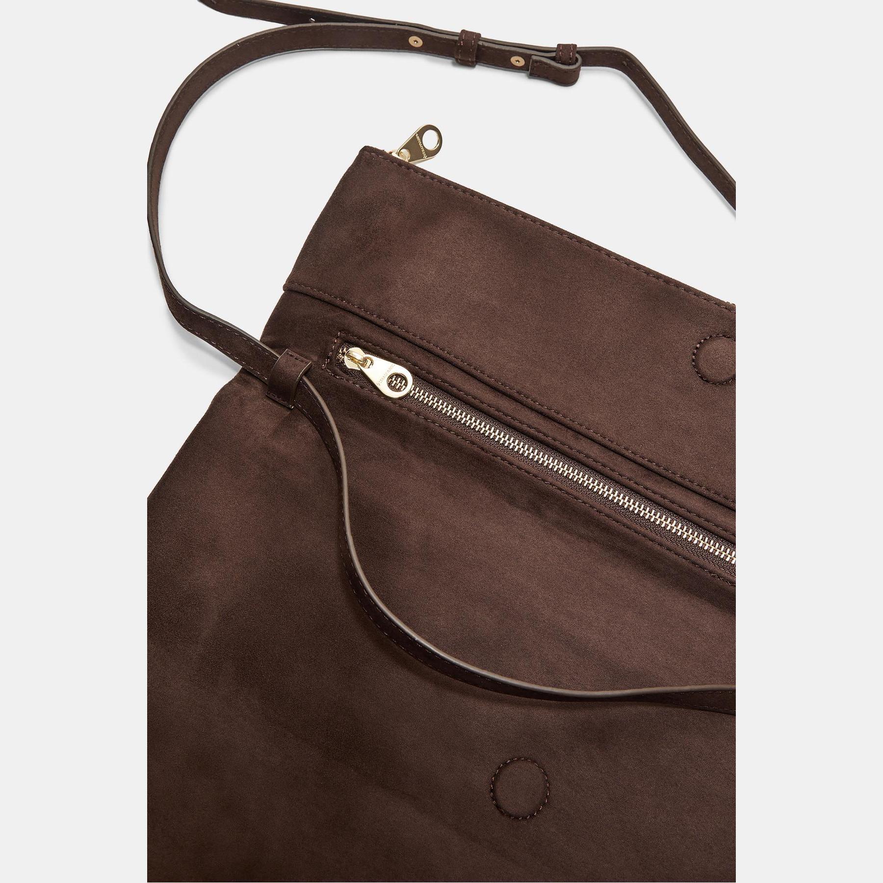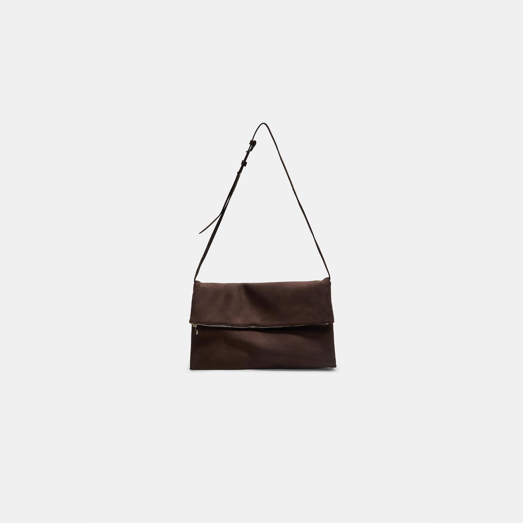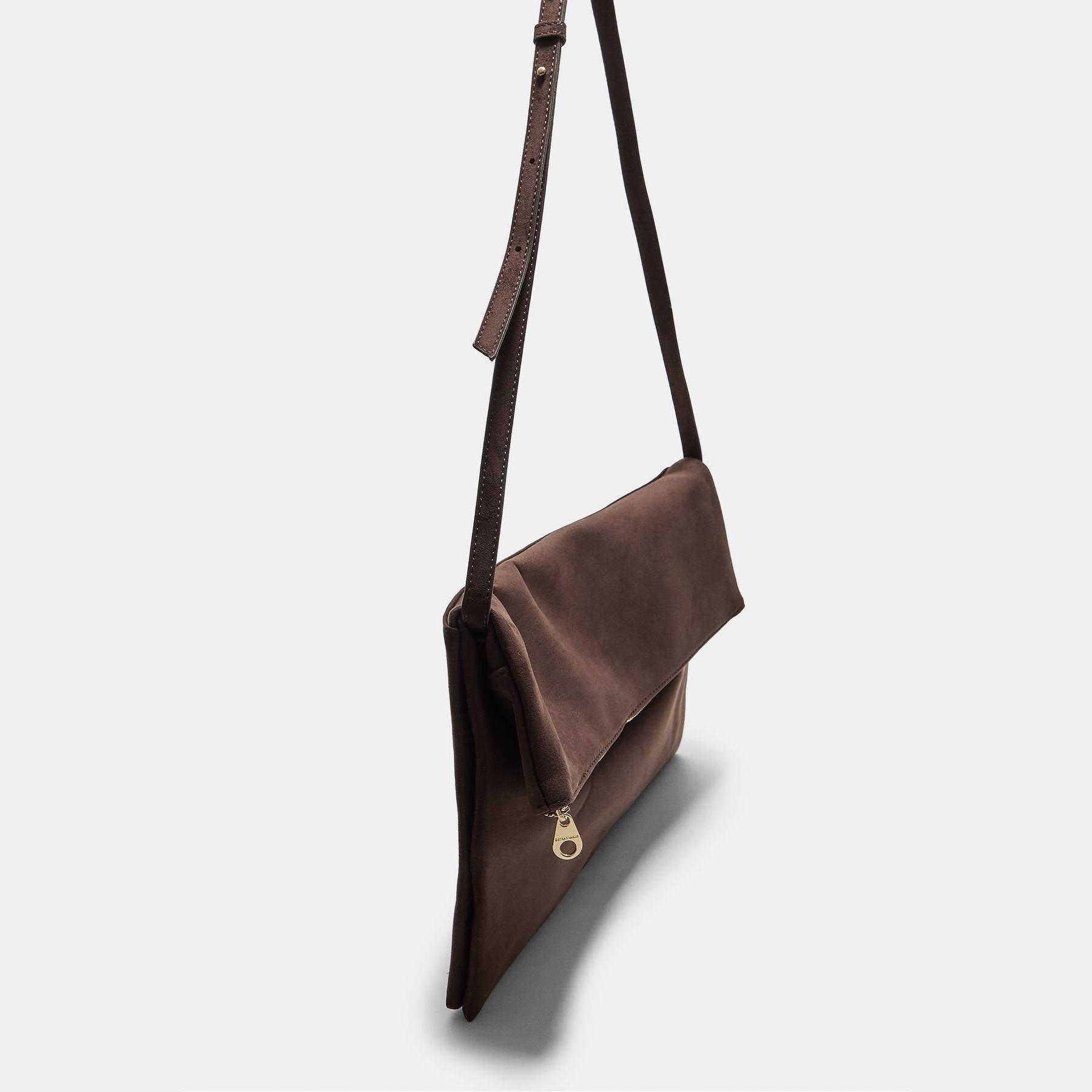 شنطة كلتش ماكسي من شامواه صناعي – بني من Stradivarius