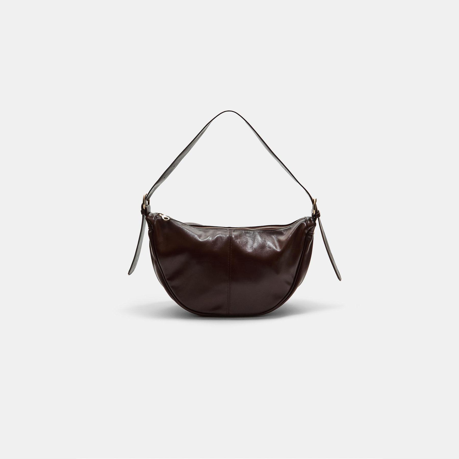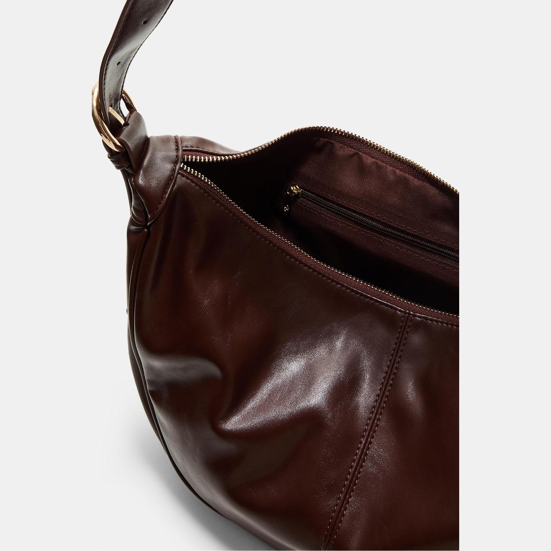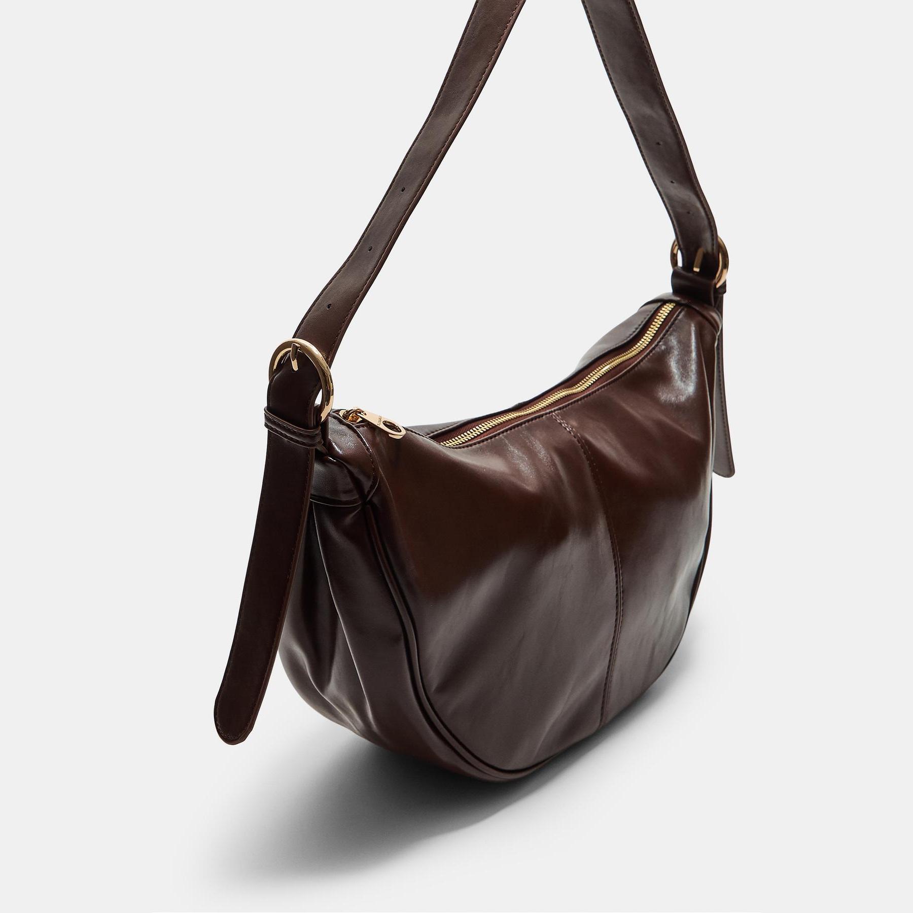 شنطة كتف من الجلد الصناعي بتصميم نصف قمر – بني من Stradivarius