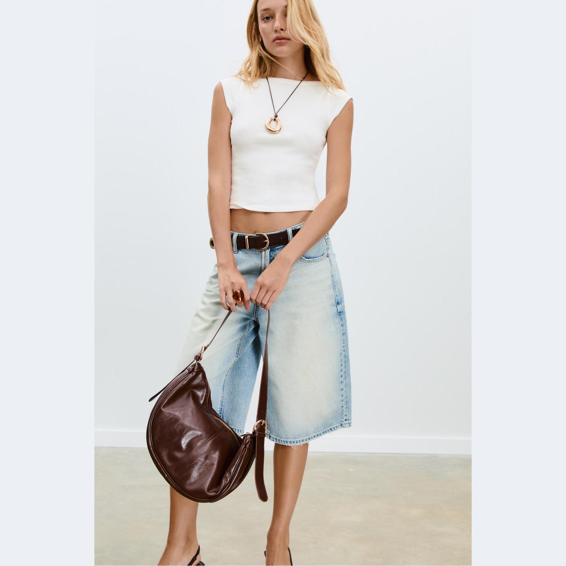 تميّزي بإطلالة حضرية أنيقة مع هذه الشنطة من Stradivarius المصممة بشكل نصف قمر وخامة جلد صناعي بملمس ناعم. تصميمها الانسيابي يجعلها مثالية لحمل الأساسيات اليومية بأسلوب عصري ومريح.