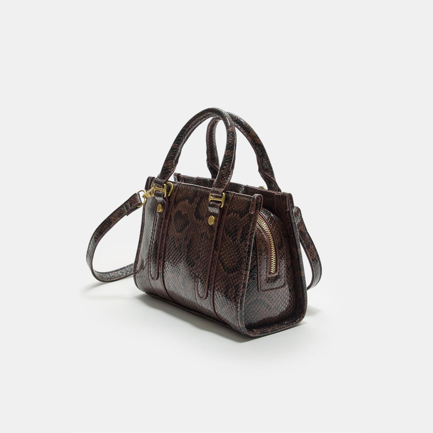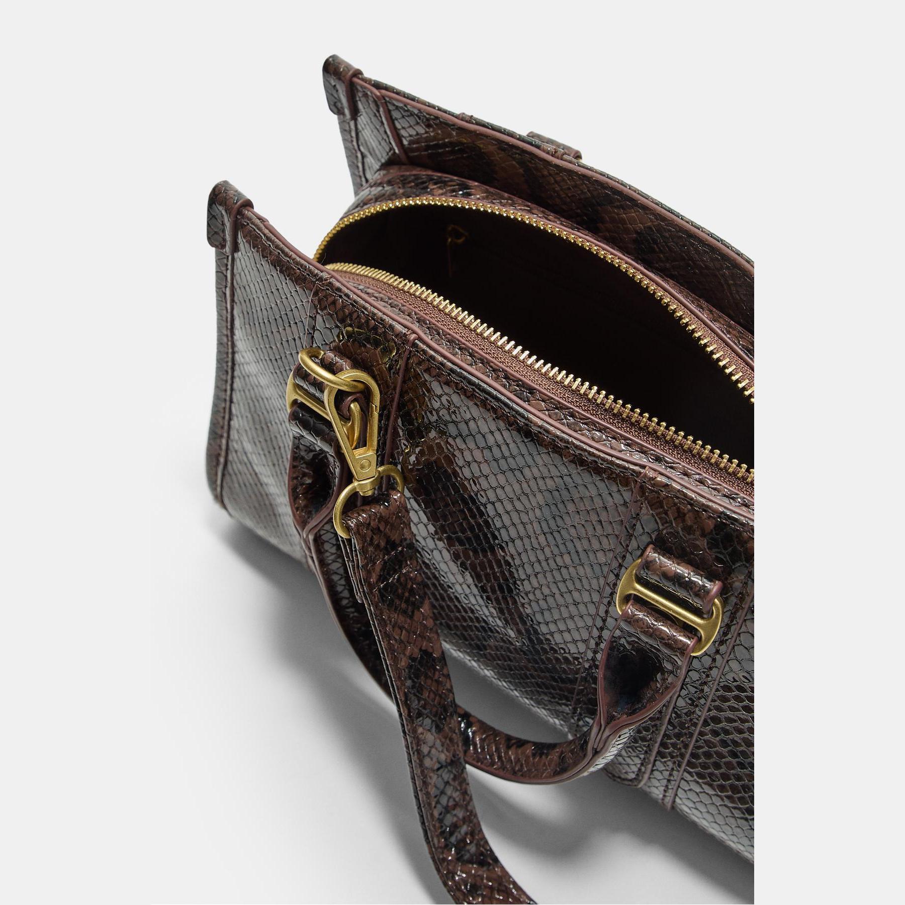 شنطة Tote من الجلد الصناعي بنقشة حيوانية – بني من Stradivarius