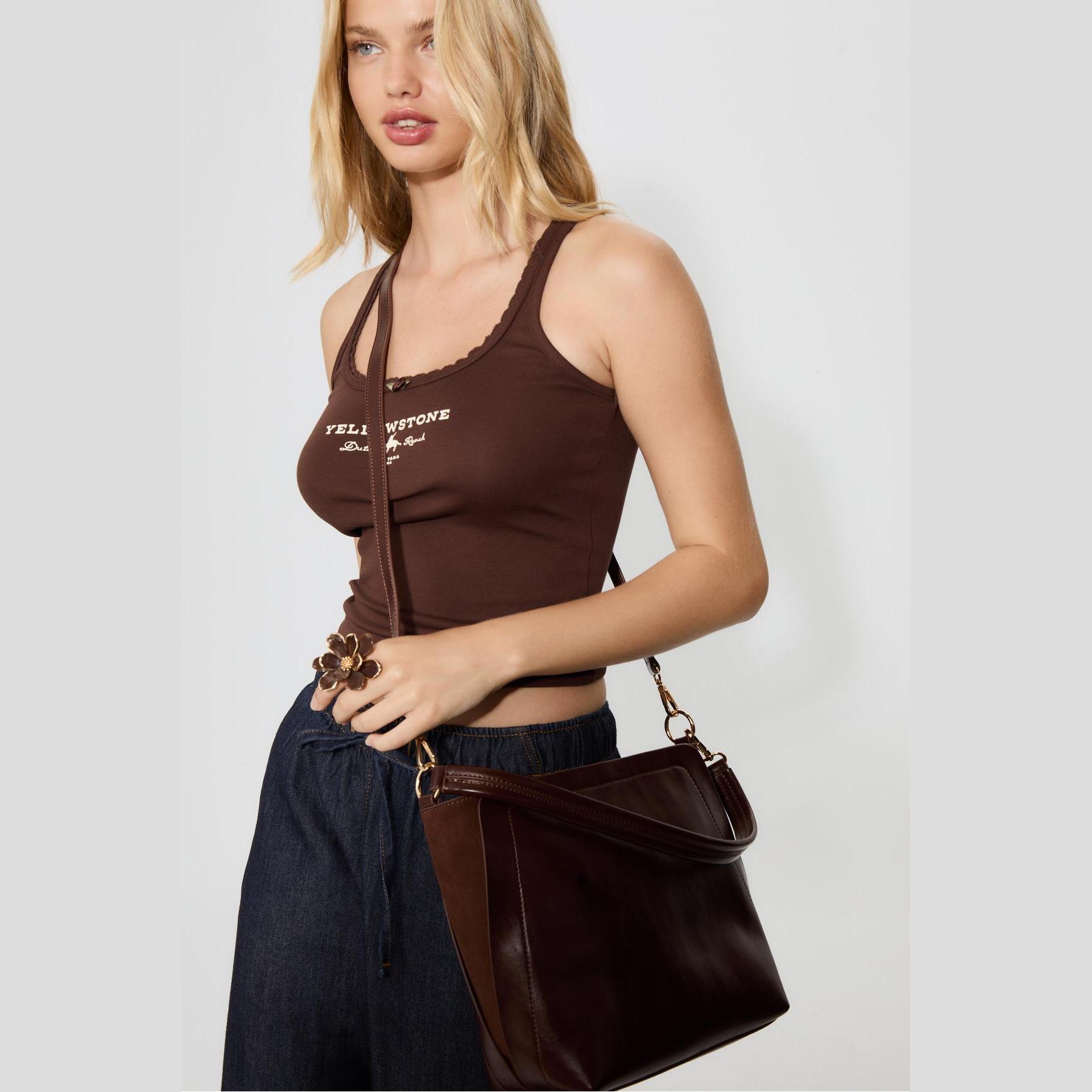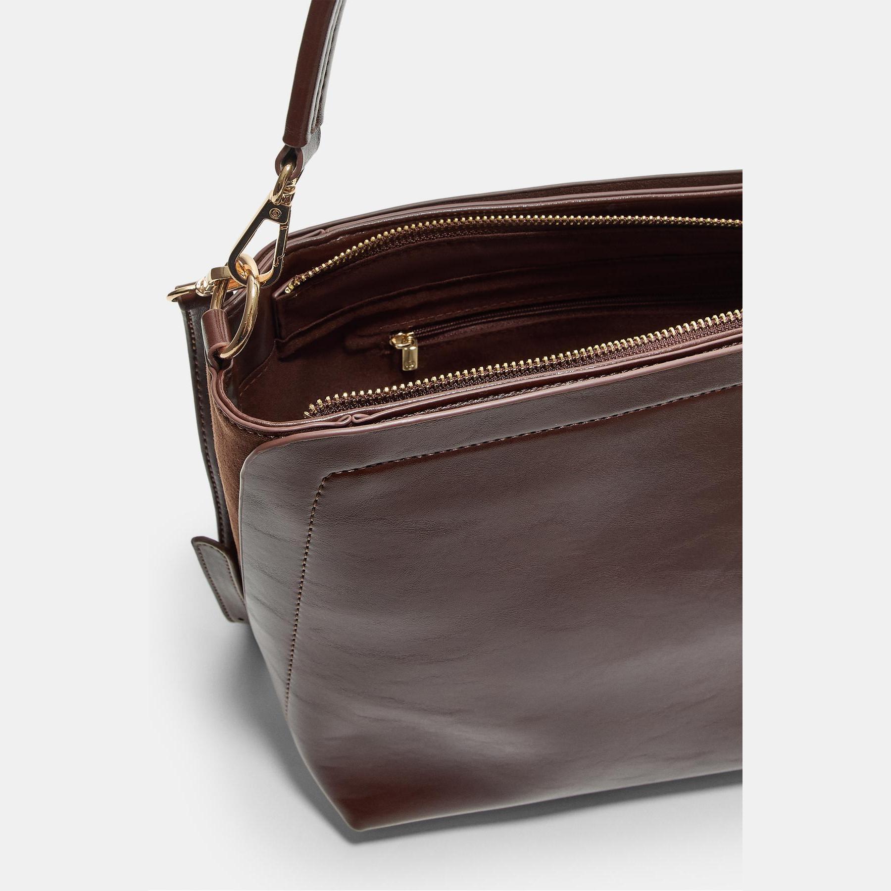 شنطة كتف بتفصيل بُزُوز – بني من Stradivarius