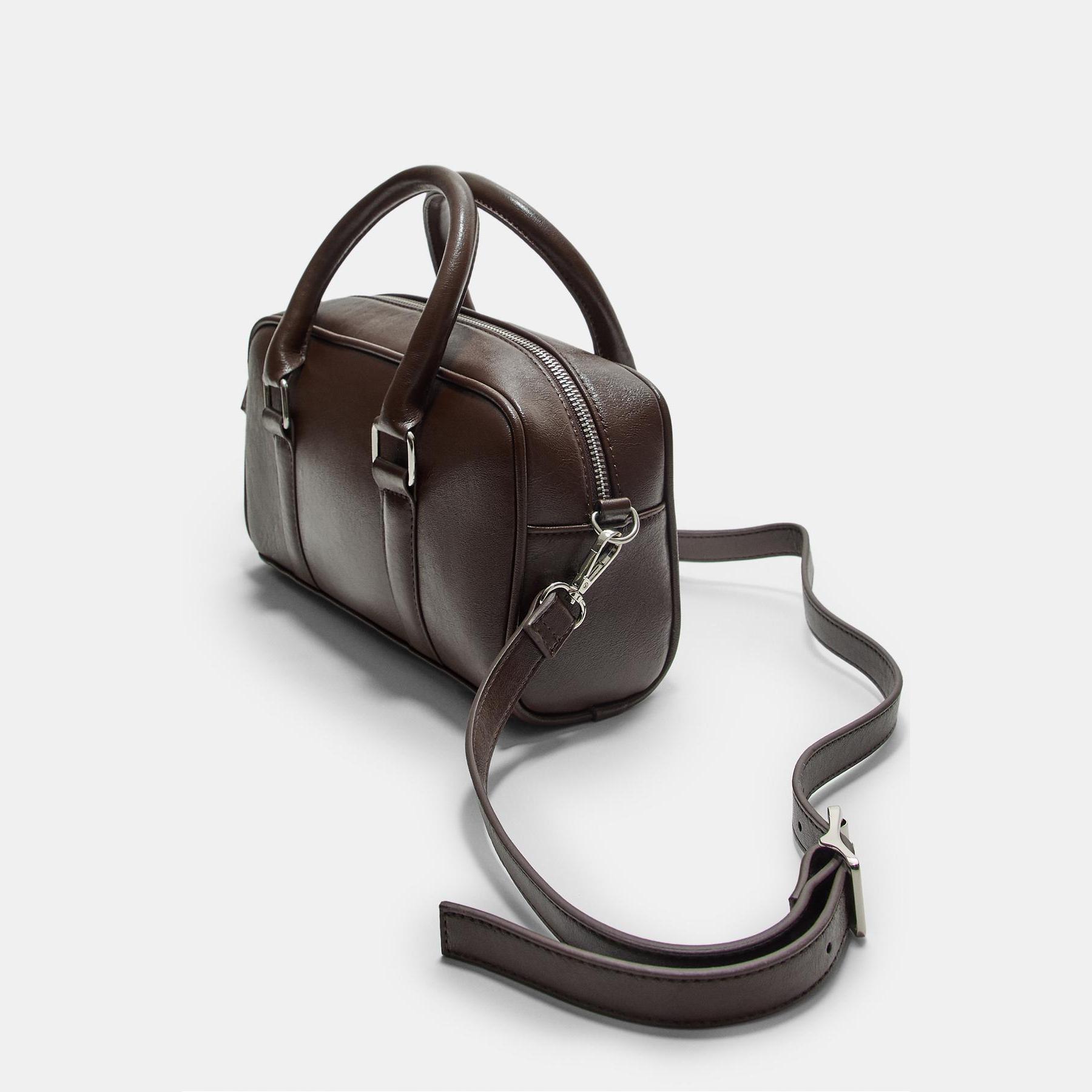 تميّزي بإطلالة حضرية أنيقة مع هذه الشنطة من Stradivarius المصممة بشكل بولينغ عملي وتفصيل حلقات معدنية تضيف لمسة تصميمية جريئة. خامتها الجلدية تمنحك مظهرًا متينًا وعصريًا يناسب الاستخدام اليومي.