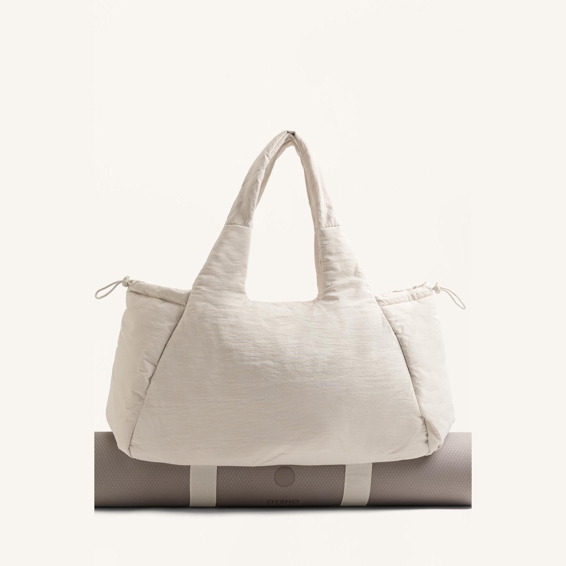 ارتقِ بإطلالتك الرياضية مع هذه الشنطة من Oysho المصممة برباط جانبي لحمل أدوات اليوغا والرياضة بسهولة. تصميمها العملي وسعتها المتوسطة يجعلها مثالية للتنقل اليومي بين التمارين والنشاطات.