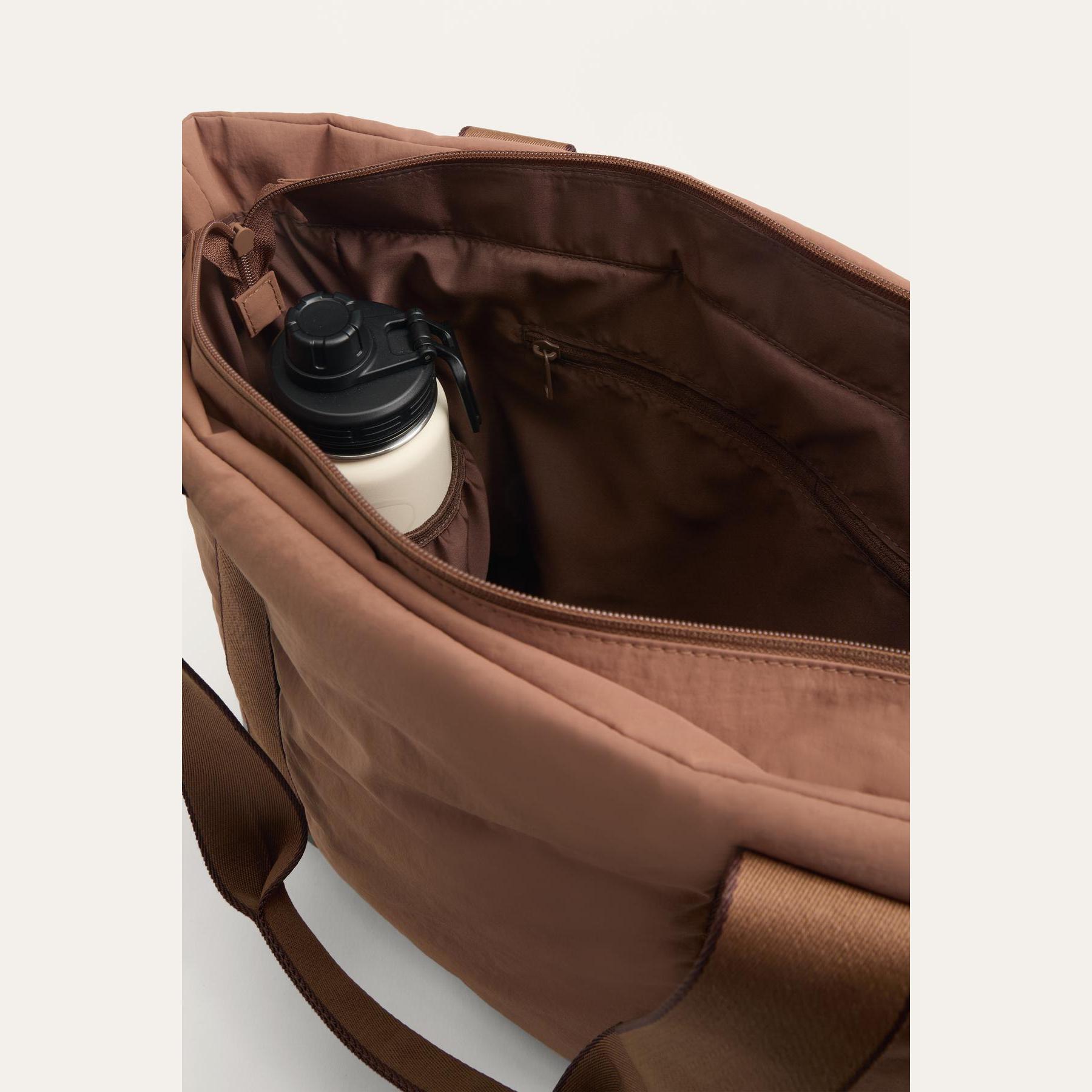 شنطة متعددة الوظائف من Oysho مصممة خصيصًا لحمل أدوات اليوغا والرياضة، بفضل الجيوب المتعددة والسعة الكبيرة. تحتوي على جيب حراري للمشروبات، مكان مخصص للابتوب، وأشرطة سفلية لحمل حصيرة اليوغا، مما يجعلها مثالية للتنقل اليومي بأسلوب رياضي أنيق.