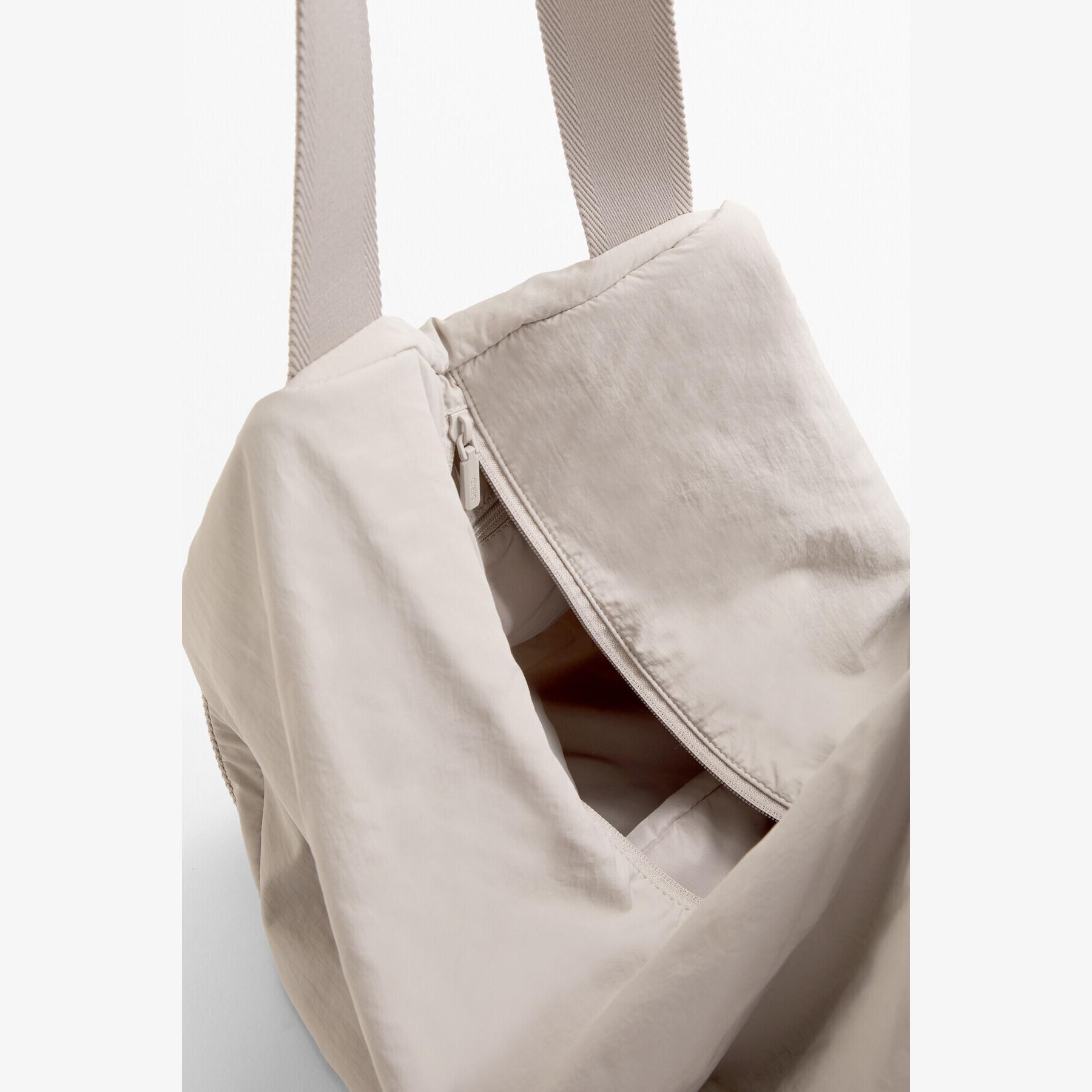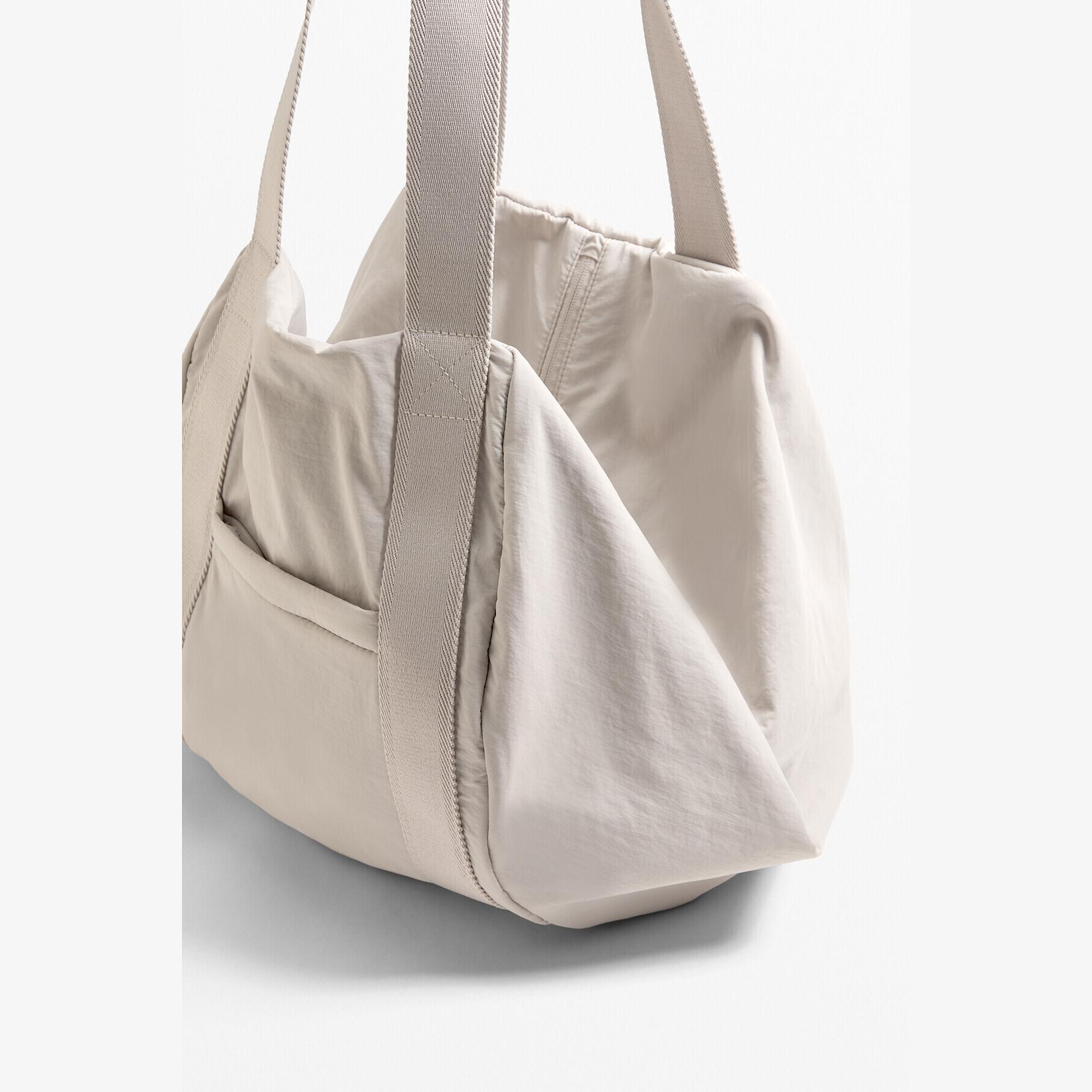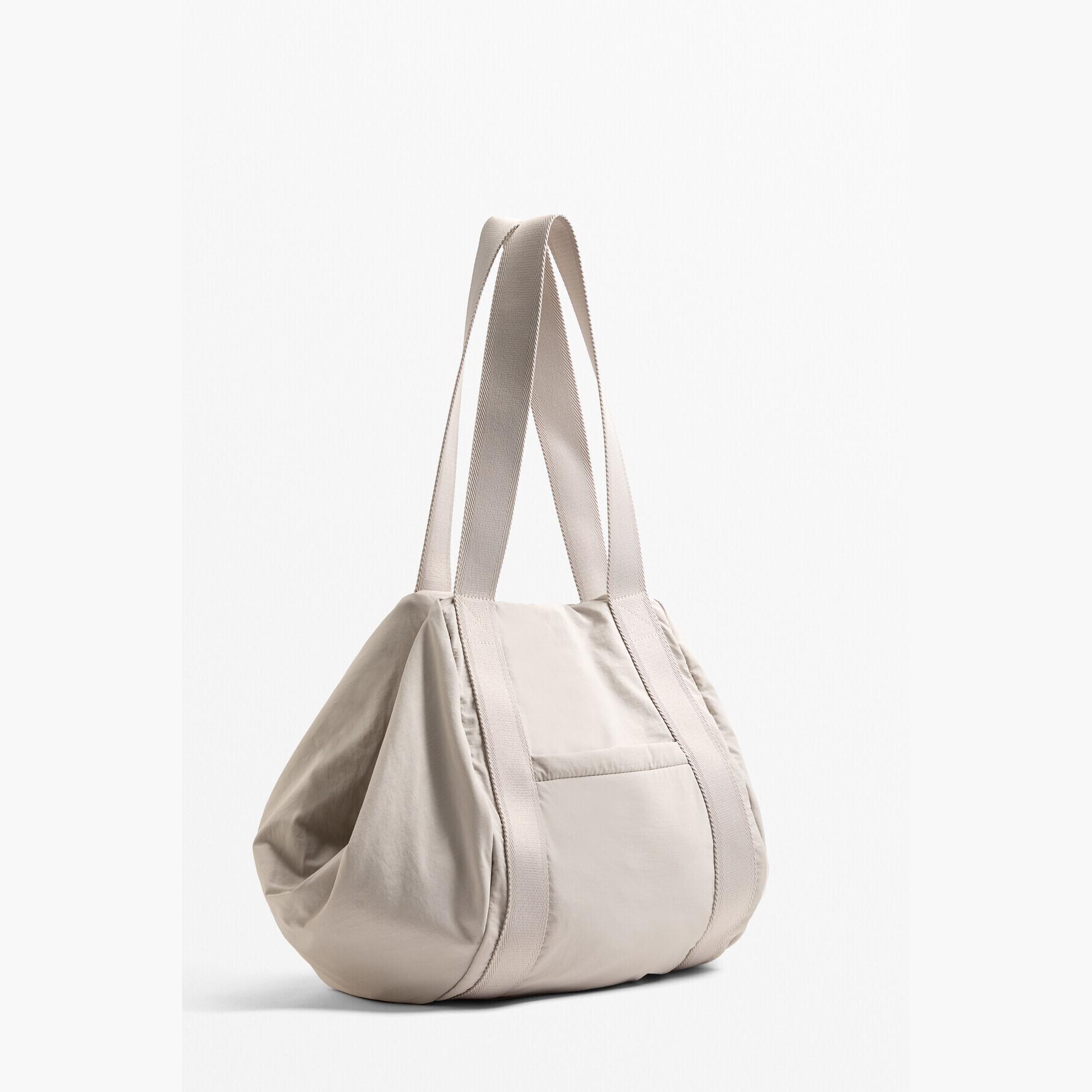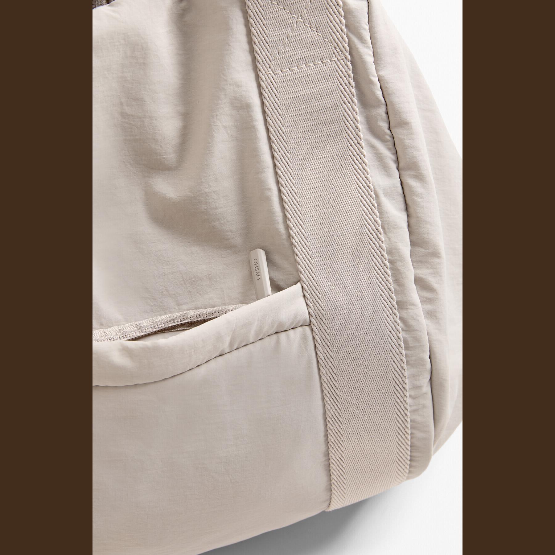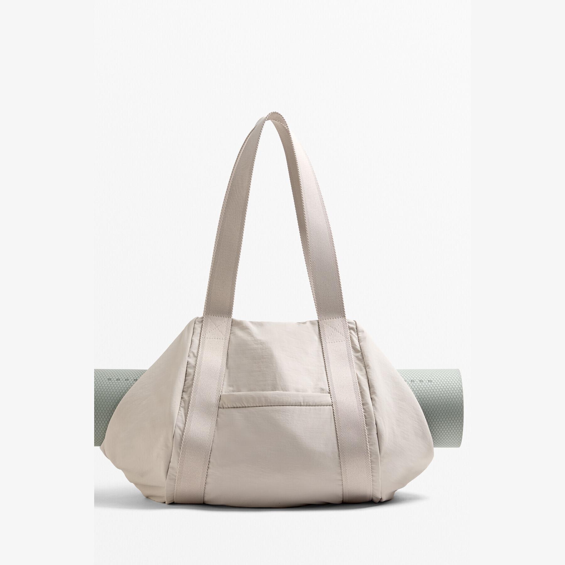 شنطة رياضية واسعة من Oysho مصممة خصيصًا لحمل حصيرة اليوغا والمستلزمات الرياضية. تصميمها البيضاوي والجيب الأمامي بسحاب يوفران سهولة في الاستخدام والتنقل، مما يجعلها مثالية للصالات الرياضية أو التنقل اليومي.