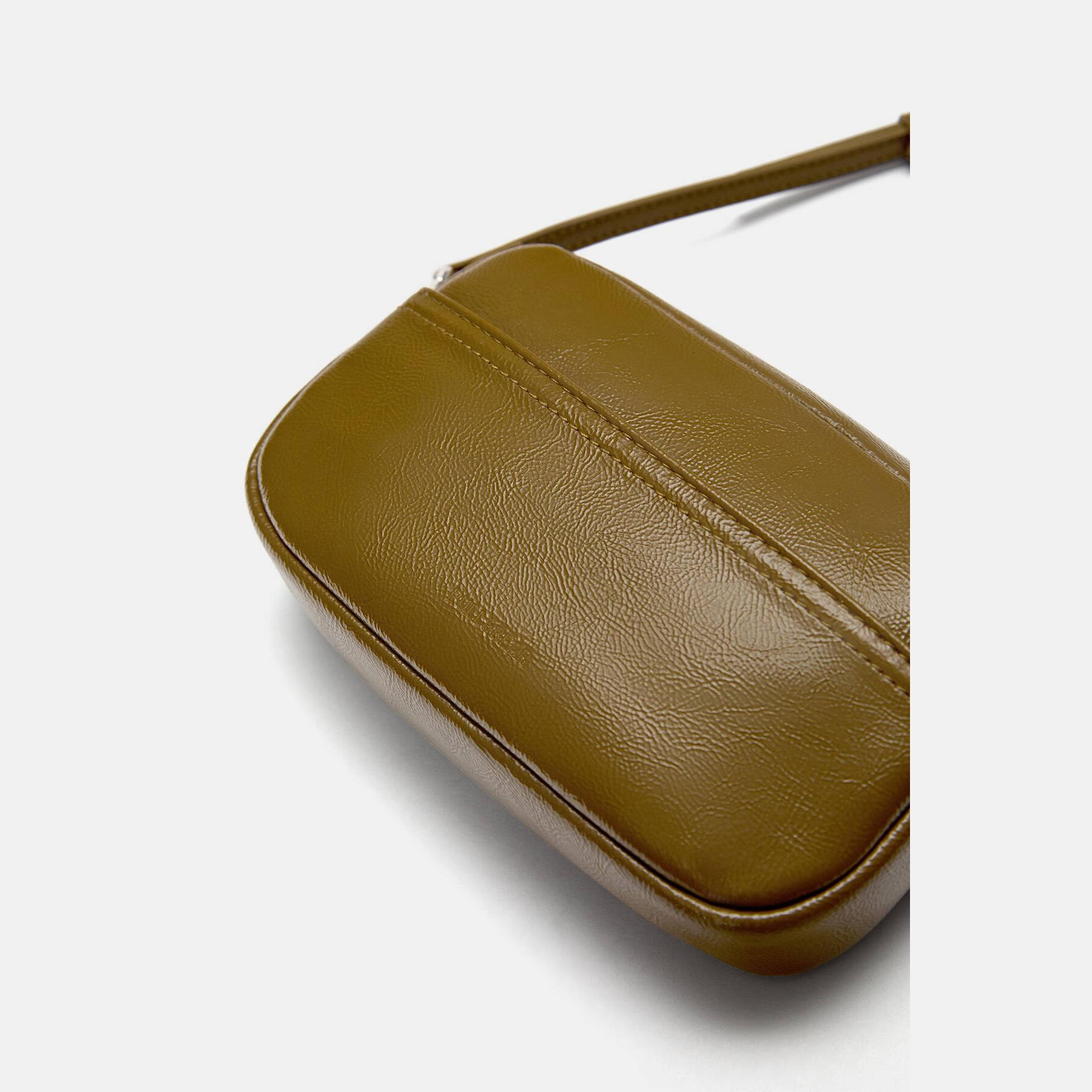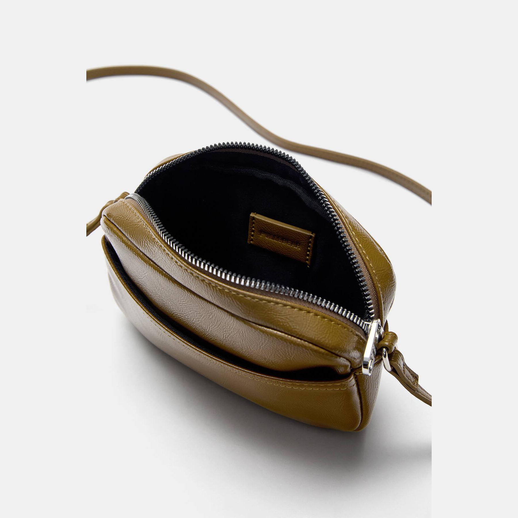 شنطة كروس صغيرة من Pull & Bear مصنوعة من خامة بولي يوريثان بملمس لامع، بتصميم عملي يحتوي على جيب خارجي، حمالة قابلة للتعديل، وسحاب علوي لحفظ الأساسيات بأمان.