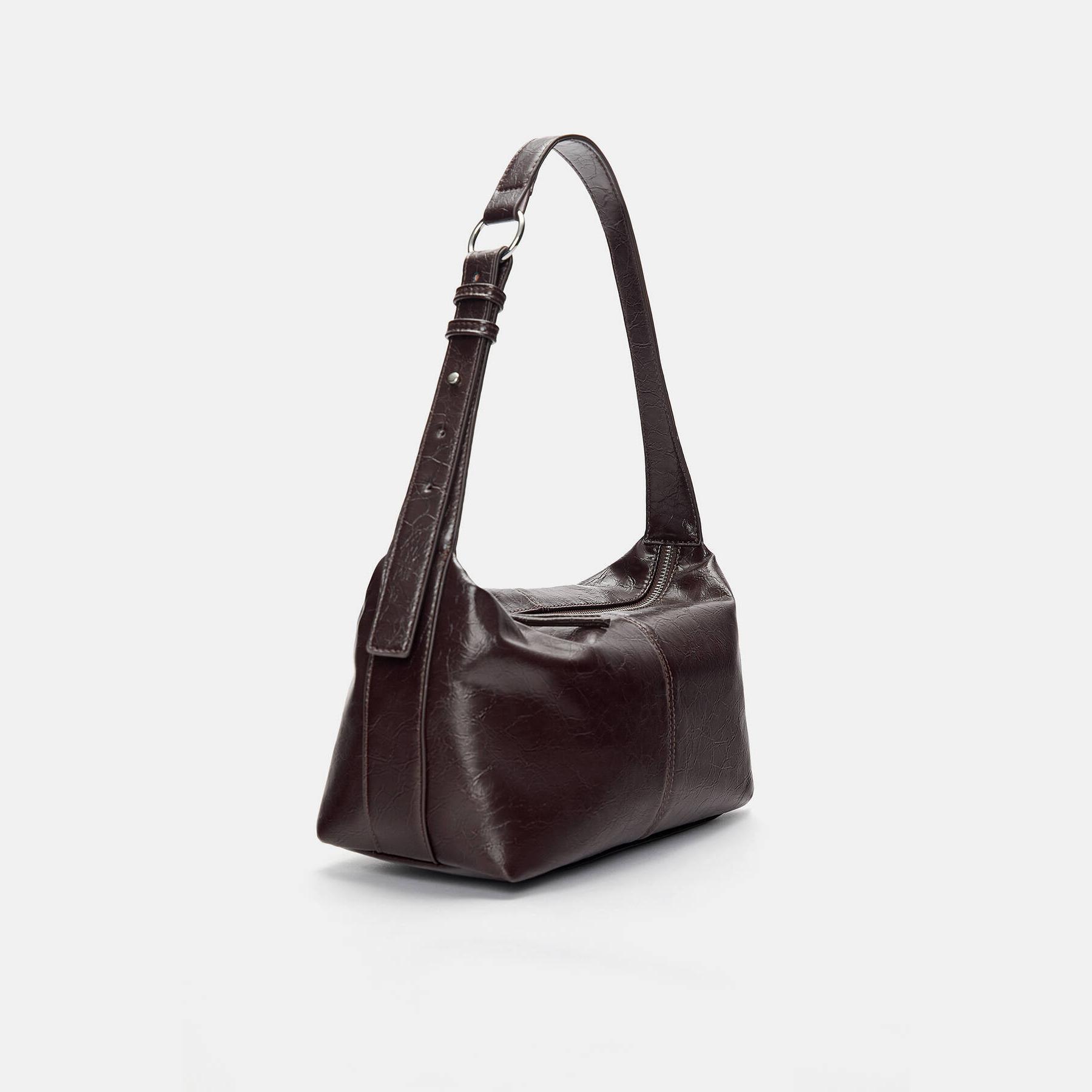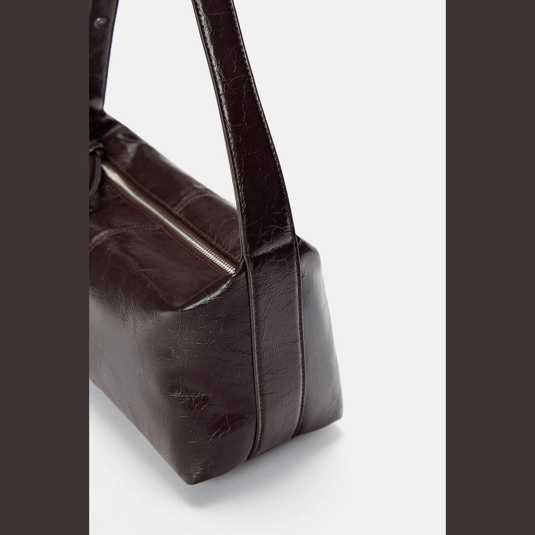 شنطة كتف أنيقة من Pull & Bear مصنوعة من خامة بولي يوريثان بملمس متشقق، بتصميم عصري يحتوي على سحاب علوي، حمالة قصيرة قابلة للتعديل، ولمسة جلدية تضيف فخامة للإطلالة.
