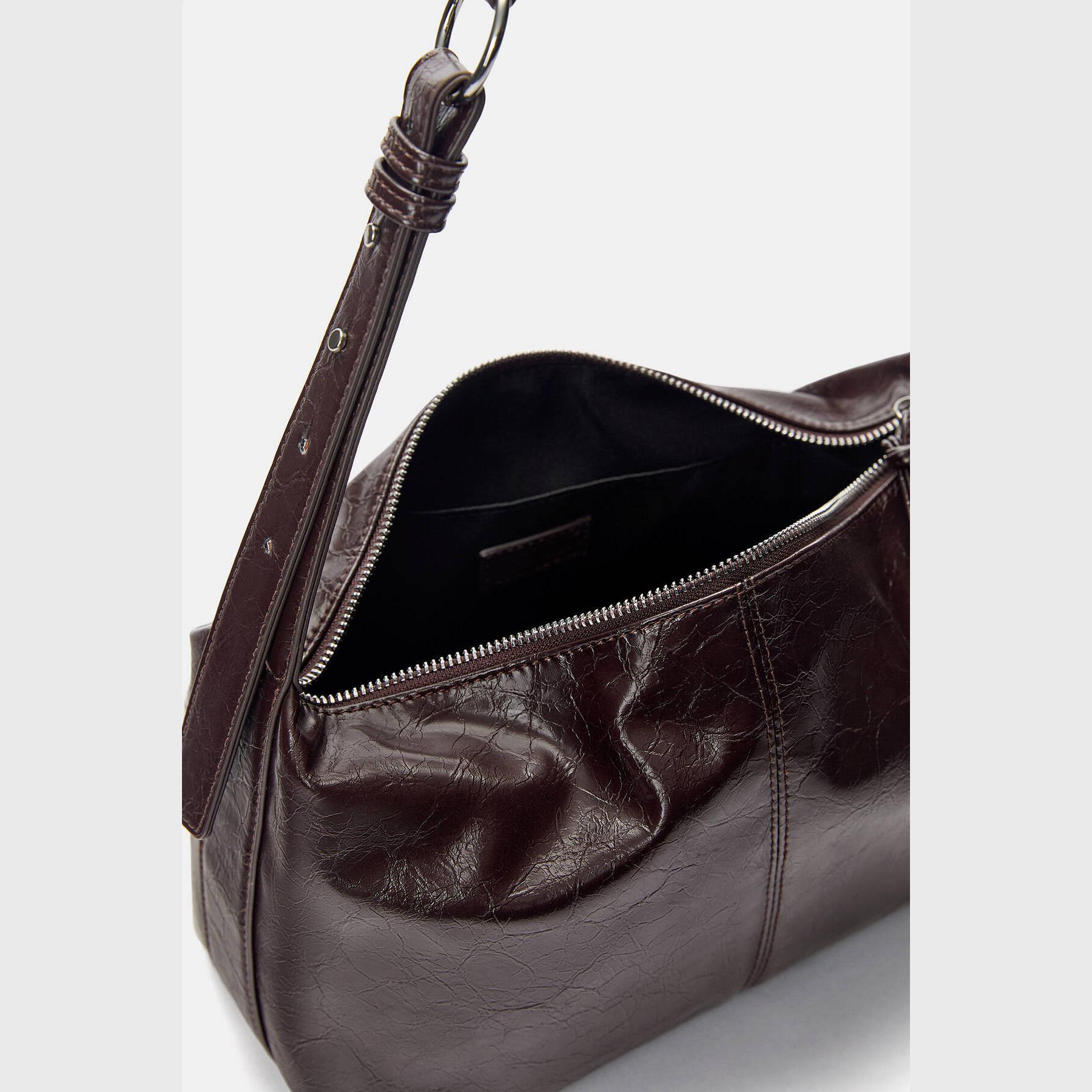 شنطة كتف بتأثير جلد متشقق – بوردو من Pull & Bear