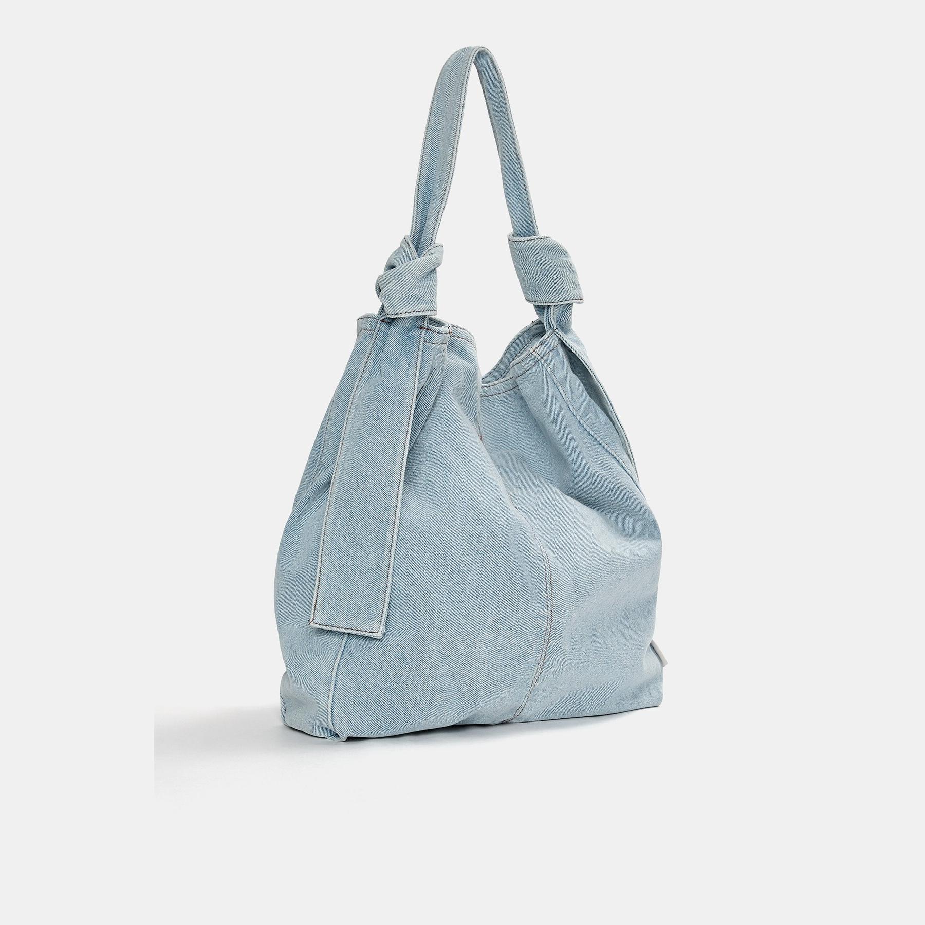 شنطة Tote من الدنيم – أزرق من Pull & Bear