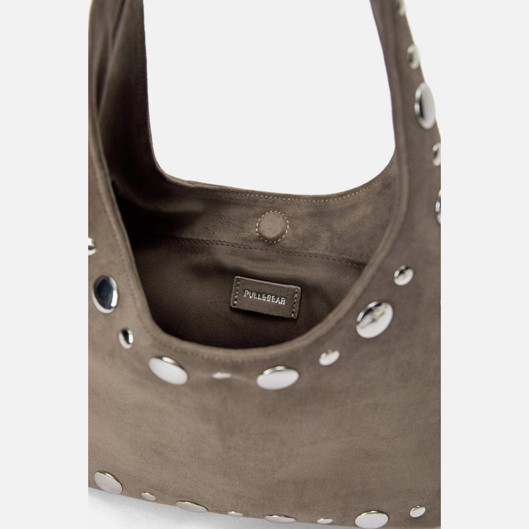 شنطة كتف مزينة بتفاصيل معدنية – رمادي من Pull & Bear