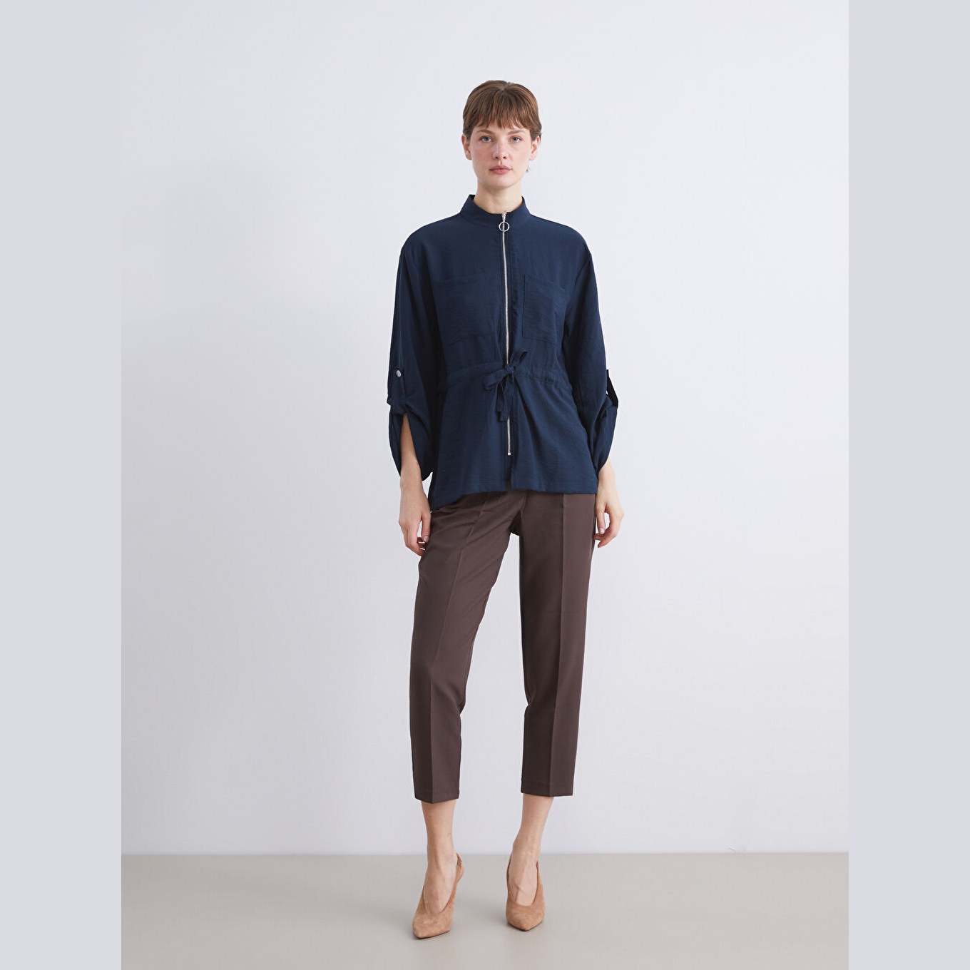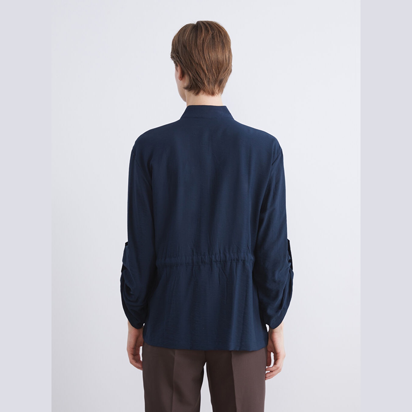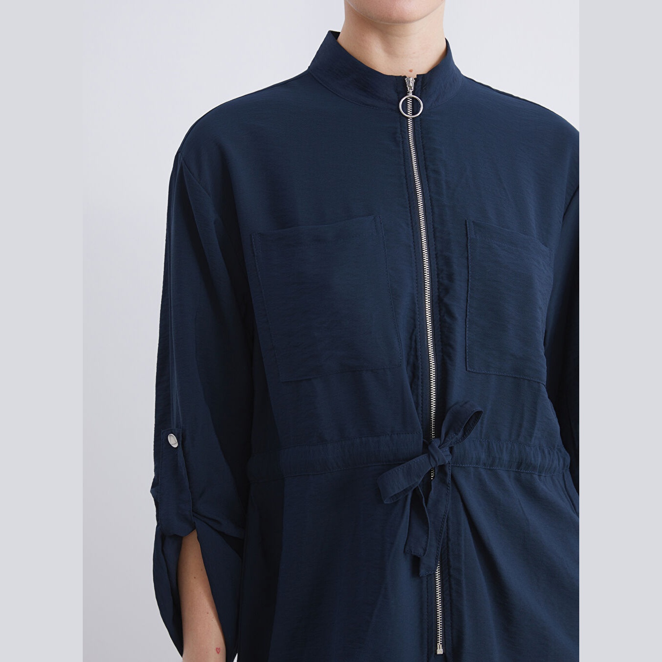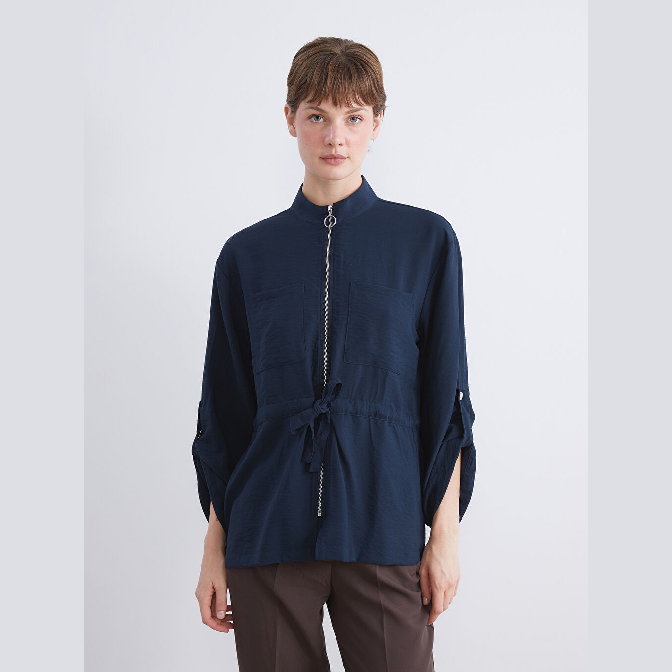 جاكيت نسائي بياقة مستقيمة من LCWAIKIKI Classic – كحلي (قصة واسعة، خامة جاباردين خفيفة بدون بطانة، تصميم بخصر بُزّ، ضمن مجموعة المقاسات الكبيرة)