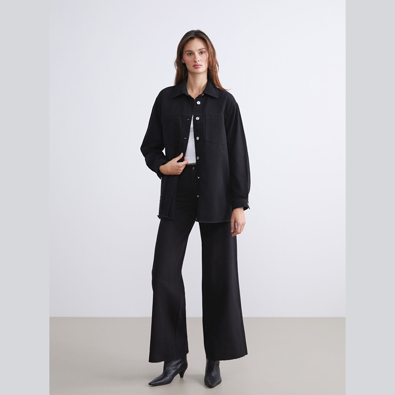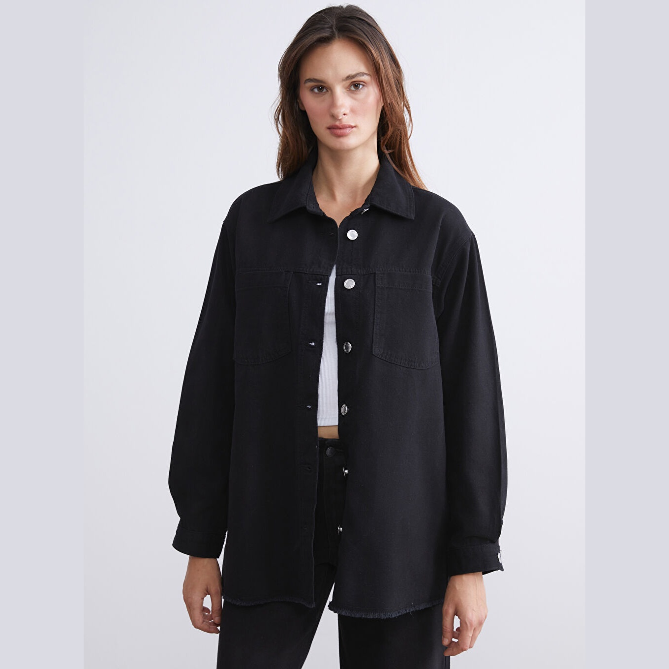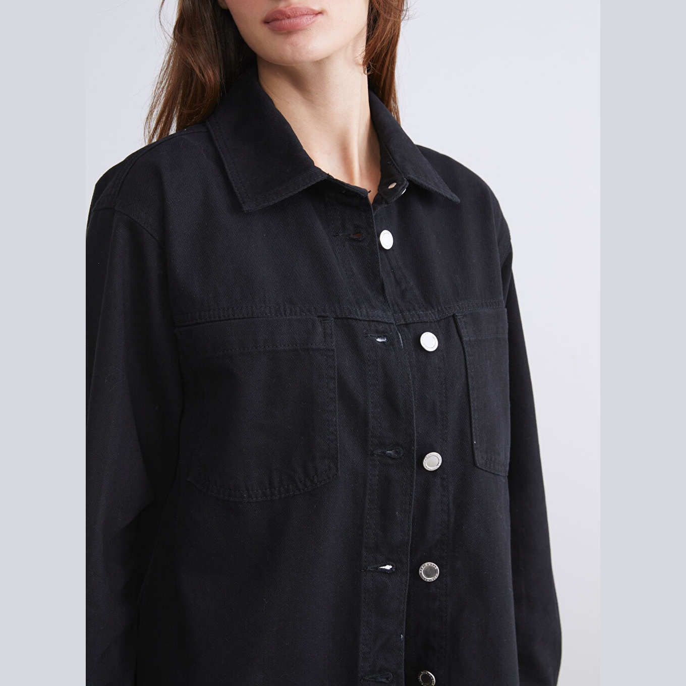 جاكيت عملي بلون أسود (Siyah) من مجموعة LCW Classic – Büyük Beden، مصمم بياقة قميص كلاسيكية، قصة أوفرسايز (Oversize Fit) تمنحك مظهرًا عصريًا وراحة مثالية، خامة دنيم قطنية بالكامل (%100 قطن) بملمس متين ومريح، تصميم سادة بدون نقوش، مزود بأزرار أمامية (Düğmeli) للإغلاق، بطول يُقاس من الكتف، مثالي للإطلالات اليومية أو الكاجوال، ضمن مجموعة المقاسات الكبيرة التي توازن بين العملية والاحتشام.