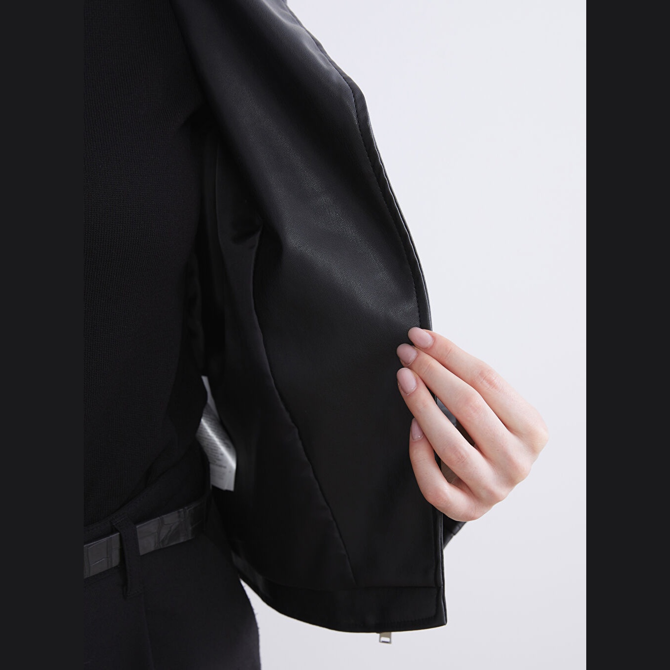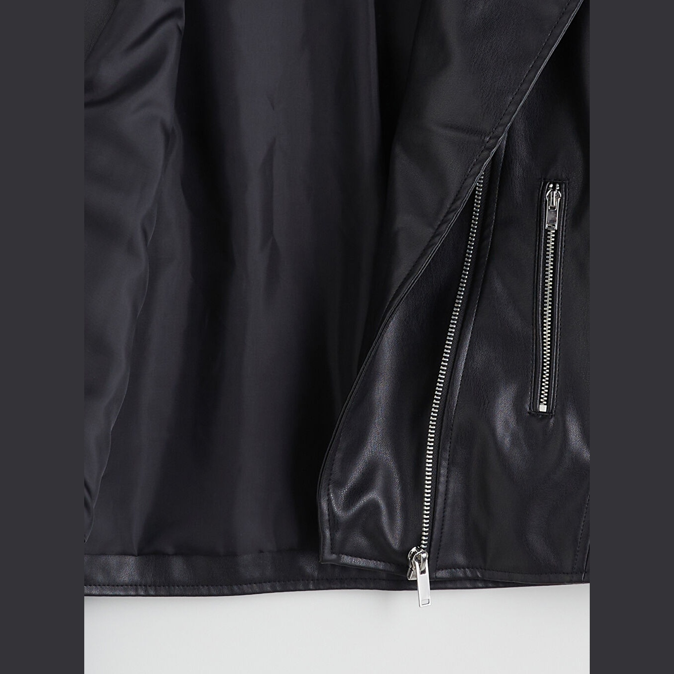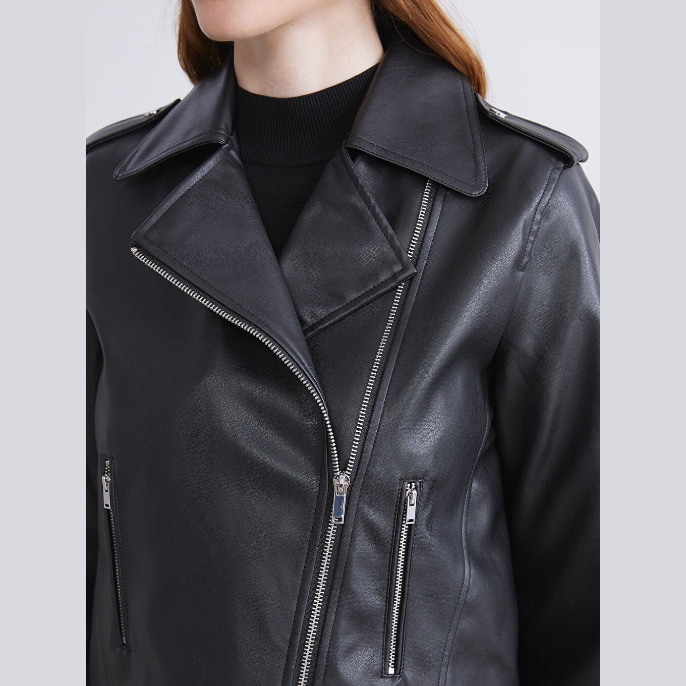 جاكيت نسائي جلد صناعي بياقة بايكر من LCWAIKIKI Classic – أسود (قصة قياسية، تصميم قصير، مبطّن بالكامل، مثالي للمقاسات الكبيرة)