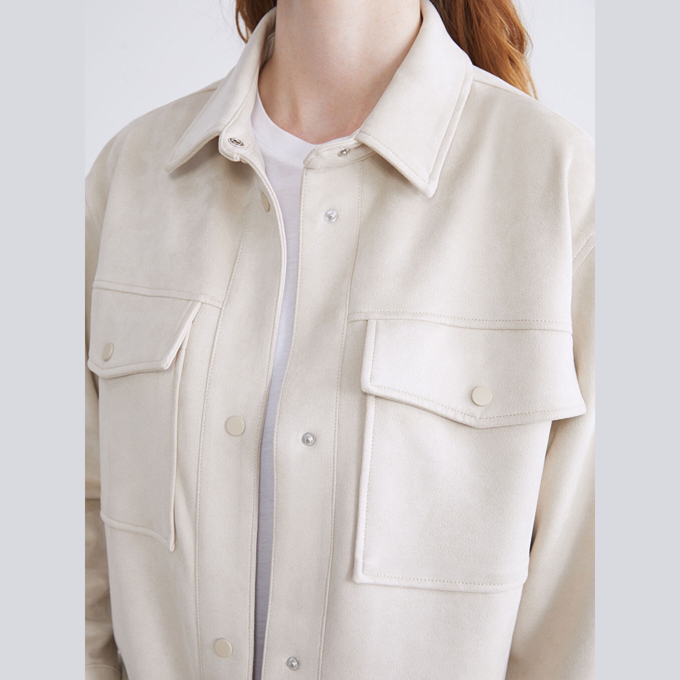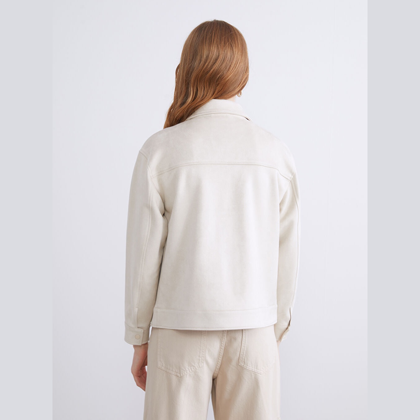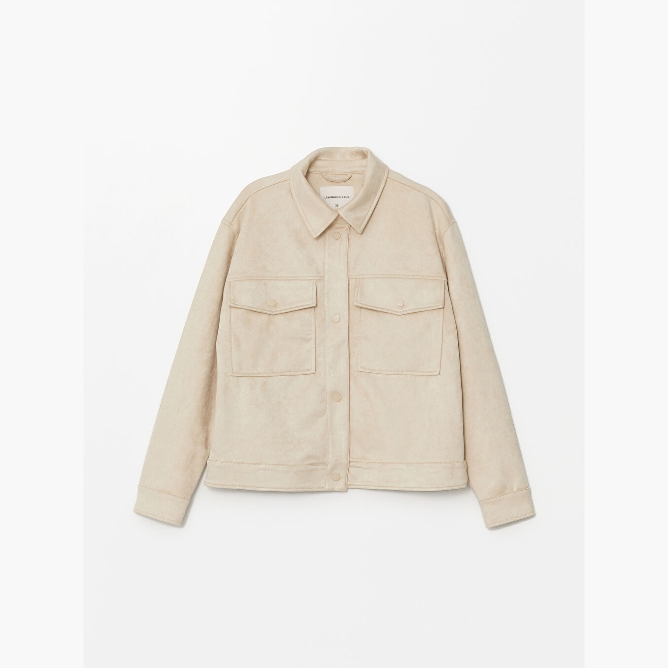 جاكيت نسائي سويدي المظهر بياقة قميص من LCWAIKIKI Classic – اكرو (قصة واسعة، خامة خفيفة بملمس سويدي، بدون بطانة، مثالي للمقاسات الكبيرة)