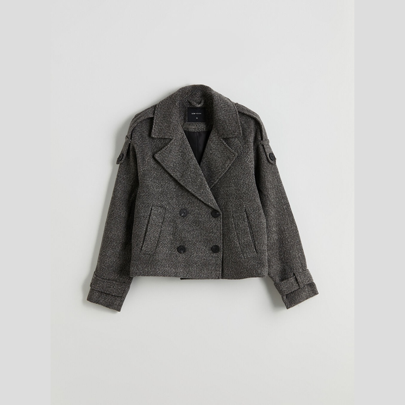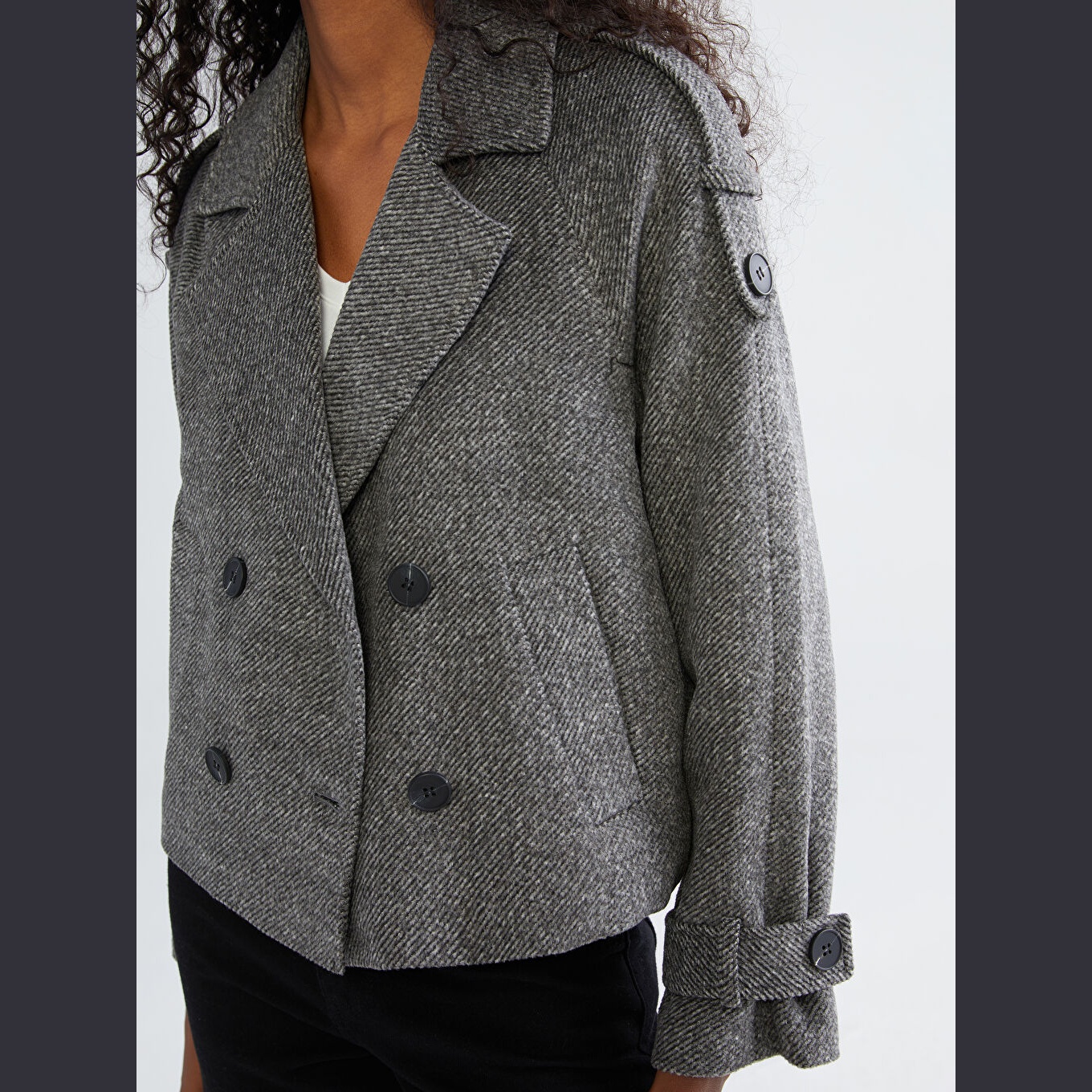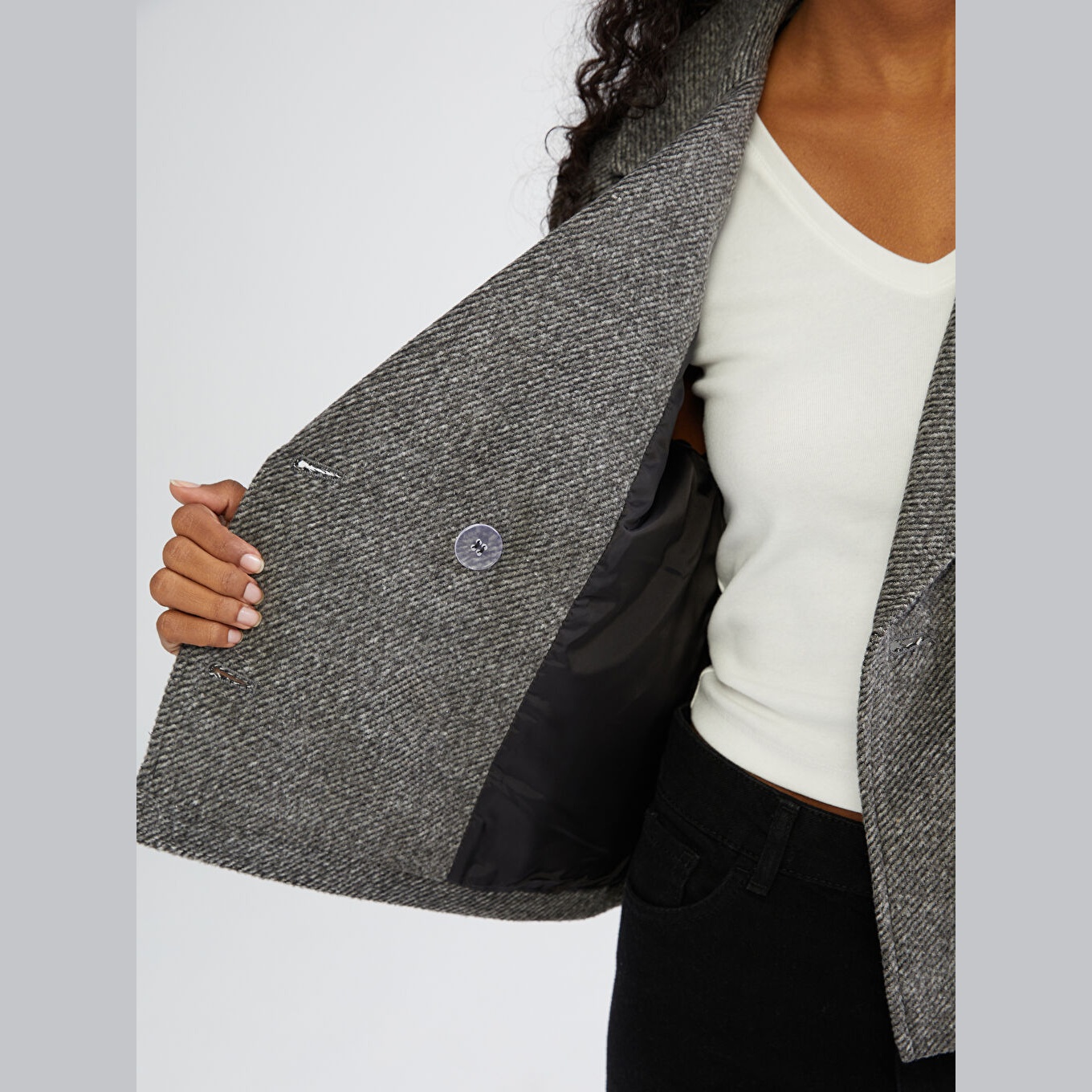جاكيت نسائي كاشيه بياقة كروس من LCW Vision – رمادي (قصة واسعة، خامة شتوية سميكة، نقشة ناعمة، مبطّن بالكامل، مثالي للإطلالات الرسمية والأنيقة)