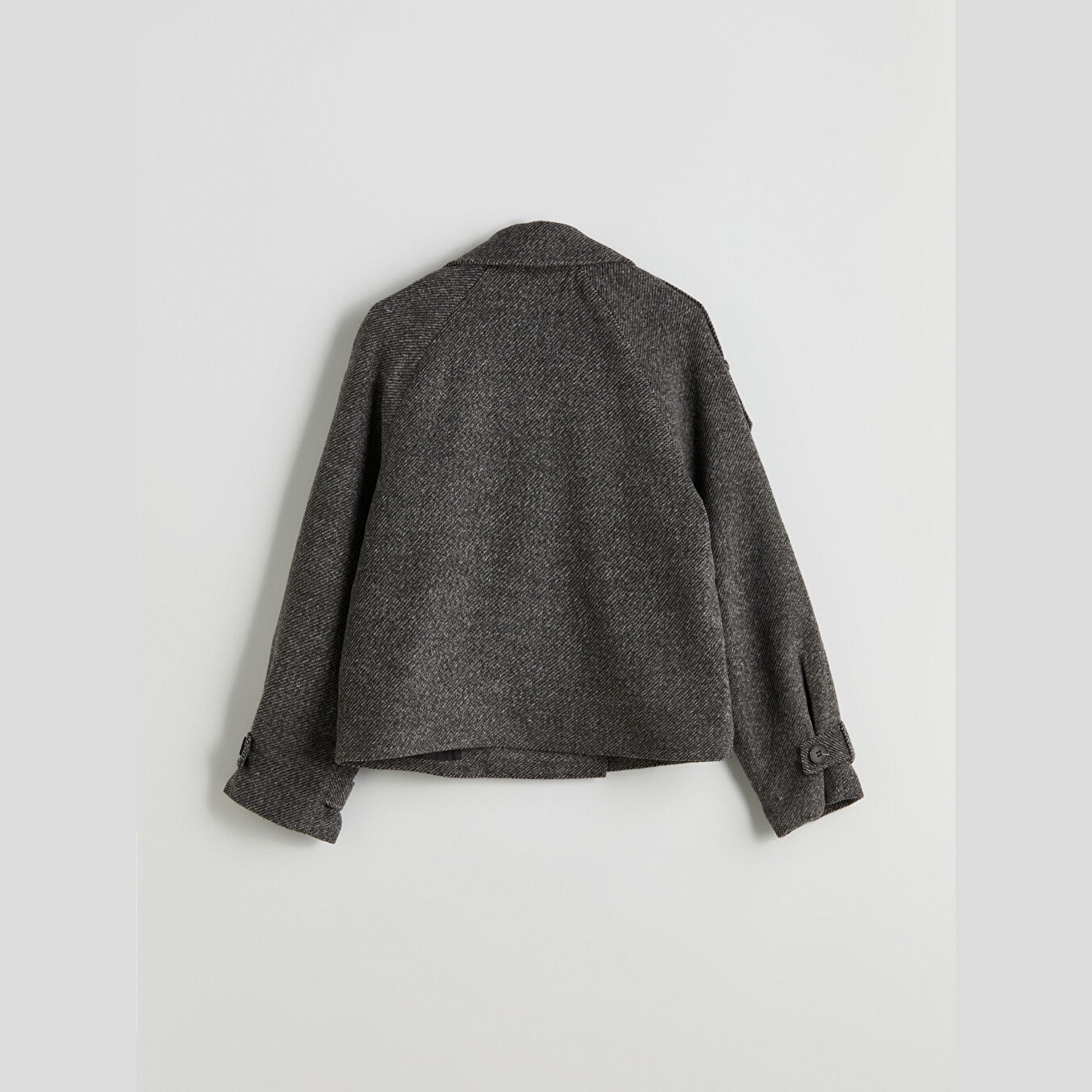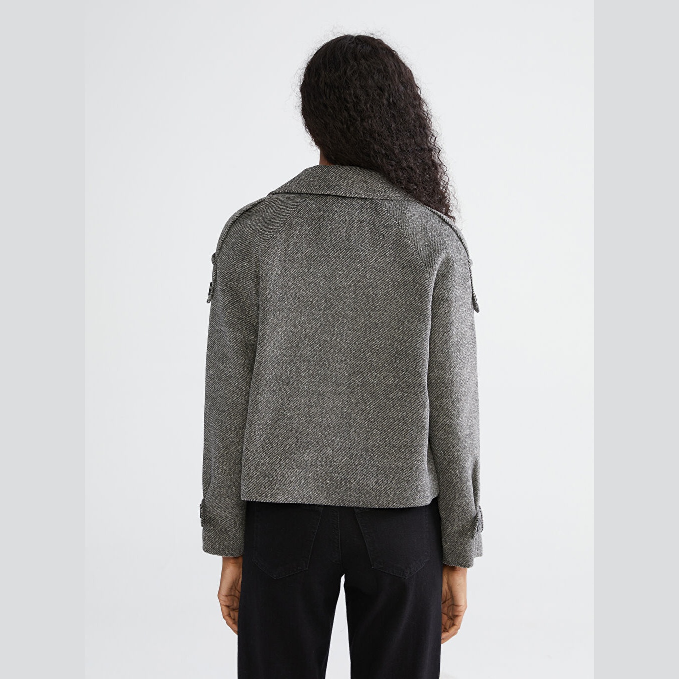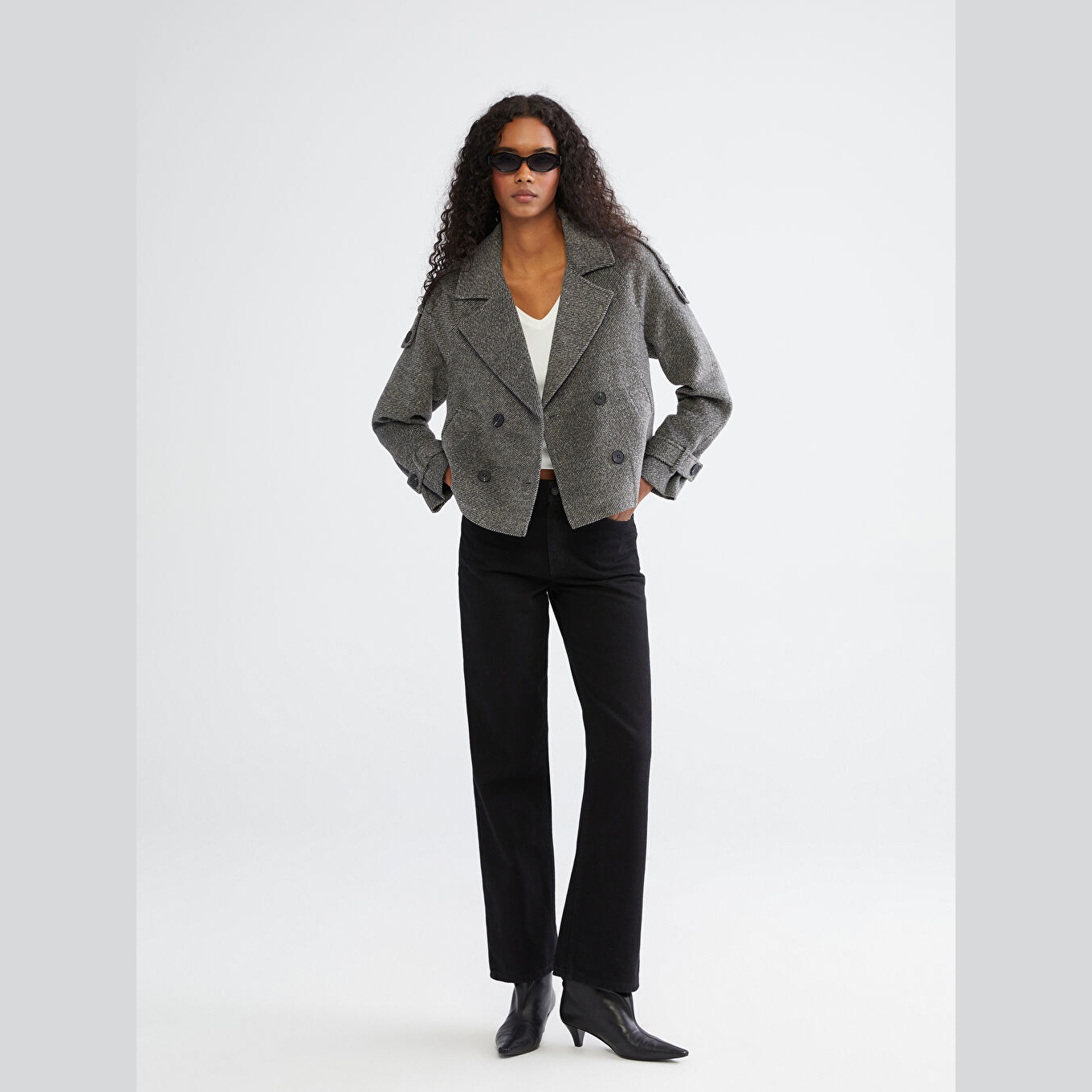 جاكيت نسائي كاشيه بياقة كروس من LCW Vision – رمادي (قصة واسعة، خامة شتوية سميكة، نقشة ناعمة، مبطّن بالكامل، مثالي للإطلالات الرسمية والأنيقة)