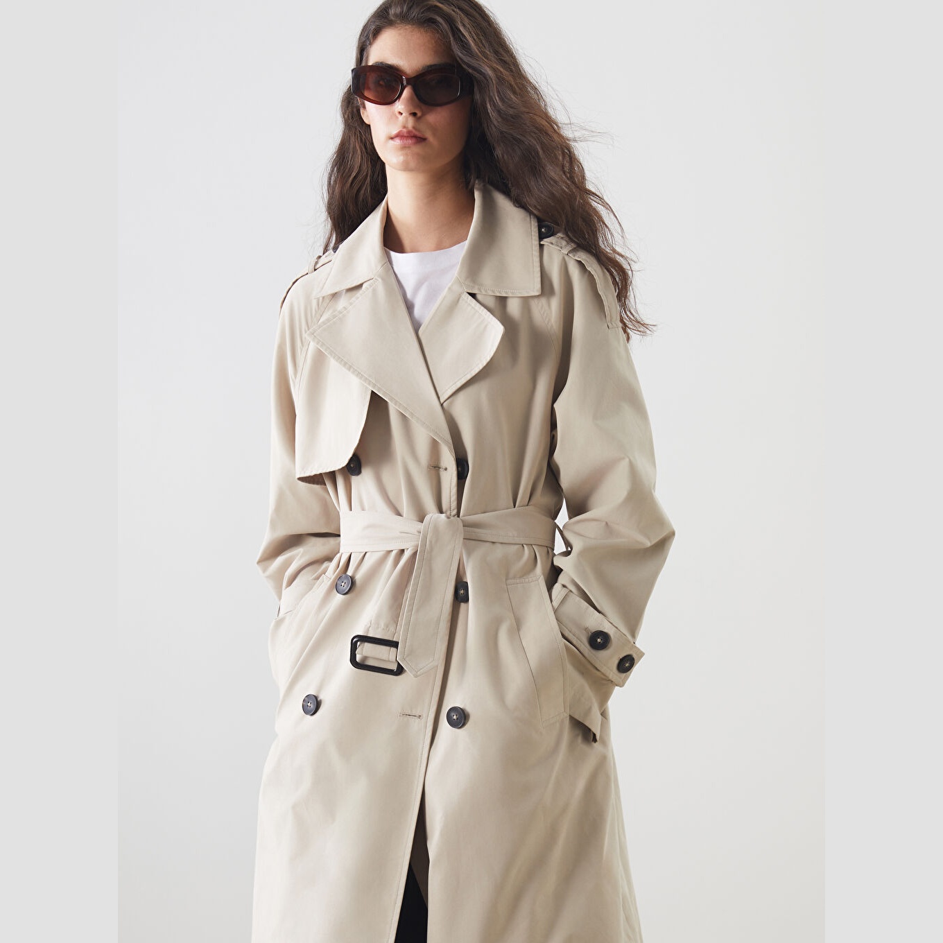 معطف ترنش بلون بيج (Bej) من مجموعة LCW Modest، مصمم بياقة كروڤاز مزدوجة (Kruvaze Yaka) تضيف لمسة رسمية أنيقة، قصة أوفرسايز (Oversize Fit) تمنحك مظهرًا محتشمًا وانسيابيًا، خامة خفيفة مكونة من %90 بوليستر و%10 بولياميد، مبطّن بالكامل بـ%100 بوليستر، تصميم سادة بدون نقوش، بطول ميدي يُقاس من الكتف، بدون قبعة، مزود بحزام خصر خارجي، يتكون من قطعتين (المعطف + الحزام)، مثالي للإطلالات اليومية أو الرسمية في الأجواء المعتدلة.