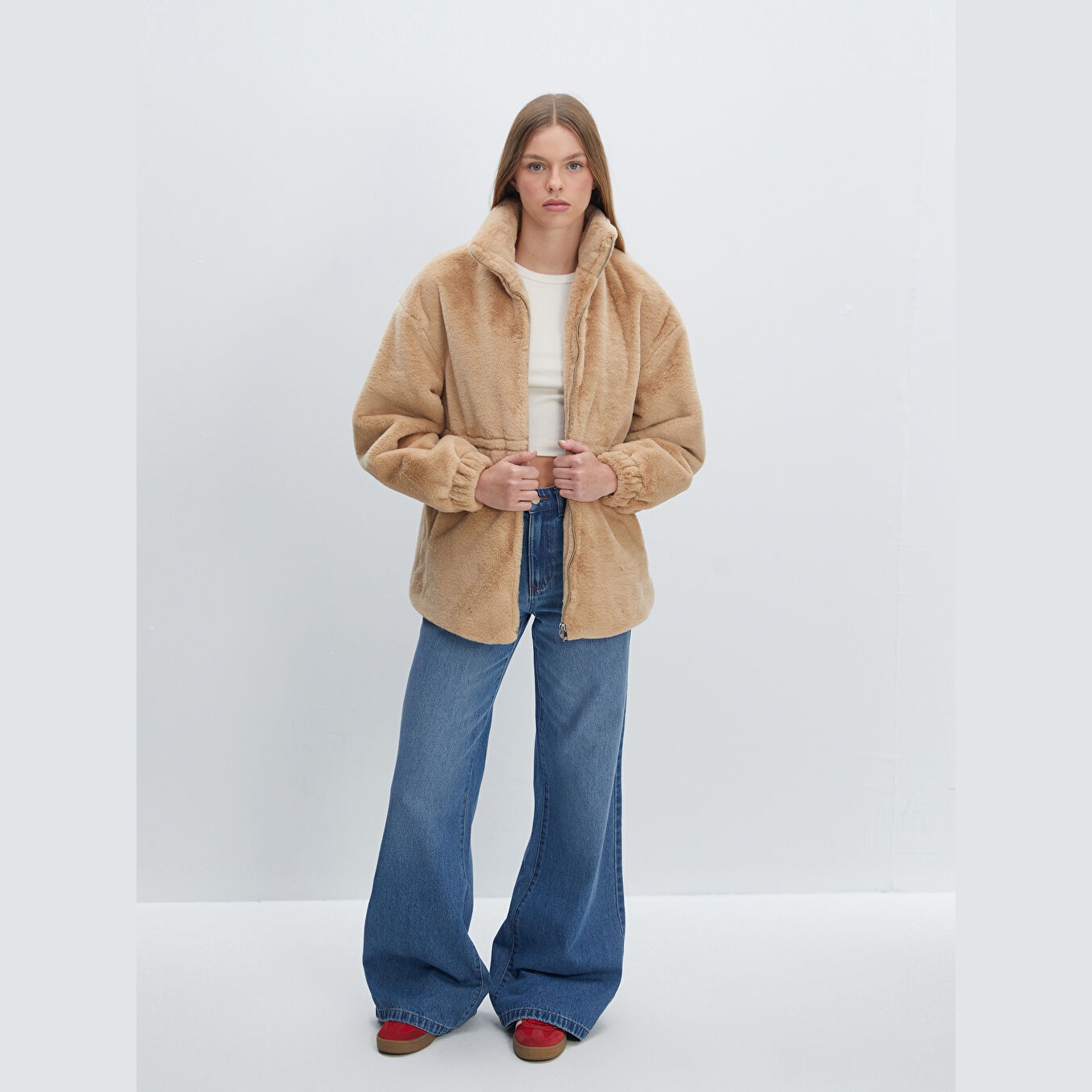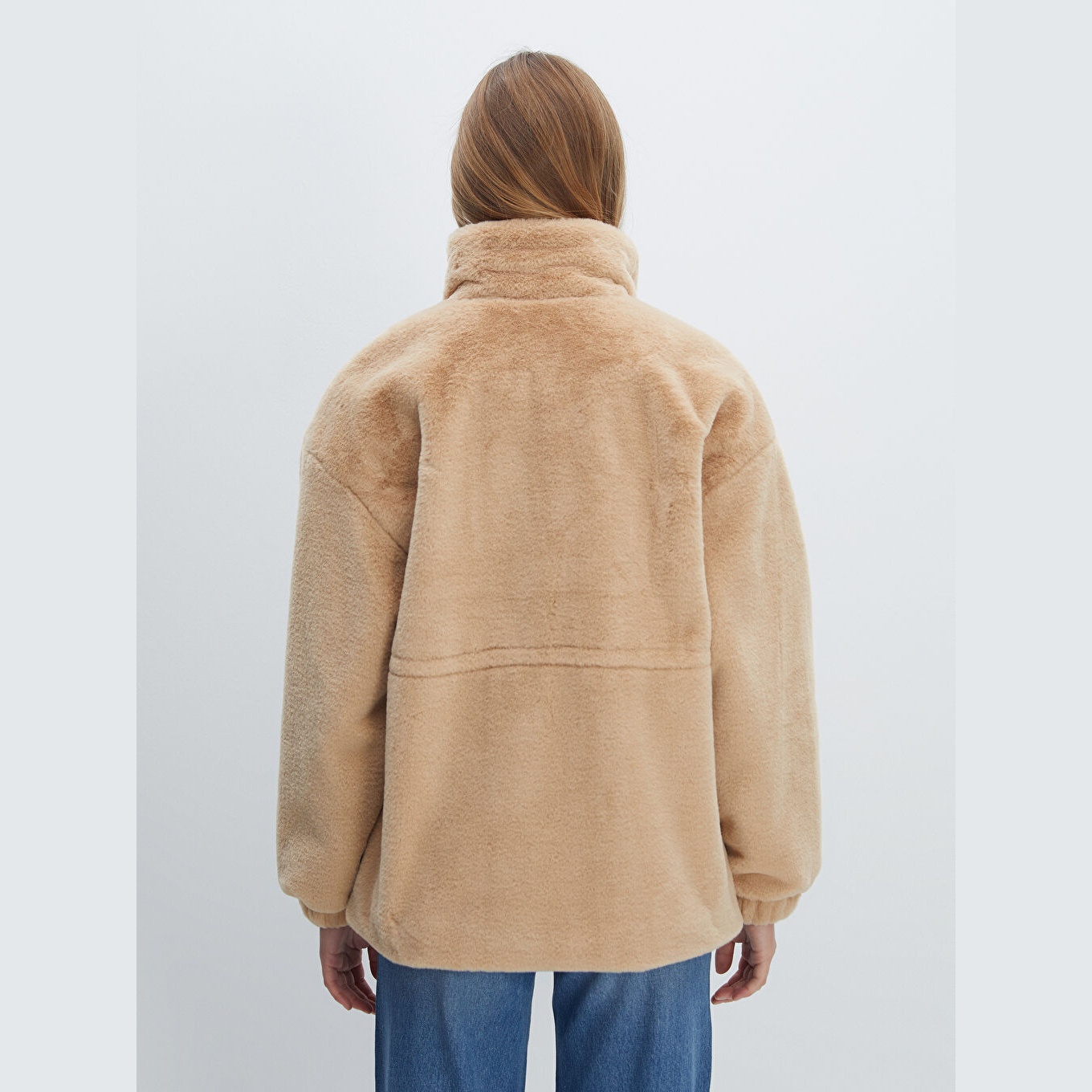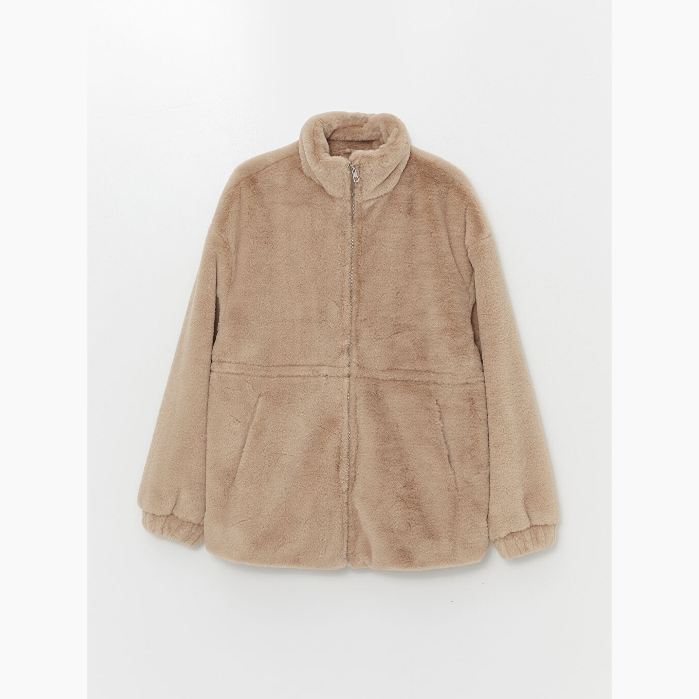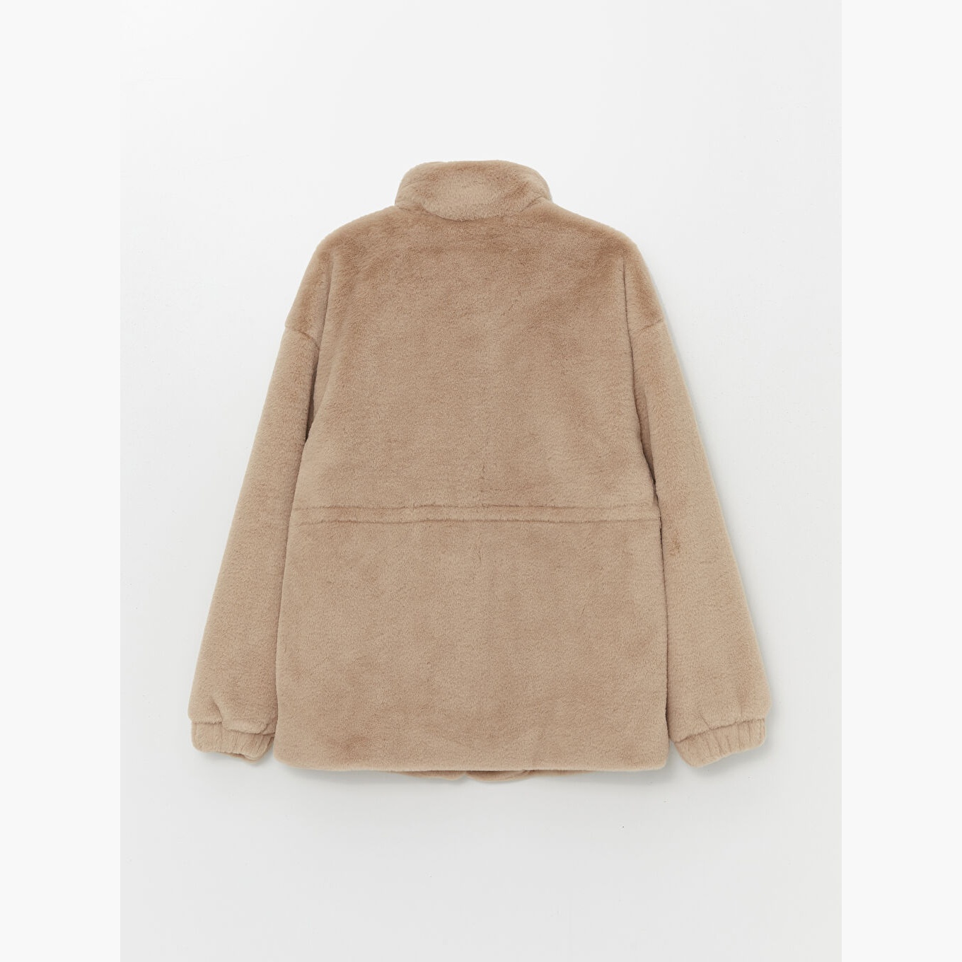 معطف نسائي بياقة مستقيمة من LCW Vision – بيج (قصة واسعة، تصميم شتوي متوسط الطول، خامة فرو صناعي متوسطة السماكة، مبطّن بالكامل، بدون قبعة، مزود بأزرار أمامية، مثالي للإطلالات المحتشمة والأنيقة)