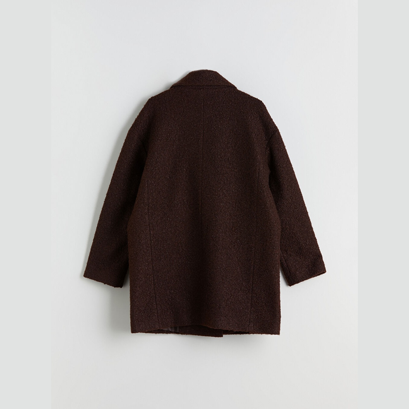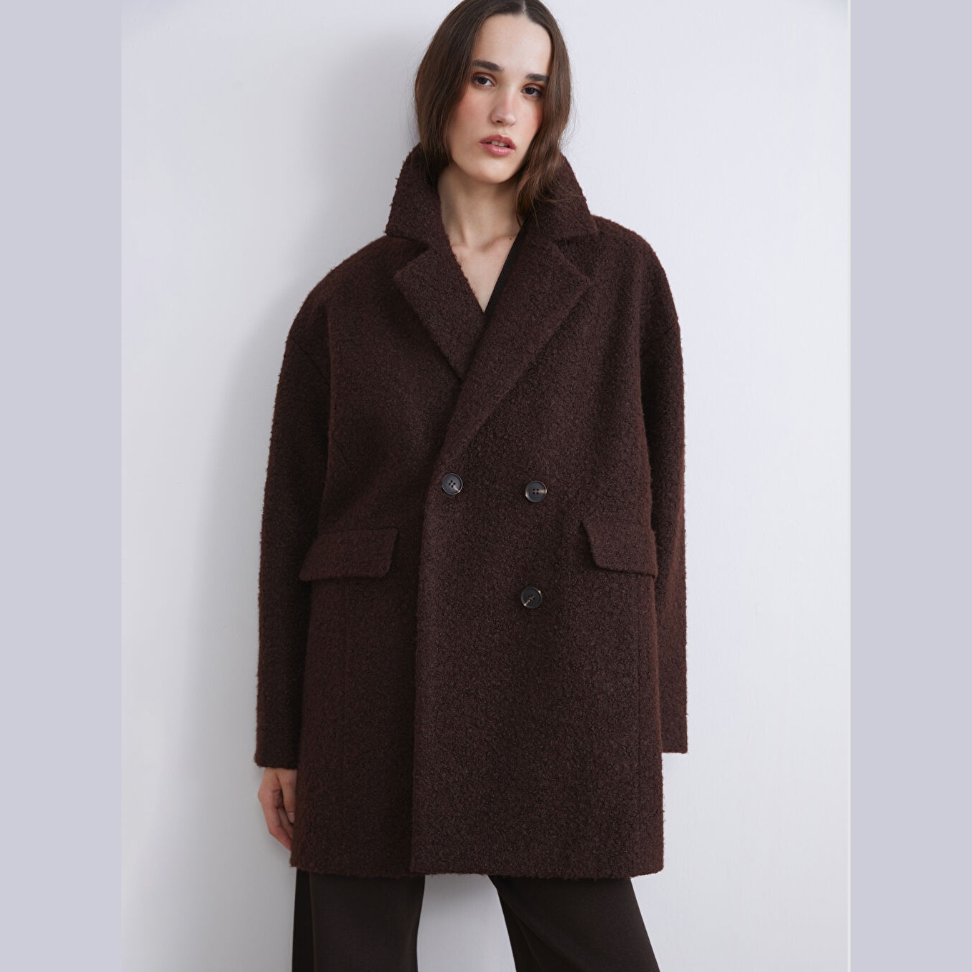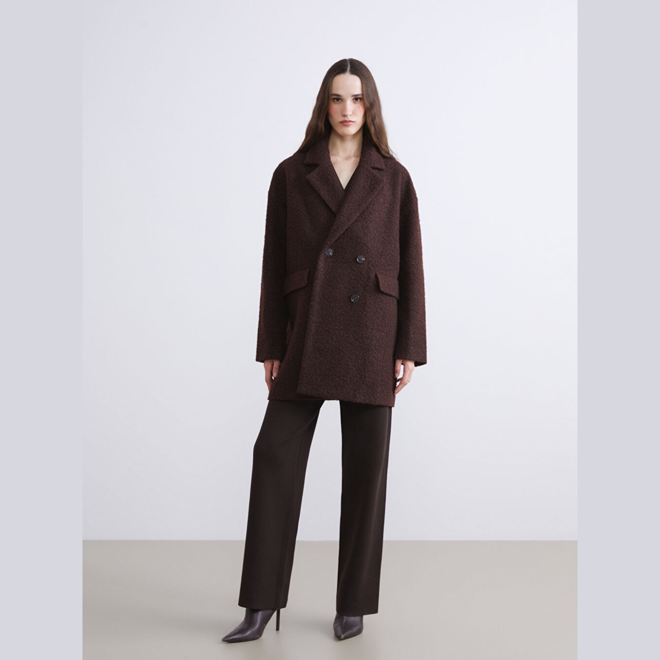 معطف بلون بني من مجموعة LCW Vision، مصمم بياقة كروّاز تضيف لمسة فاخرة وعصرية، قصة واسعة تمنحك مظهرًا محتشمًا وانسيابيًا، خامة كاشمير صناعي من %100 بوليستر، مبطّن بالكامل بـ%100 بوليستر، تصميم سادة بدون نقوش، بطول ميدي يُقاس من الكتف، بدون قبعة، مزود بأزرار أمامية، مثالي للإطلالات الشتوية الرسمية أو العملية.